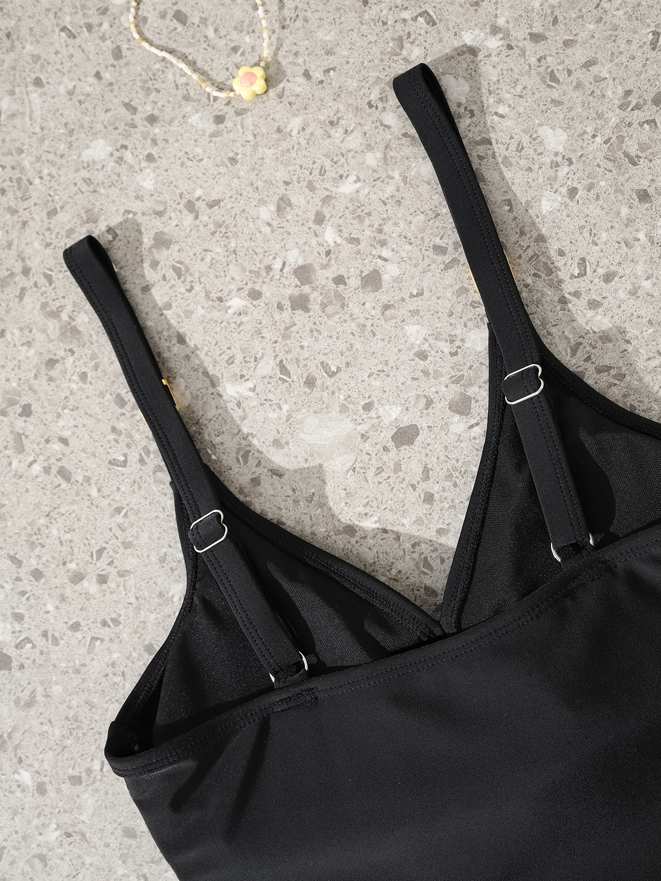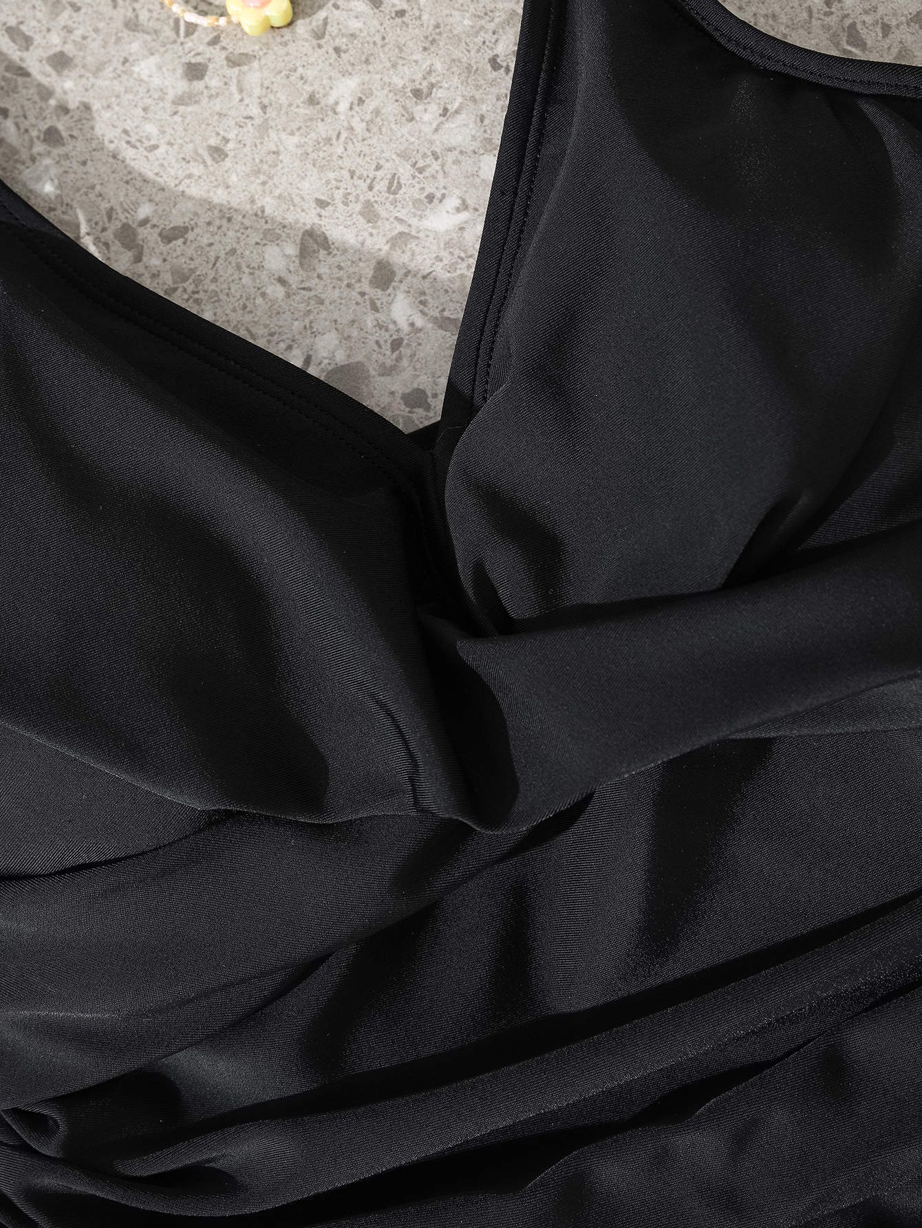Solid Color V neck Culottes One Piece Slim Sexy Bikini Swimsuit Swimwear Women