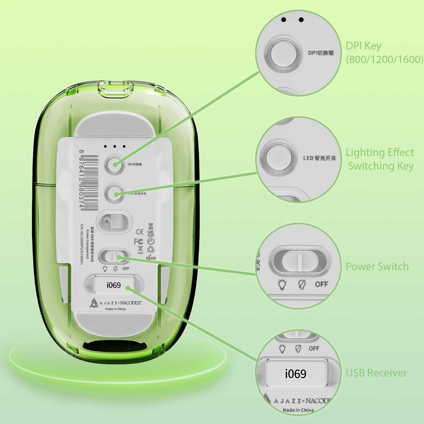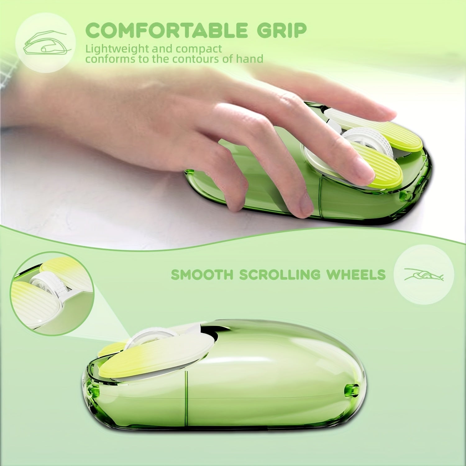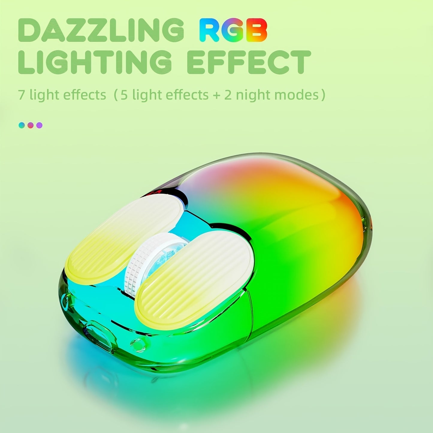 Souris de jeu ambidextre RVB avec connexion sans fil 2,4G, capteur optique, batterie au lithium rechargeable de 400 mAh, charge rapide de type C, compatible avec Windows 7, souris sans fil mini légère de 76 g - 1069