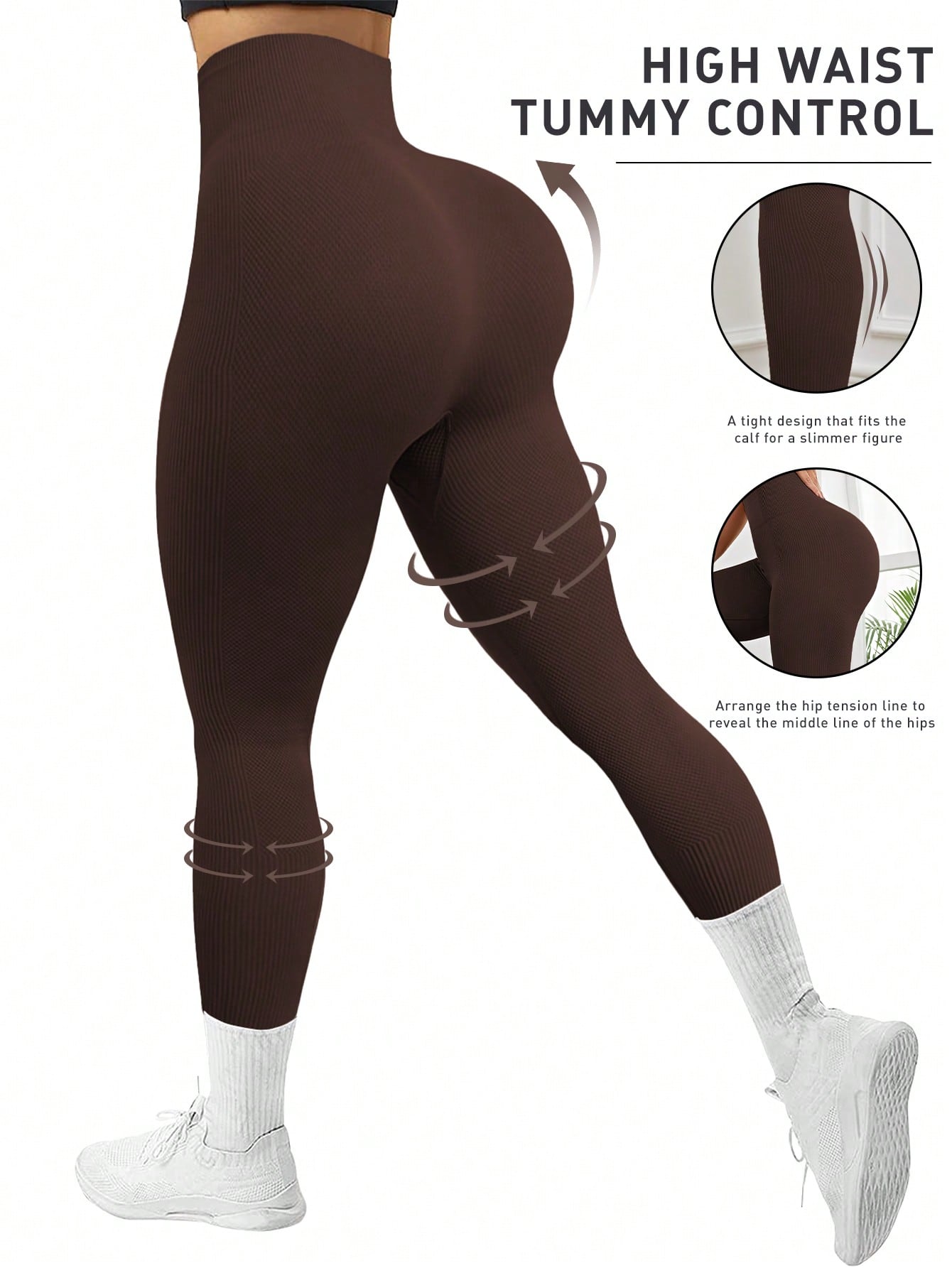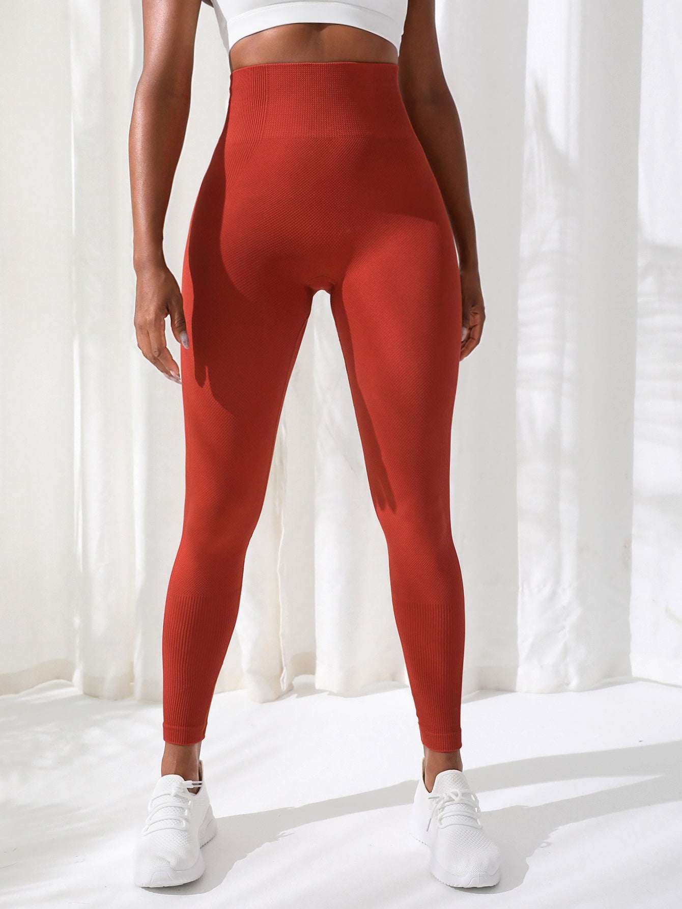 Sport Studio Yoga Tights Seamless Rib-Knit Tummy Control Sports Leggings With Wide Waistband For Chinese New Year
