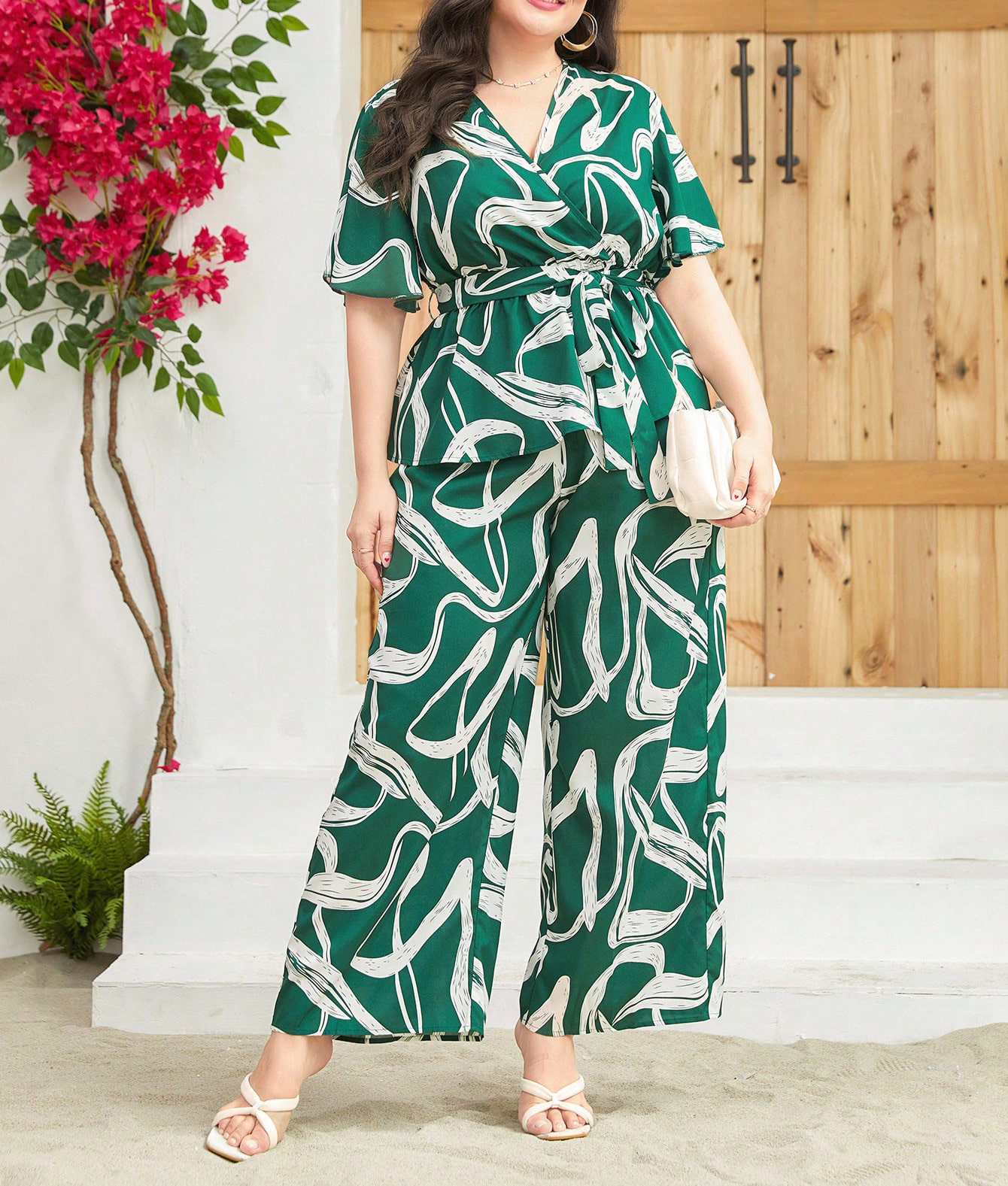 Spring Summer Sexy Bow Socialite Lace up Straight Loose High Waist Jumpsuit