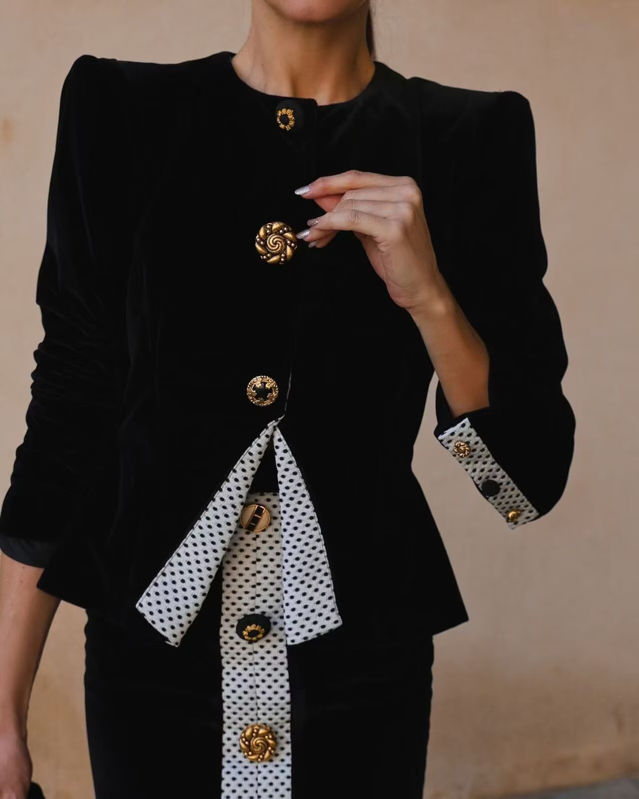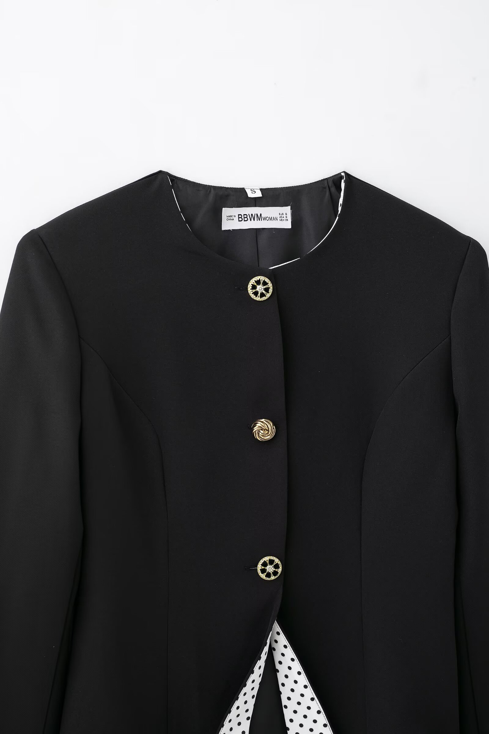 Spring Summer Women Casual round Neck Long Sleeve Blazer Skirt Two Piece Sets