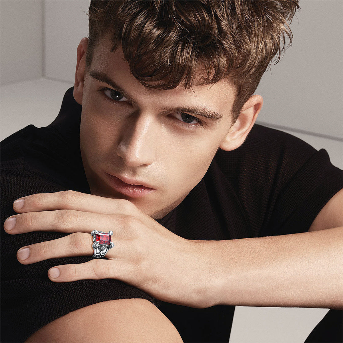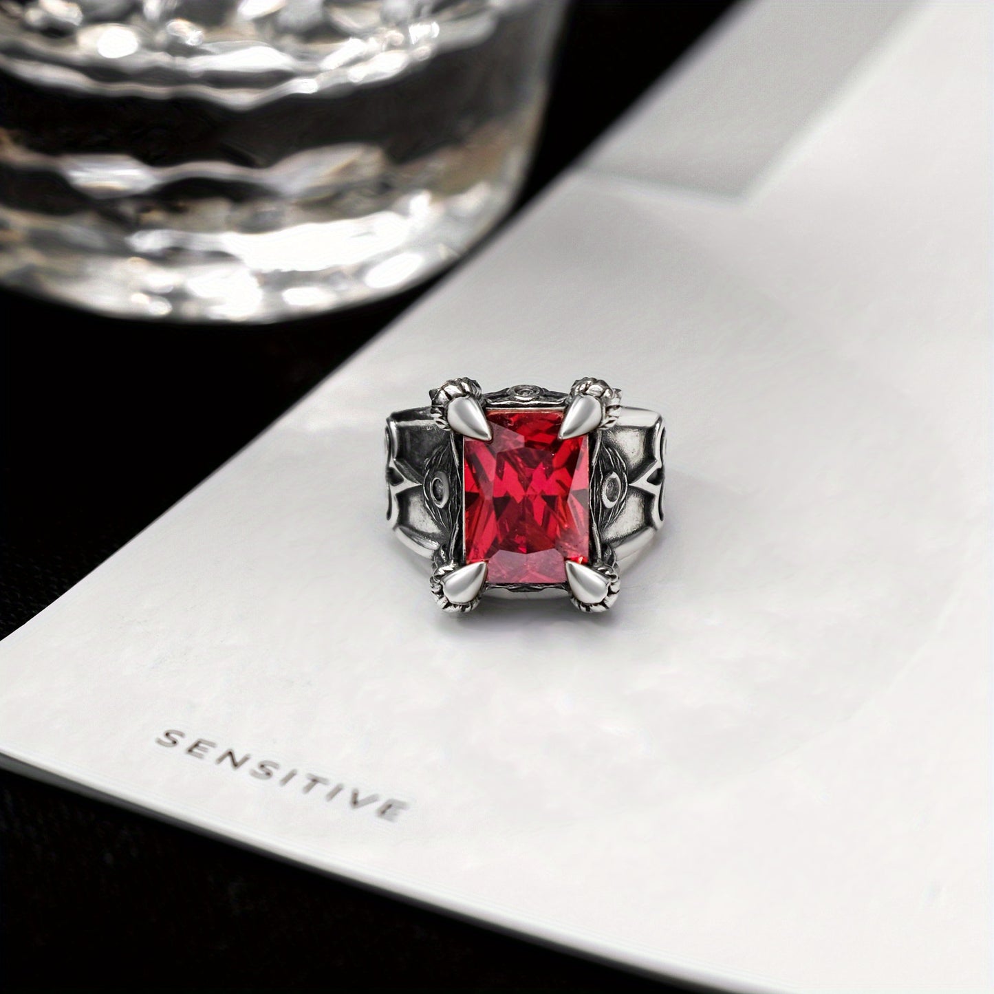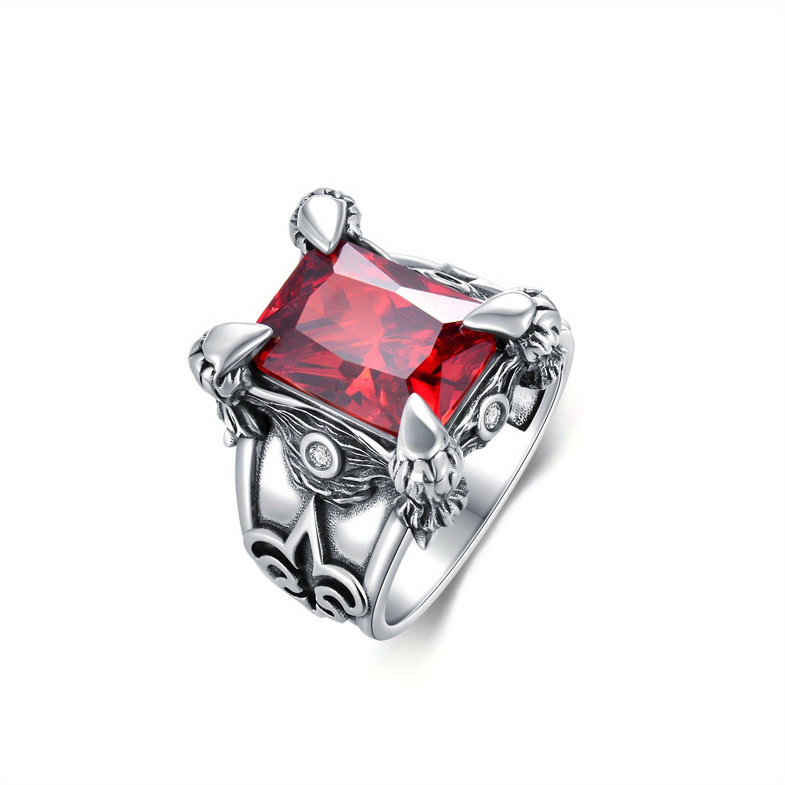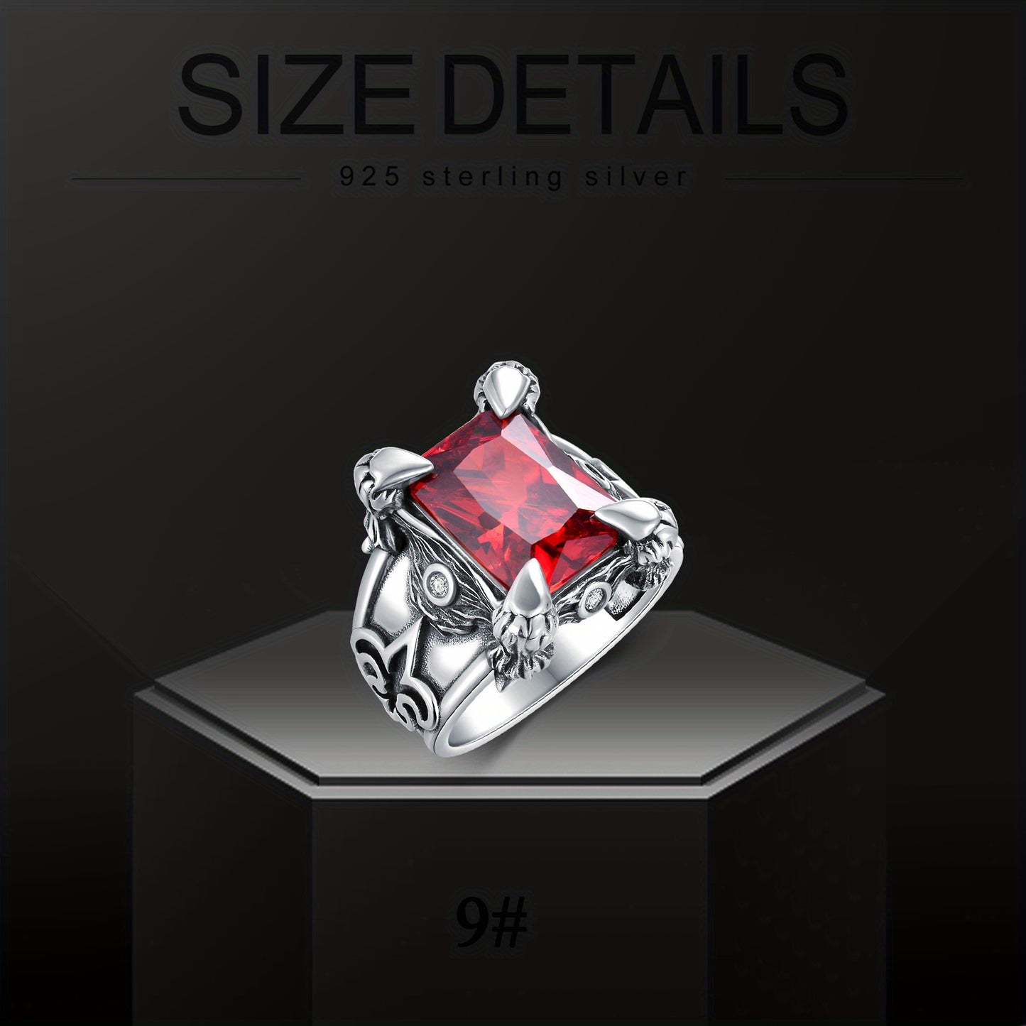 Square Garnet with Saints Engraving S925 Sterling 925 Silver Plated Handmade Retro Vintage Men Jewelry
