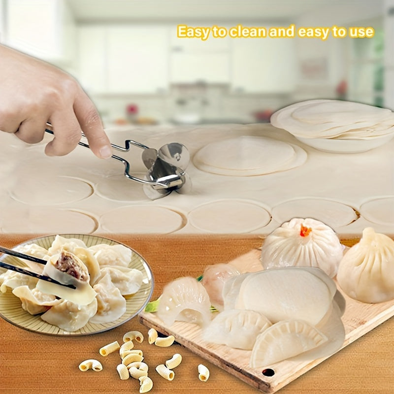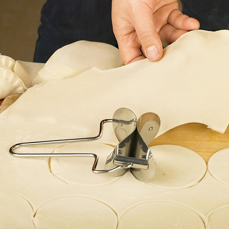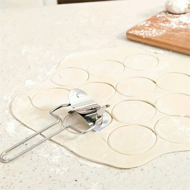 Stainless Steel Dumpling Cutter, 1PC Round Roller Blade Pastry Dough Pasty Maker Tool, Uncharged Manual Kitchen Gadget for Home Restaurant DIY Dumpling Wrapper Cutting