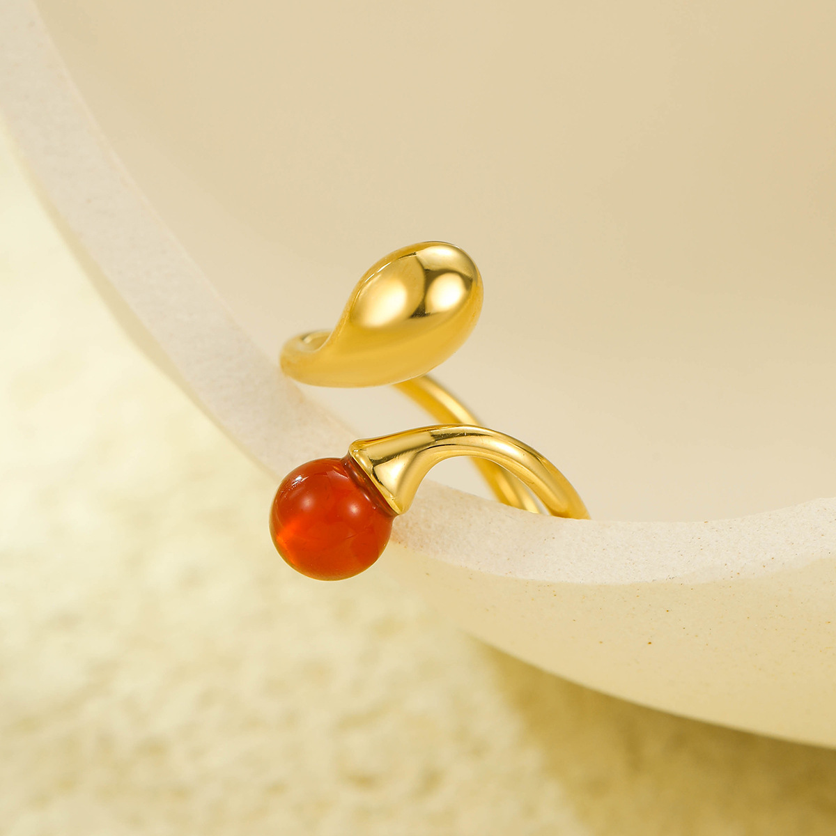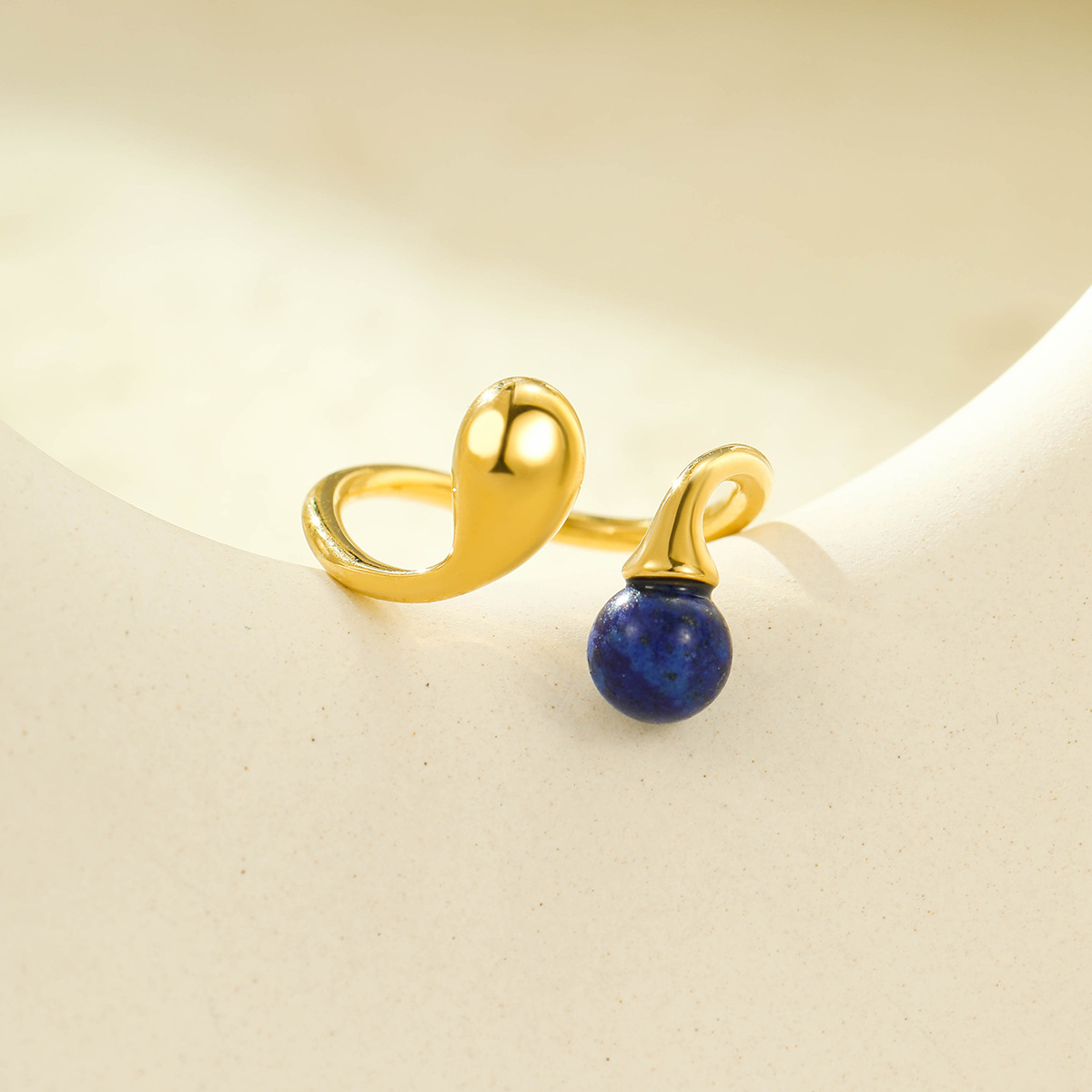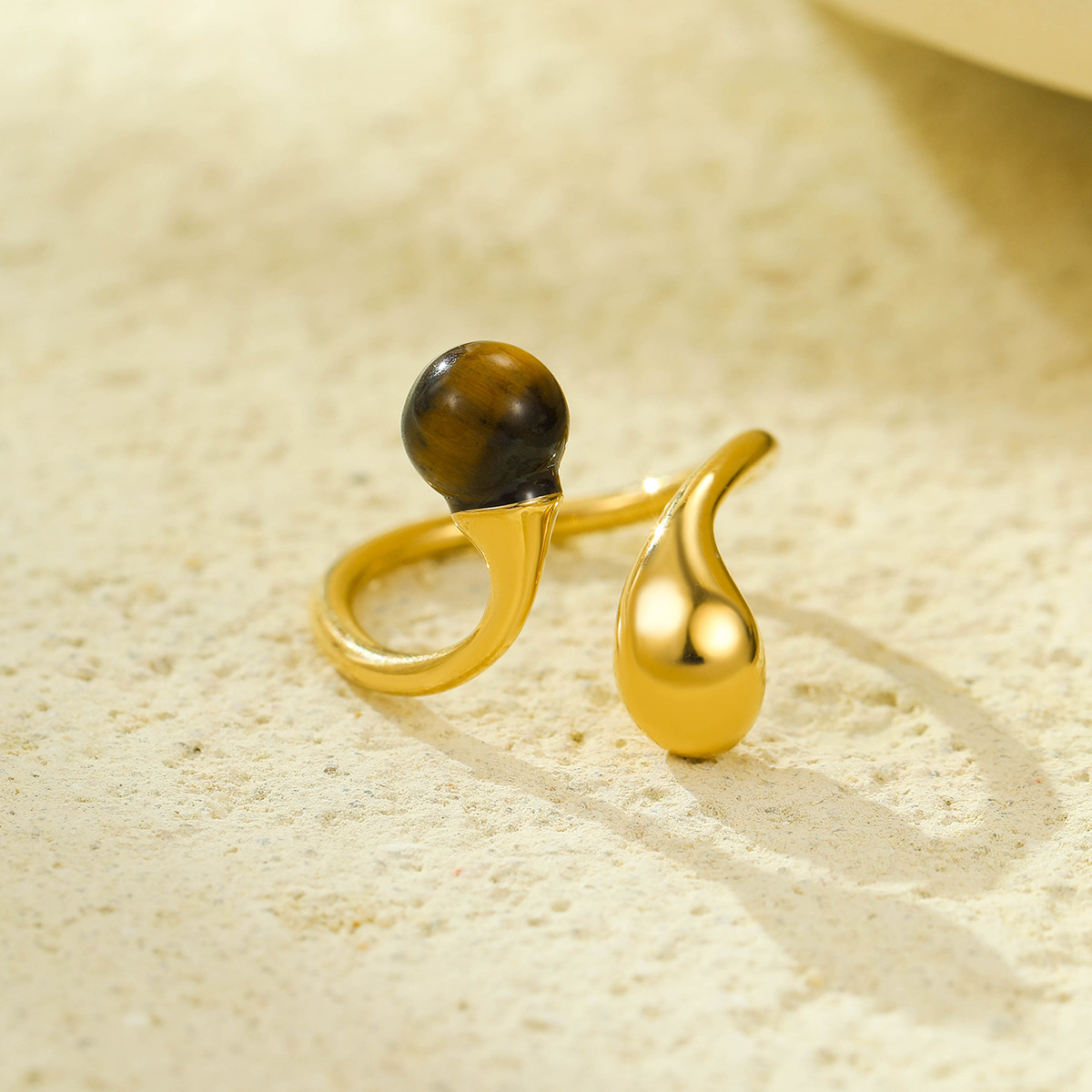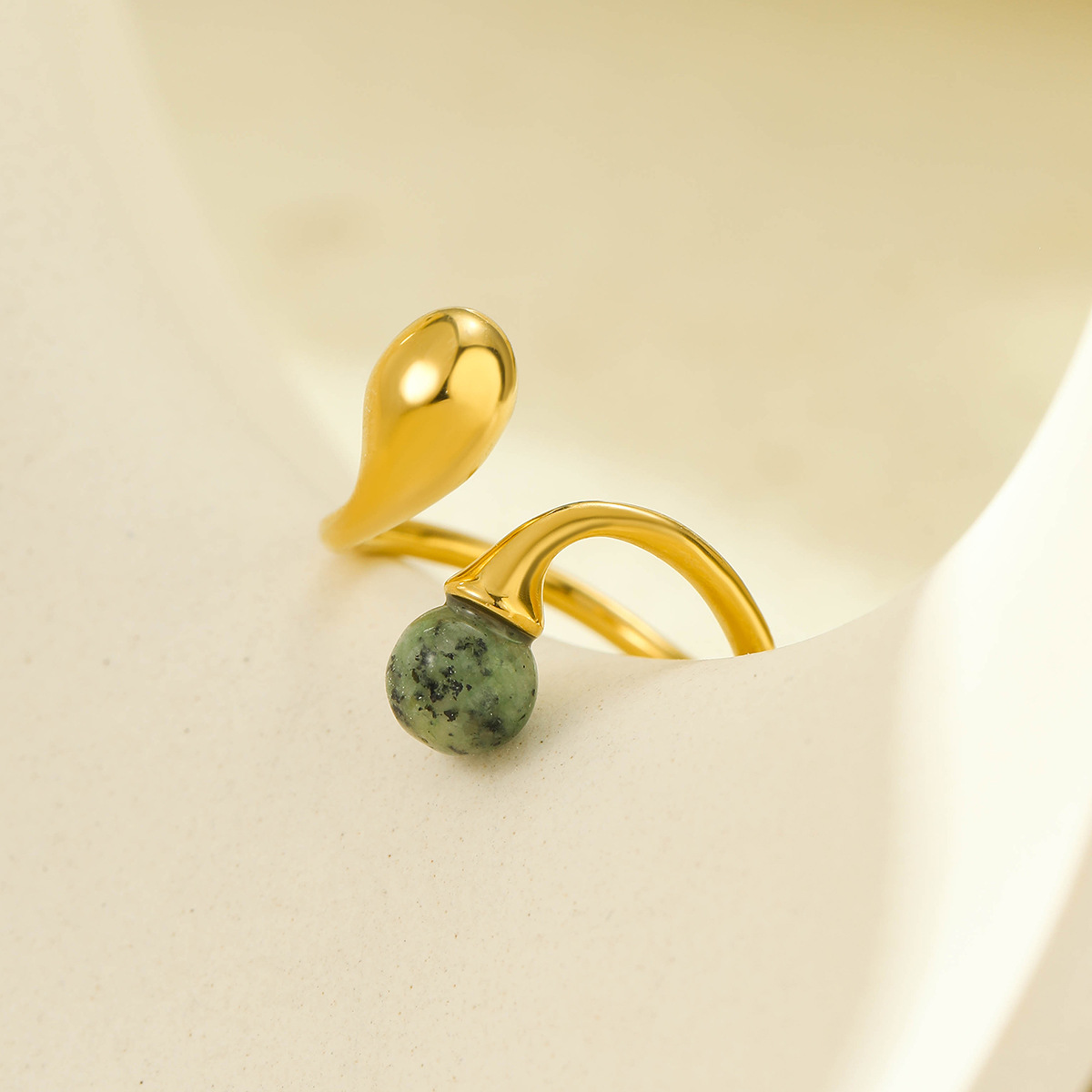 Stainless Steel Irregular Asymmetric Geometric Abstract Open Ring with Natural Stone Does Not Fade 18K Ring Bracelet