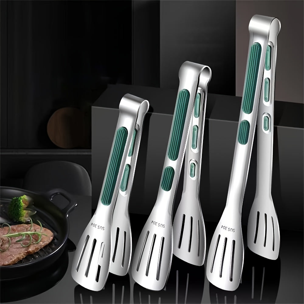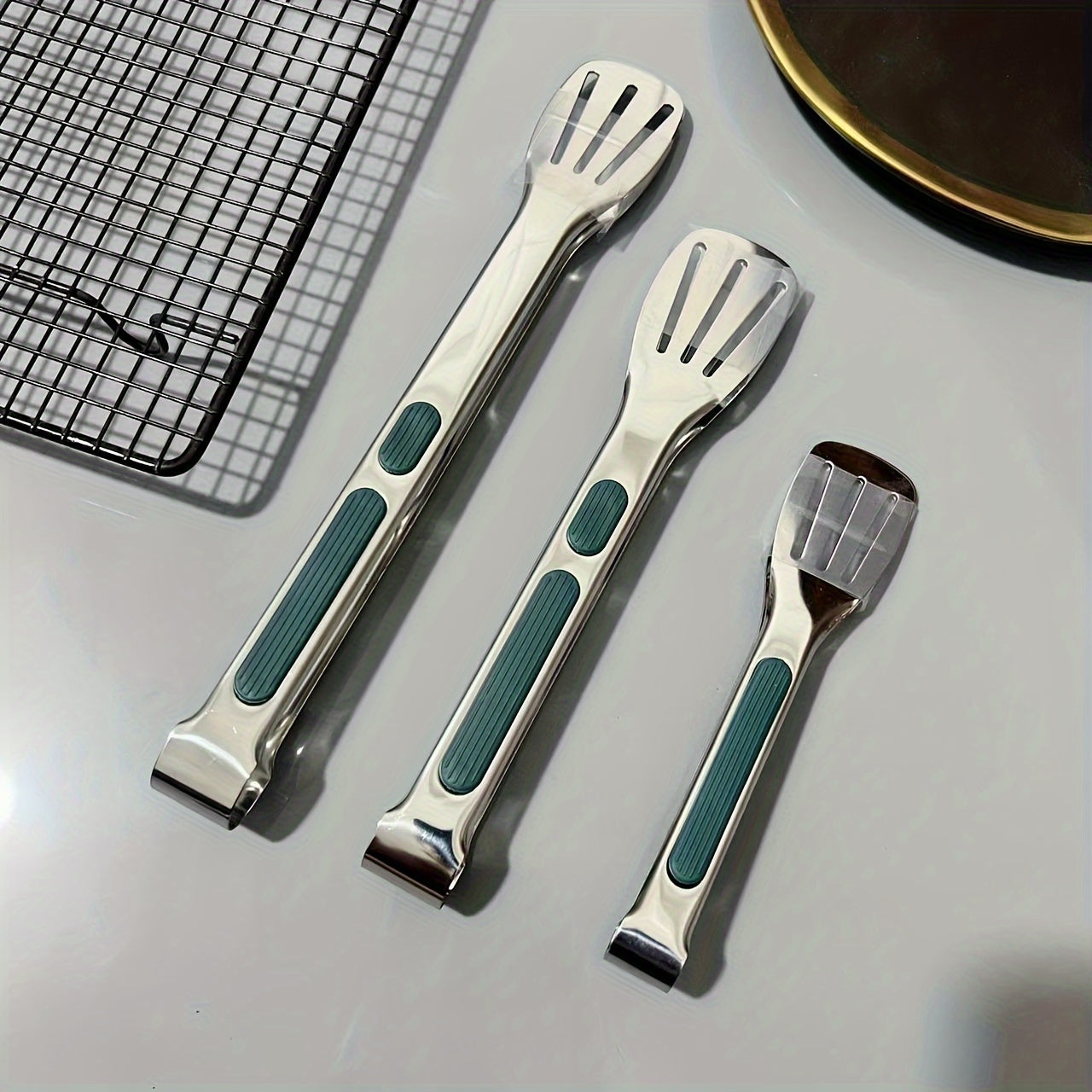 Stainless Steel Long Heavy-Duty Ergonomic 3pcs/set Food Tongs - Non-Slip Meat Salad Bread Serving Clip, Barbecue Grill Buffet Clamp, Cooking Tools, Kitchen Accessories, Kitchen Gadgets
