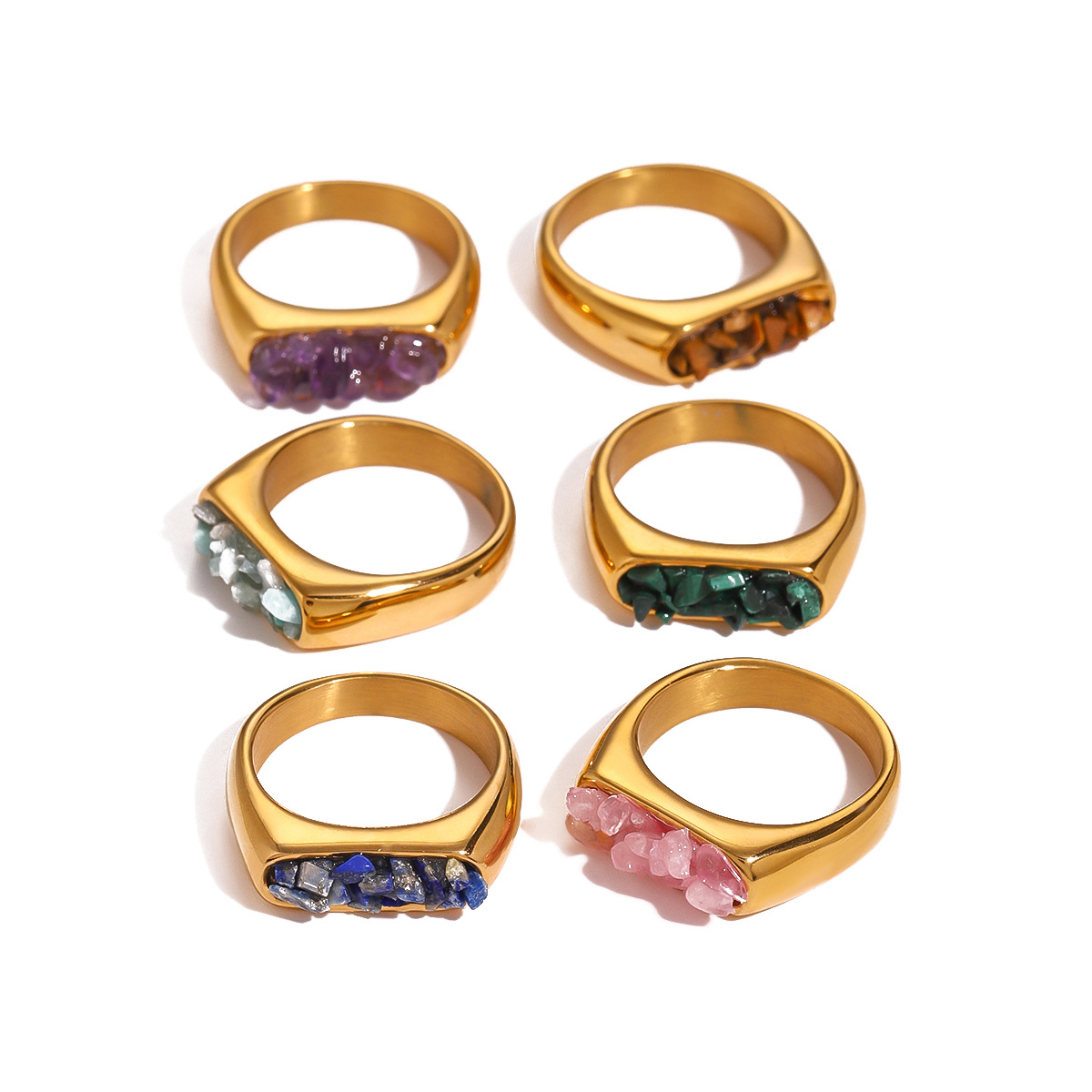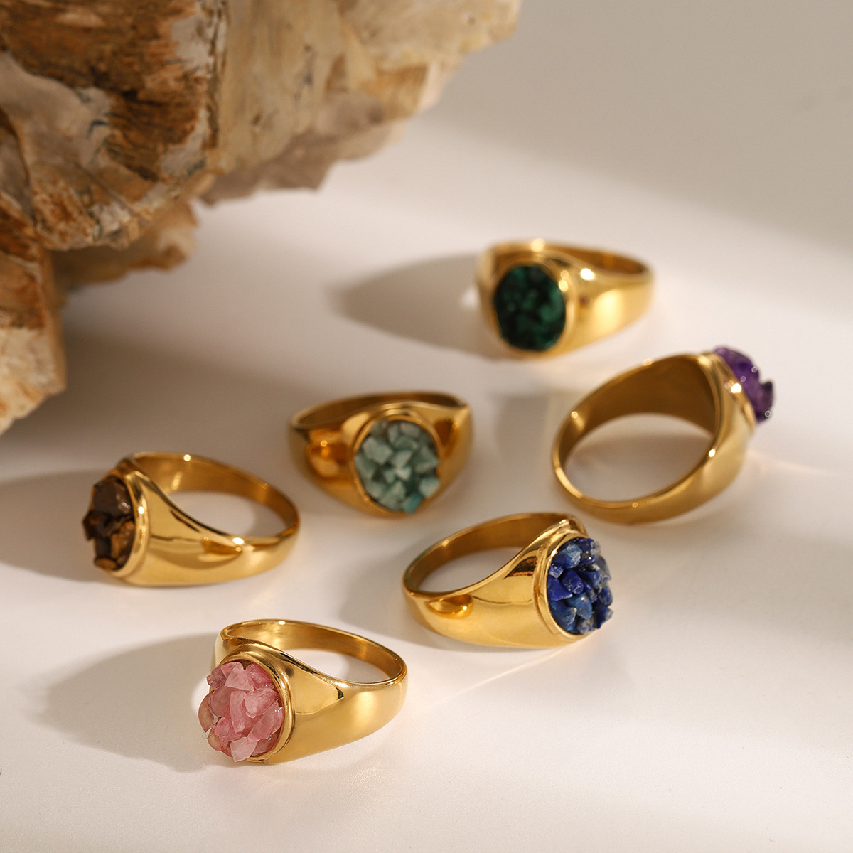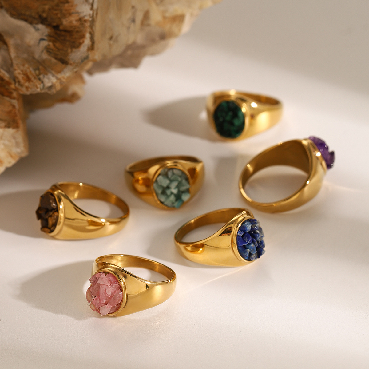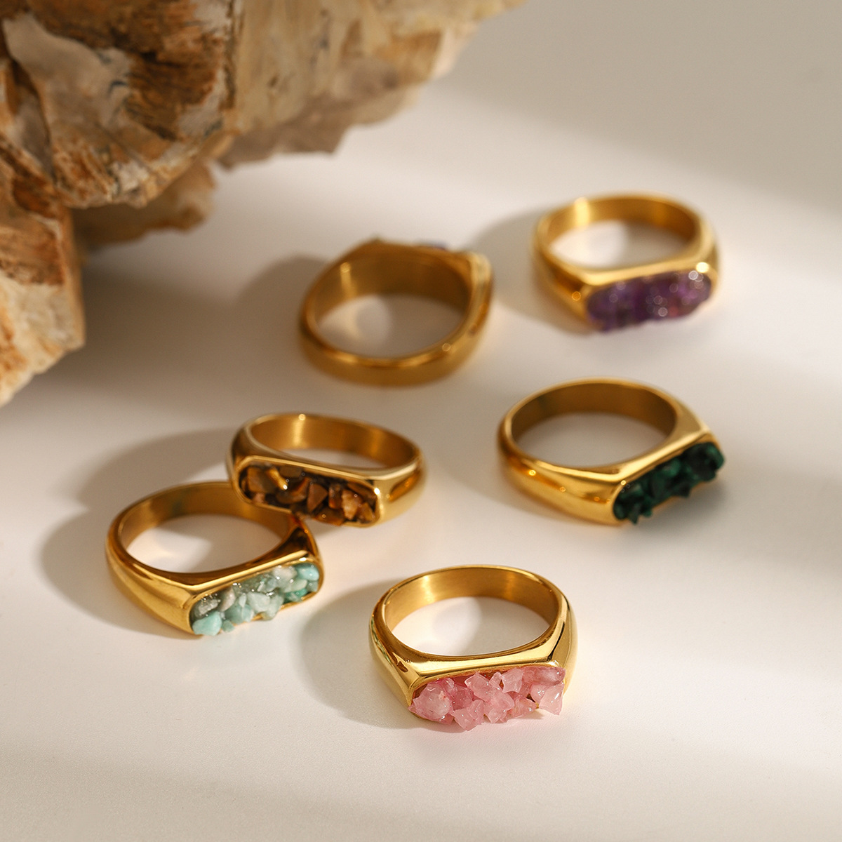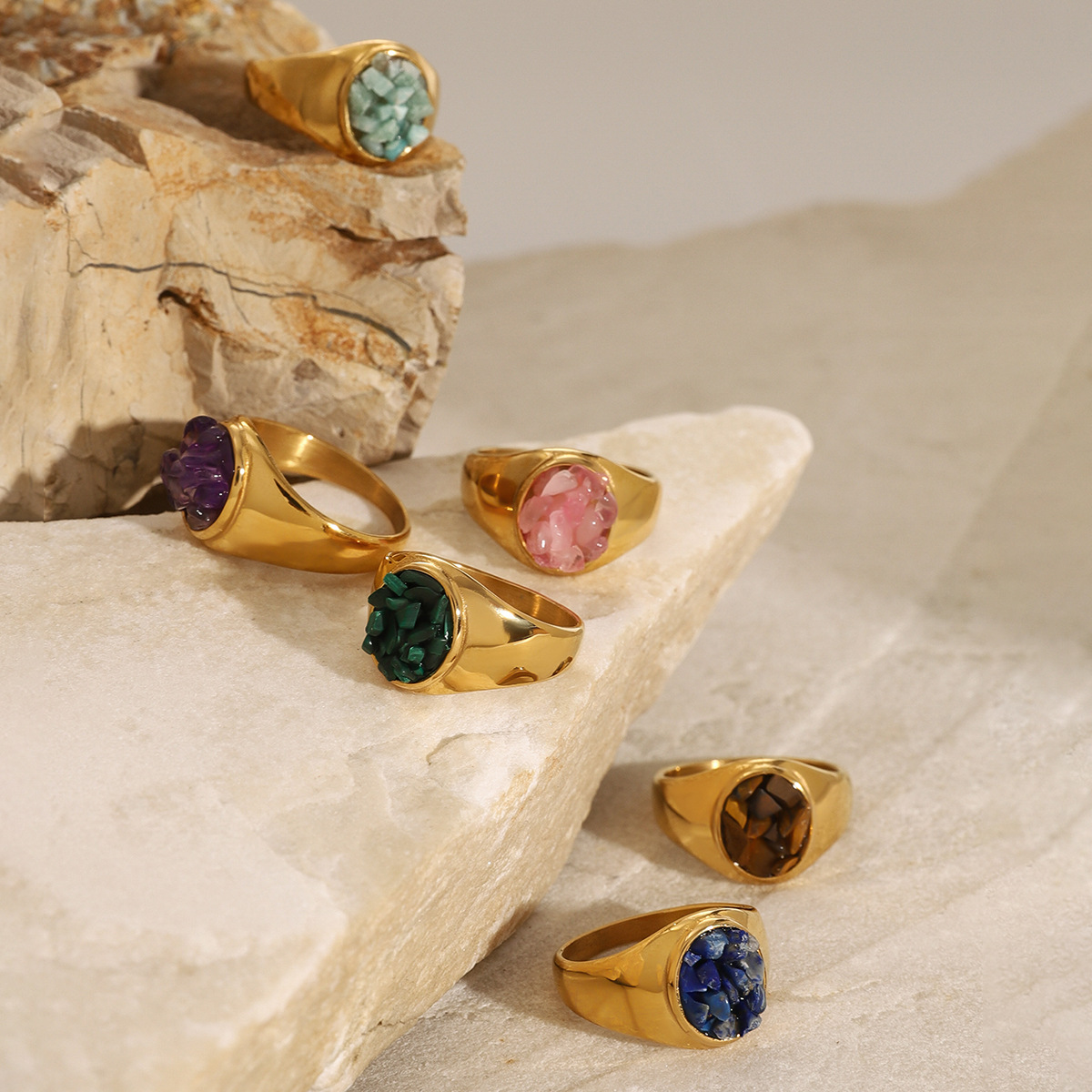 Stainless Steel Natural Stone Eye Catching Ring High Grade Ring Titanium Steel Hand Jewelry Rings
