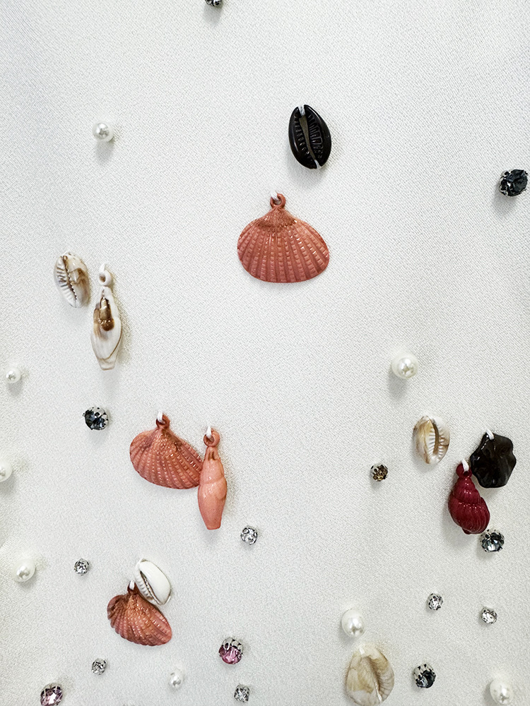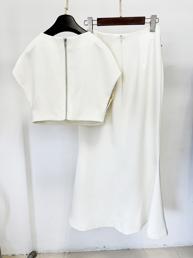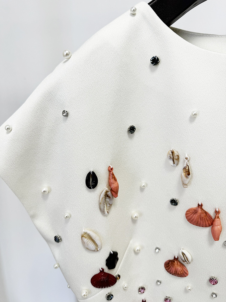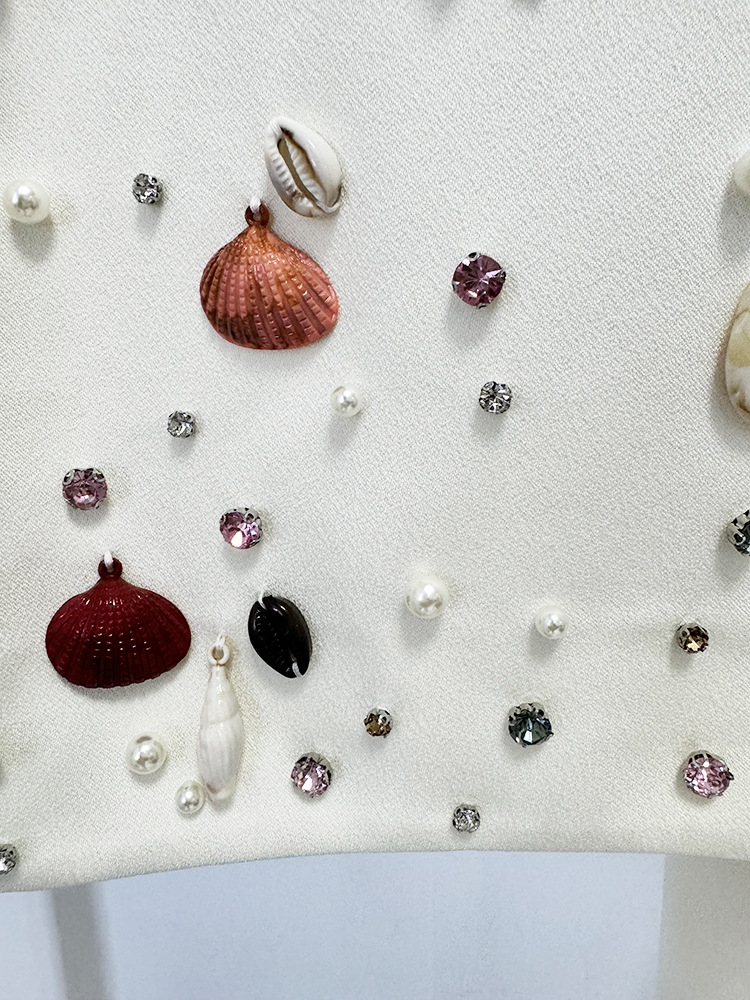 Star Heavy Industry Shell Beads Rhinestones Short Top Fishtail Mid Length Skirt Two Piece Sets