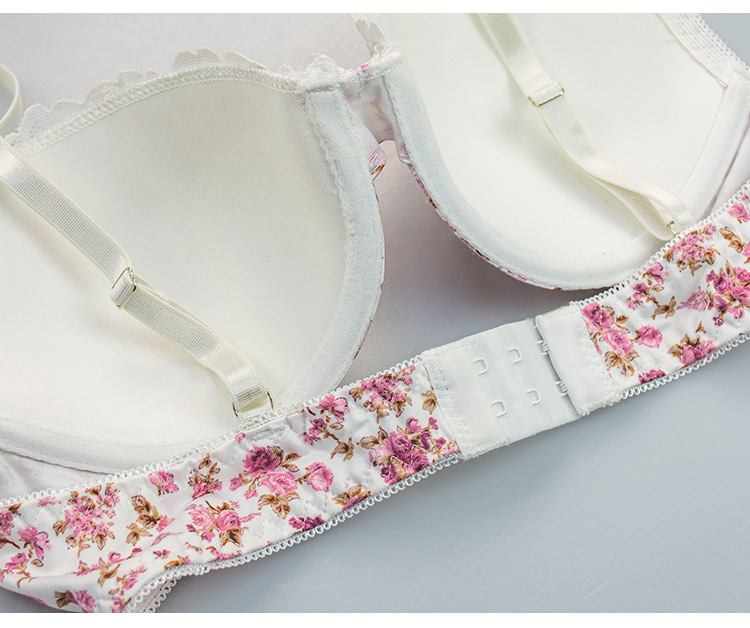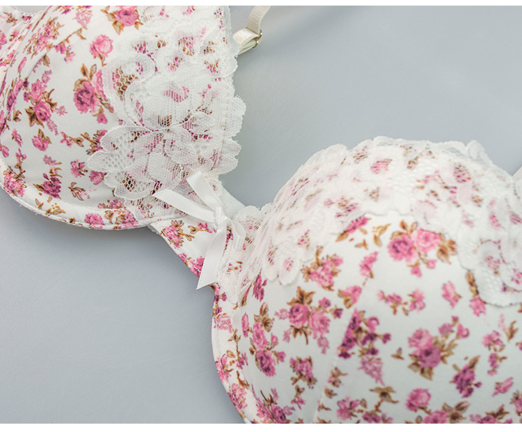 Steel Bracket Gathering Bra Printed Milk Silk Bow Lace Lace Briefs Sexy Suit