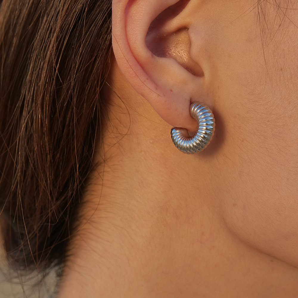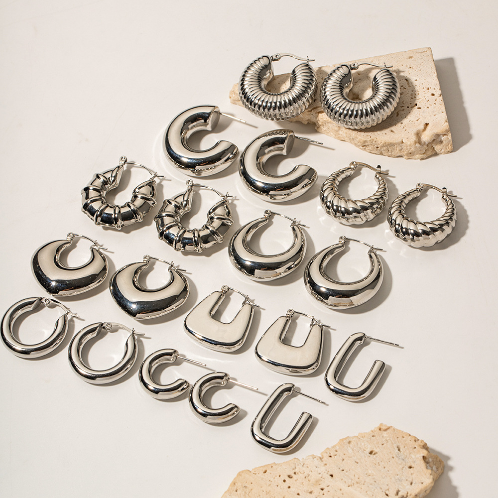 Steel Color Stainless Steel French Glossy Hollow Out Cutout Earrings Mesh Red Blogger Same Hoop Earrings Women Accessories