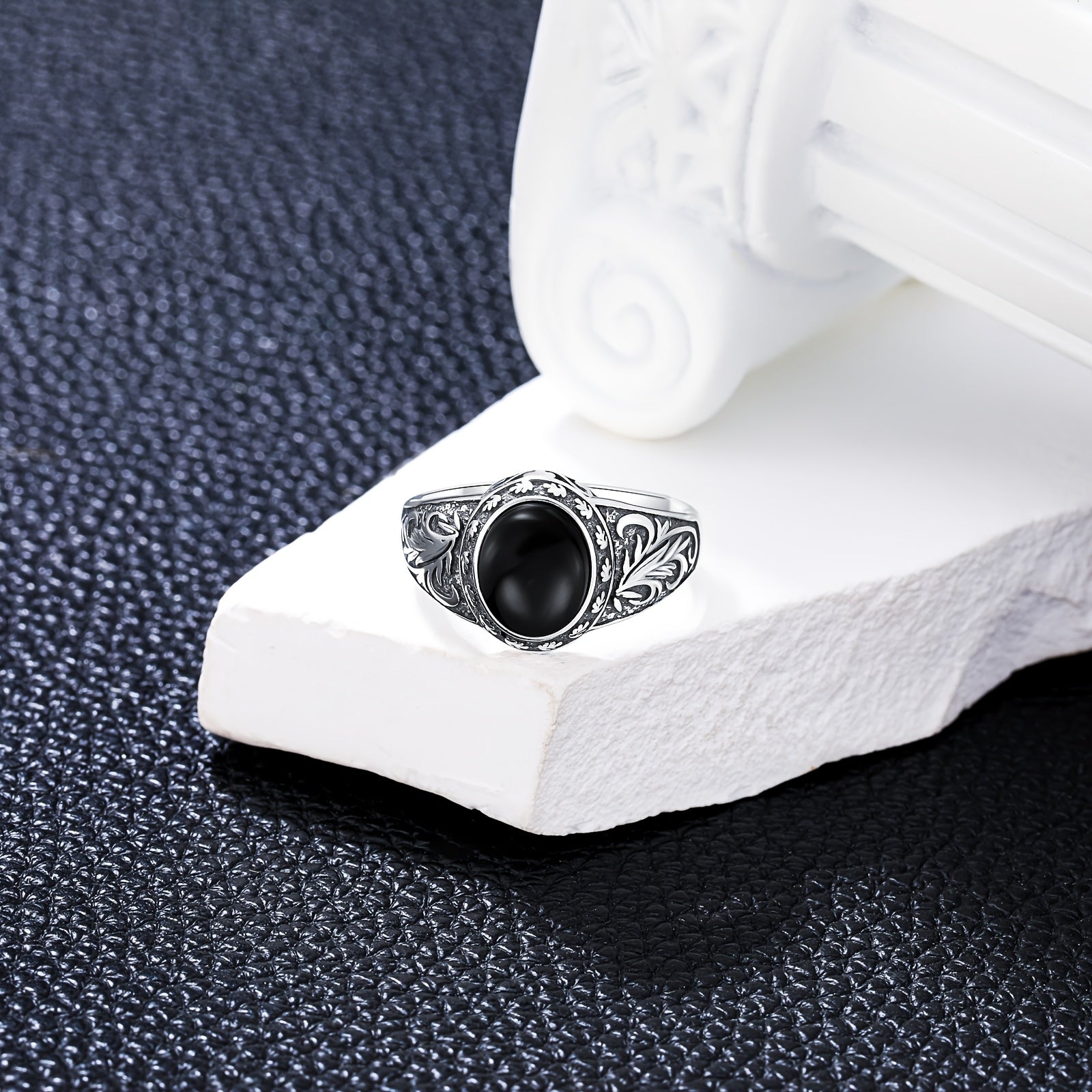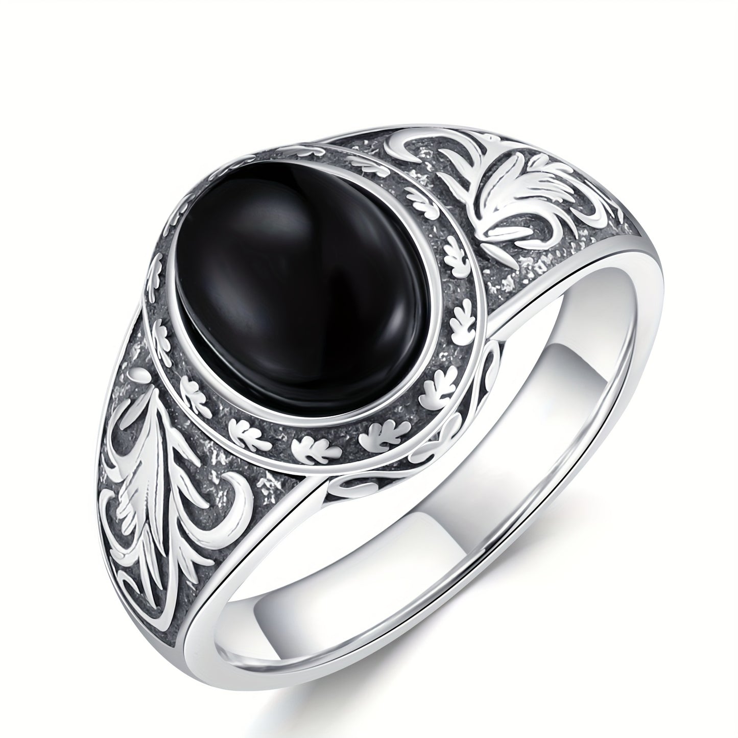 Sterling 925 Silver Plated Black Onyx Ring for Men Statement Ring Vintage Ring Handmade Ring Jewelrys for Onyx Lover