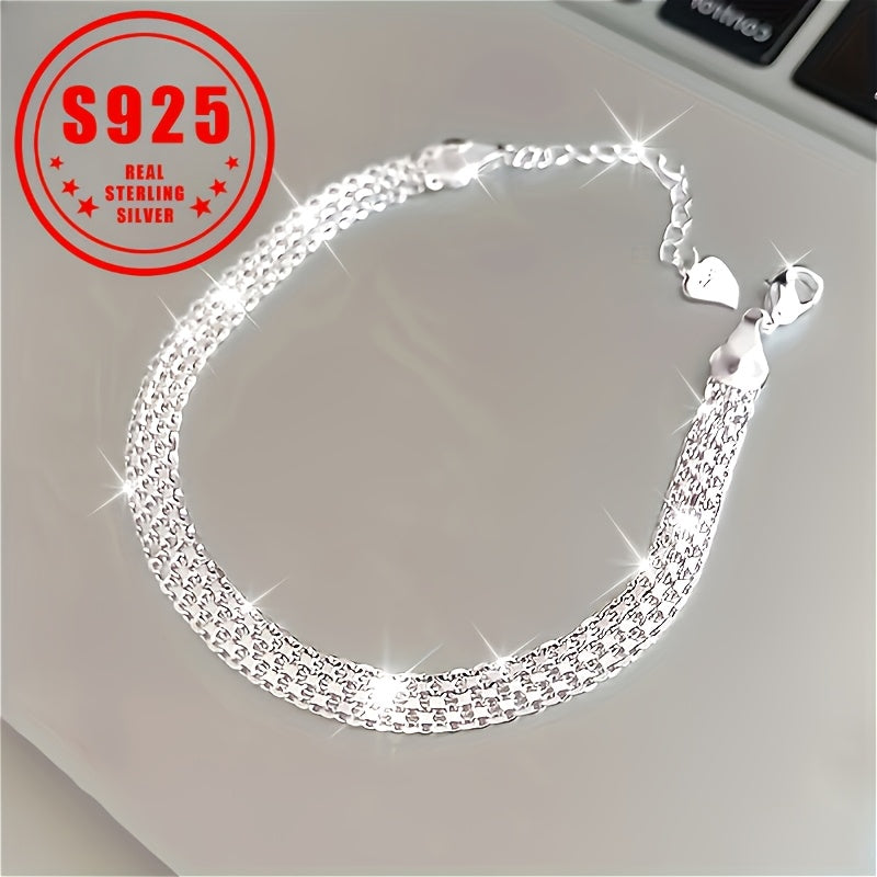 [Sterling Silver Luxury Bracelet] Sterling Silver Hypoallergenic Elegant Luxury Bracelet - S925 Men's and Women's Banquet Hand Jewelry, 3.65g/0.13oz
