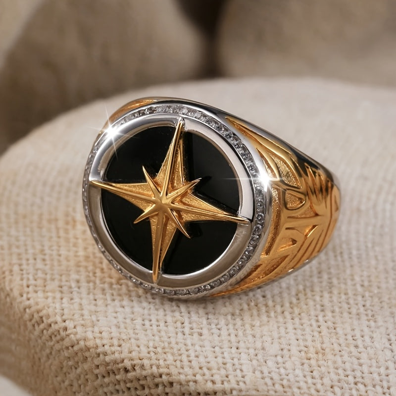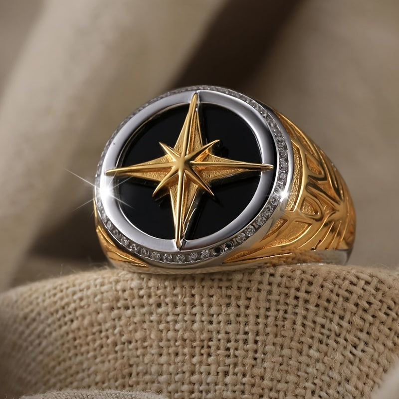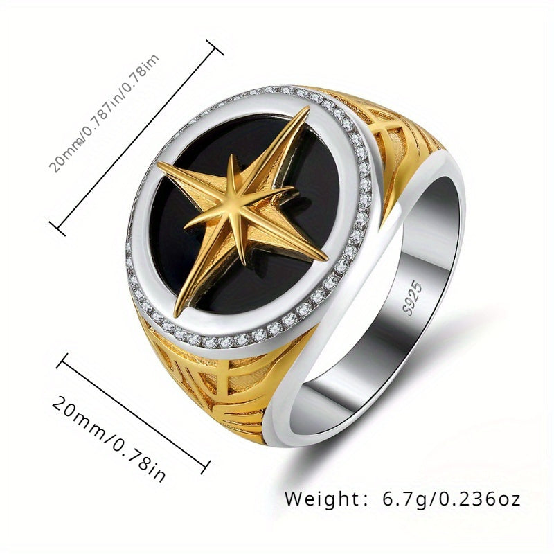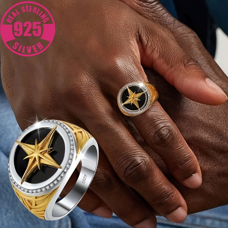 Sterling Silver S925 Two-Tone Plated Star Ring for Men, Hip-Hop Style, Fashionable Vintage Casting Jewelry, Versatile Trendy, Vacation Entertainment, Personalized Bold Statement, Approx. 6.7g