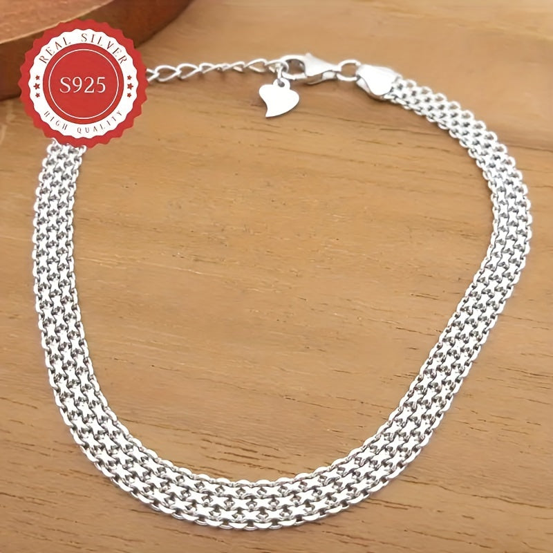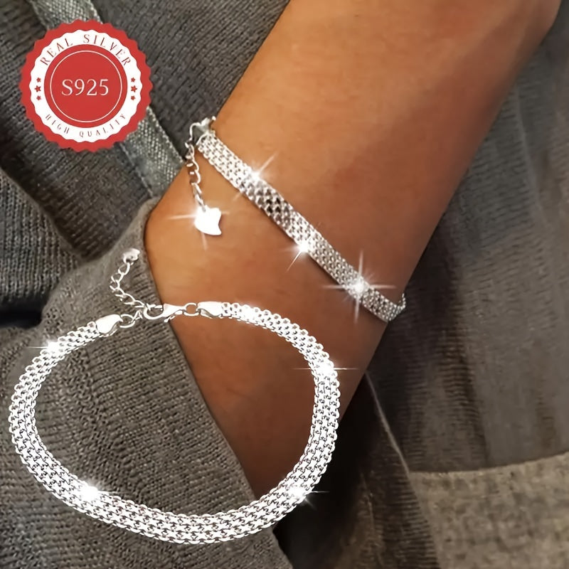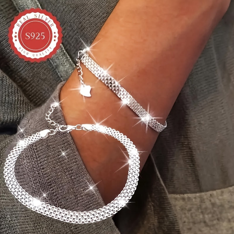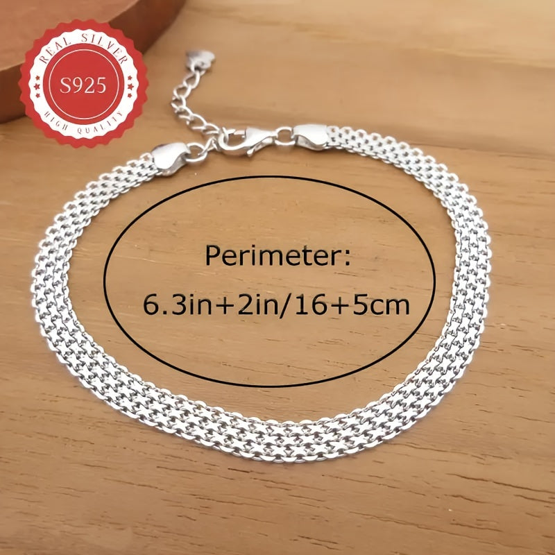 Sterling Silver Unisex Sparkling Chain Bracelet - S925 Mesh Embossed Design, 5.2g/0.18oz Hand Accessory