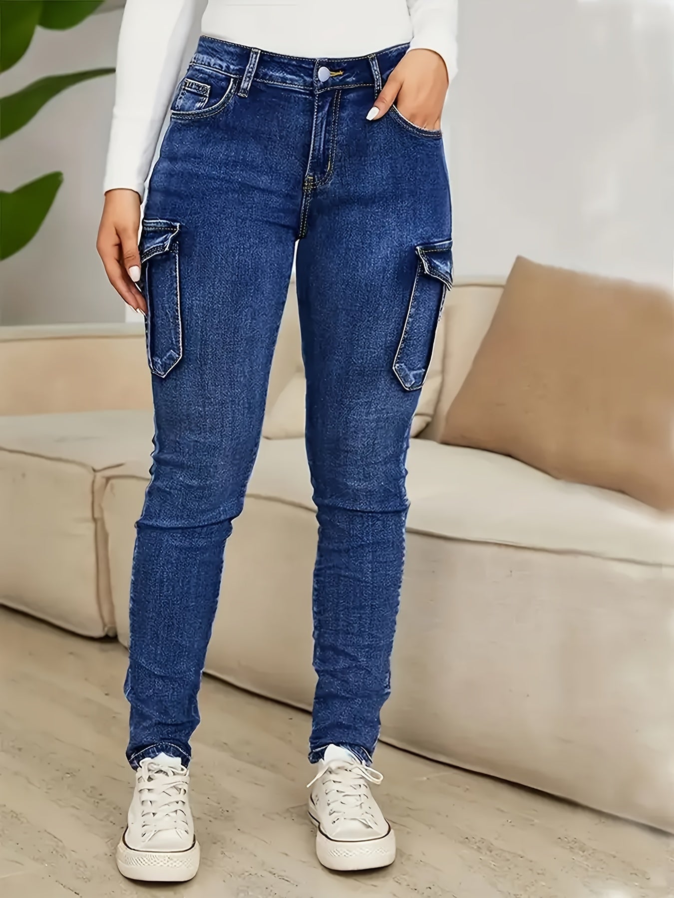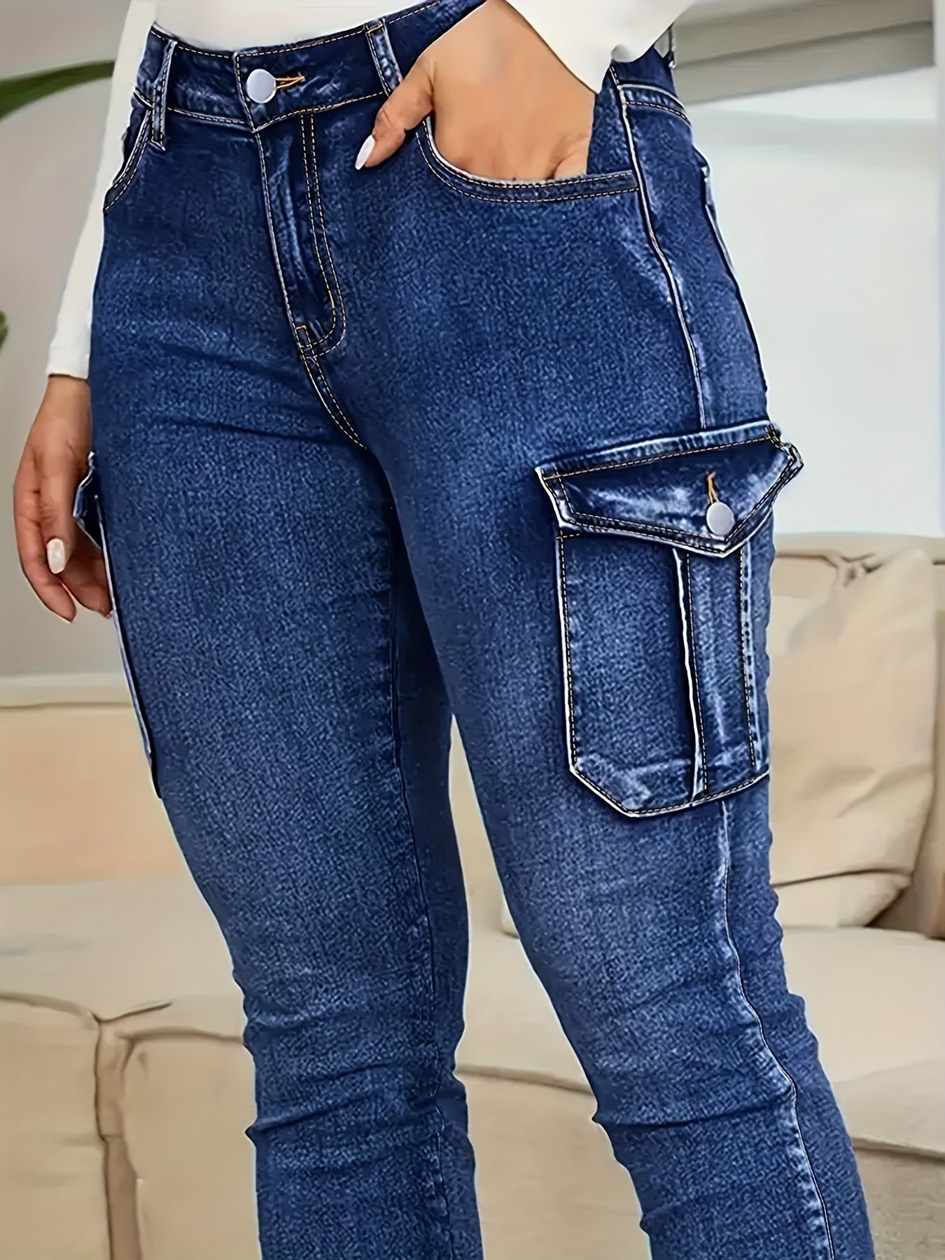 [Stretchy Cargo Pants] Slim-Fit Cargo Pants - High-Waisted with Stretchy Pockets for Enhanced Hips and Tall Silhouette