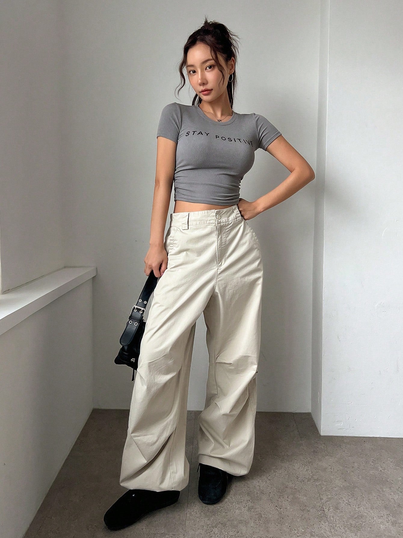 Strévra Ladies" Simple Print Round Neck Short Sleeve T-Shirt