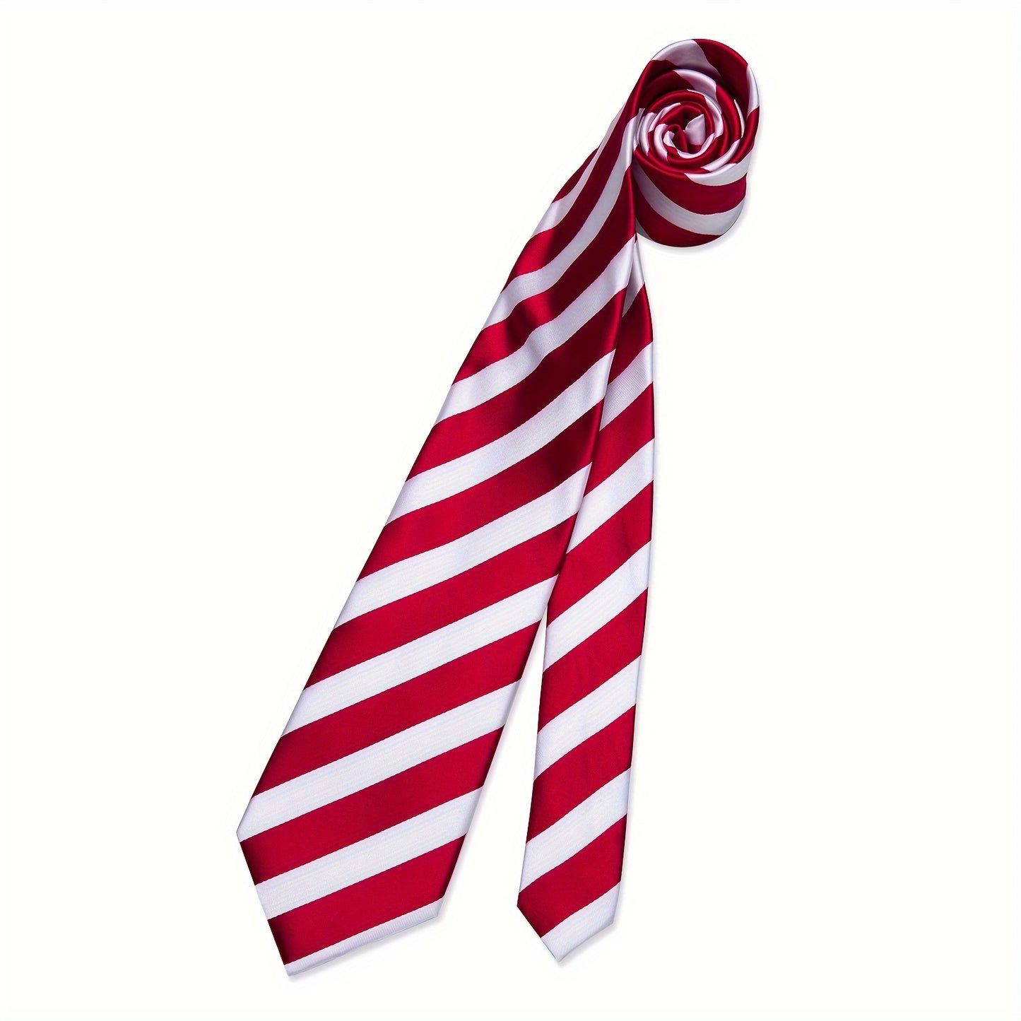 Striped Mens Accessories 3pcs/set Red and White Striped Mens Necktie Hanky Cufflinks - For Wedding Festival