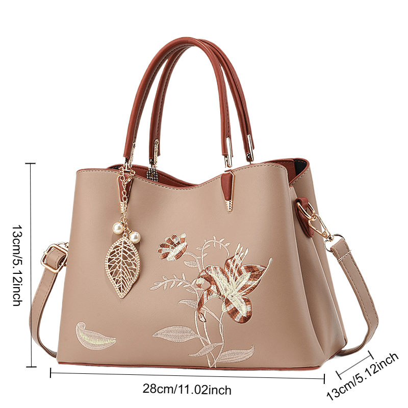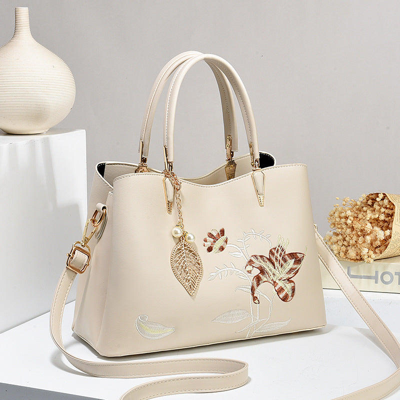 Stylish Beige Embroidered Tote Bag with Floral Design, Golden-Tone Hardware, and Decorative Bow - Large Capacity, Zipper Closure, Nylon Lining, Perfect for Casual or Formal Occasions, Casual Carryall | Floral Embroidery | Durable Nylon Lining, Large Tote