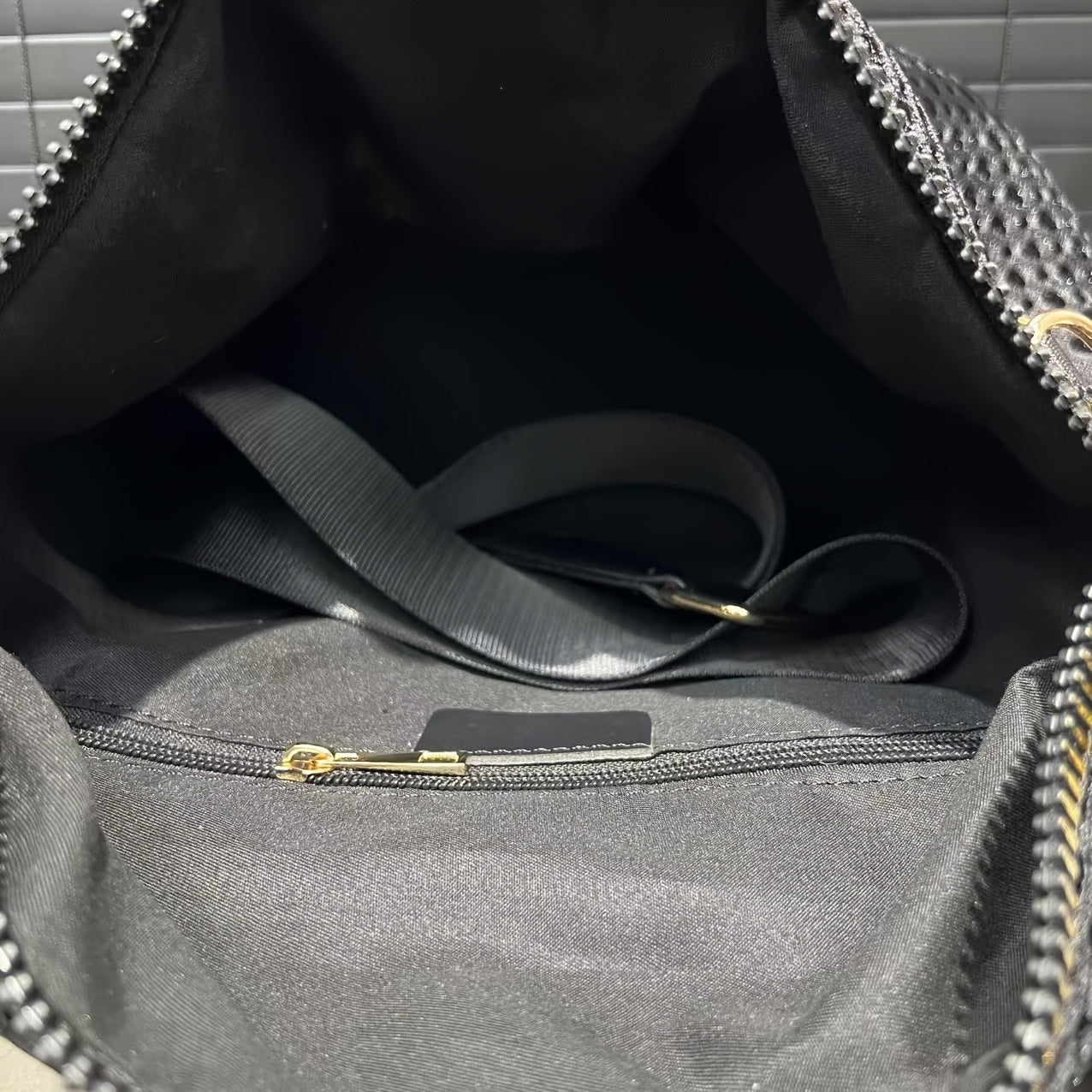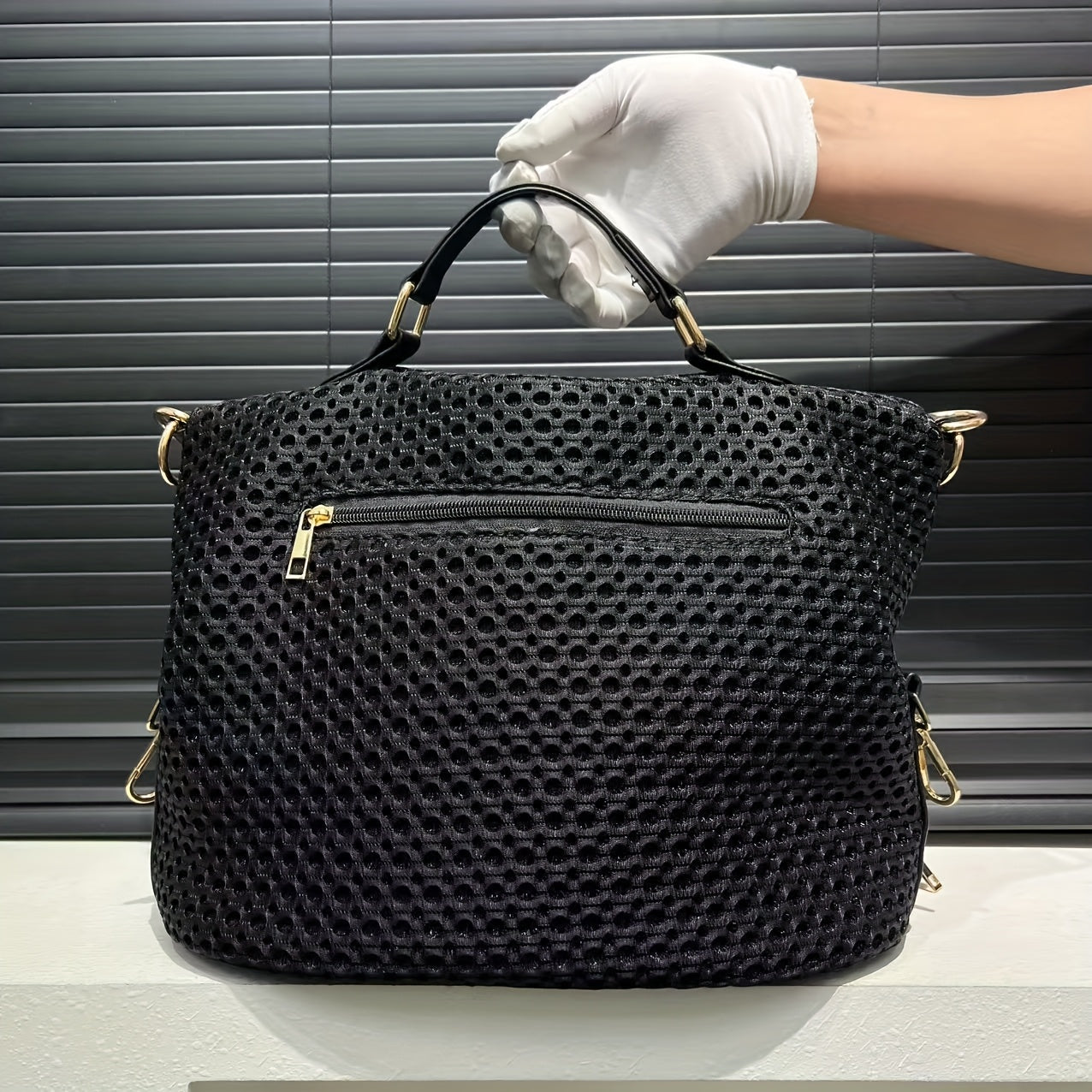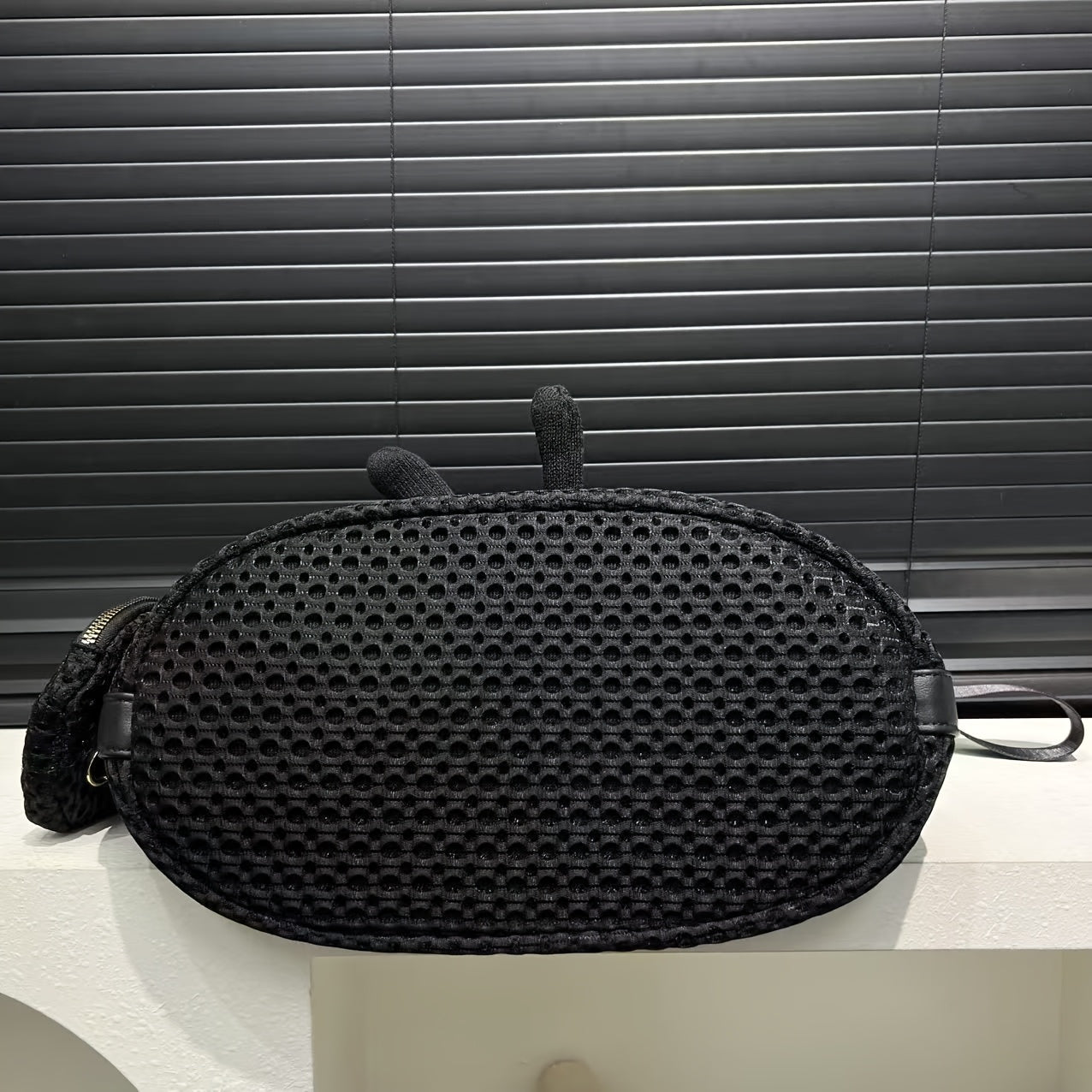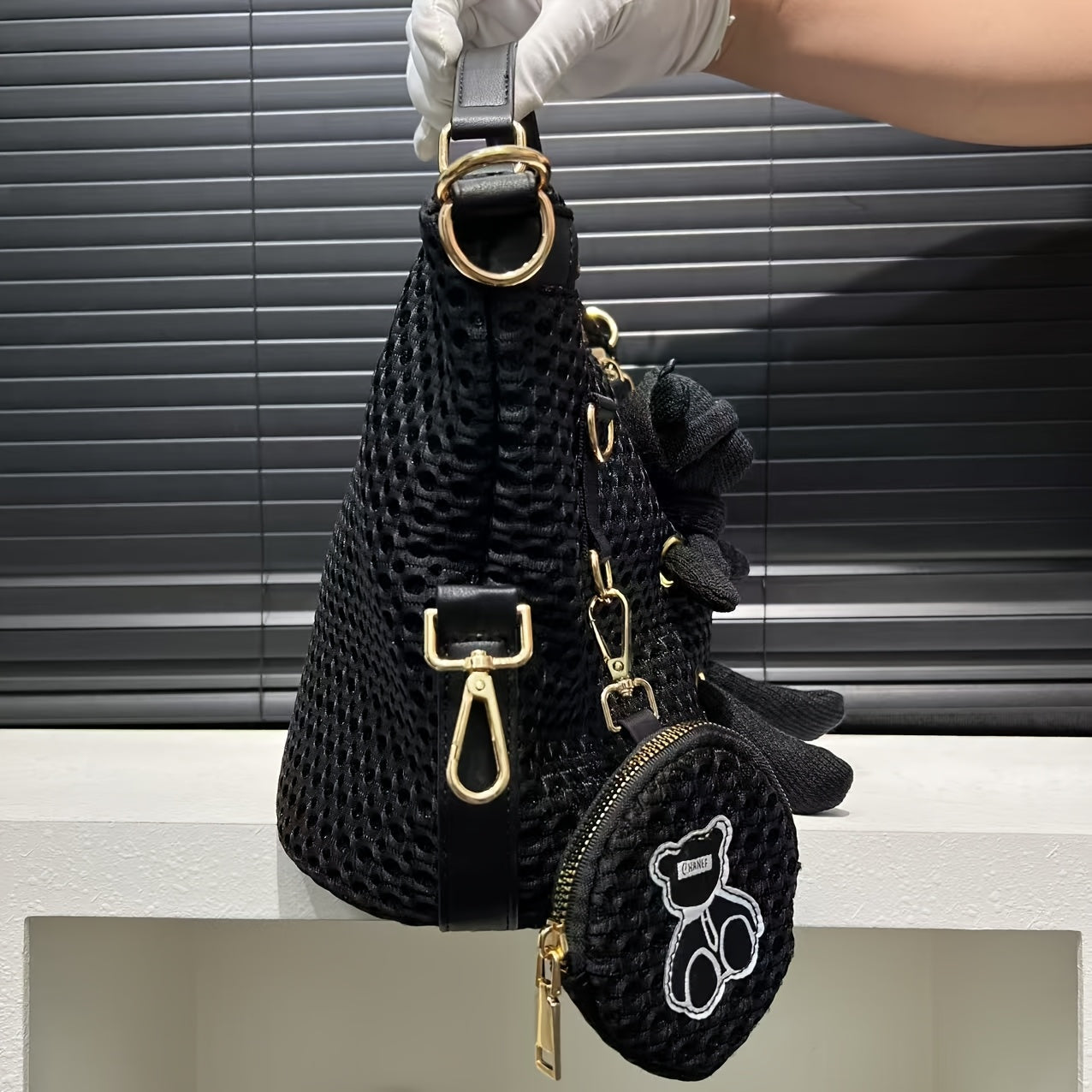 Stylish Black Mesh Shoulder Bag for Women - Lightweight Nylon Tote with Detachable Strap, Bear Charm & Golden-Tone Hardware, Zipper Closure, Front Pocket & Durable Polyester Lining - Versatile Crossbody Purse for Everyday Use & Travel, Small Crossbody Bag