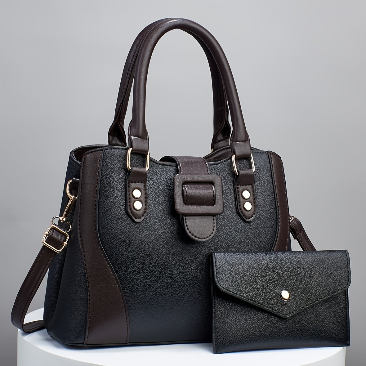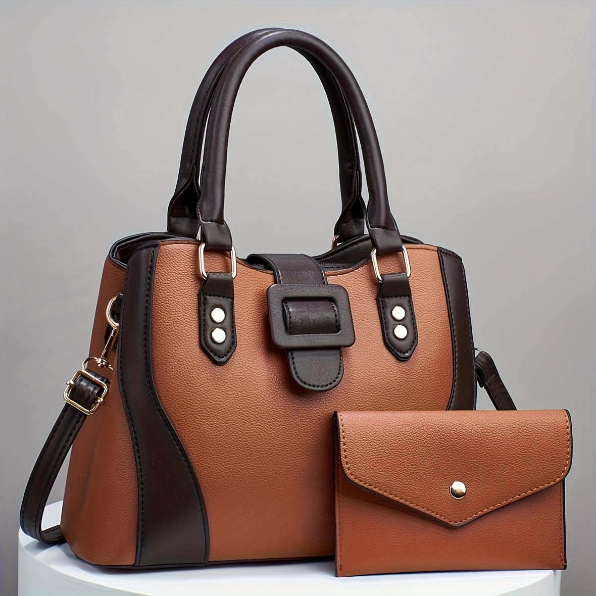 Stylish Brown Tote Bag with Black Accents - Large Capacity, Versatile Shoulder & Crossbody Bag for Women, Perfect for Work, Travel, or Everyday Use, Travel Tote Bag | Elegant Tote Bag | Durable Zipper Closure