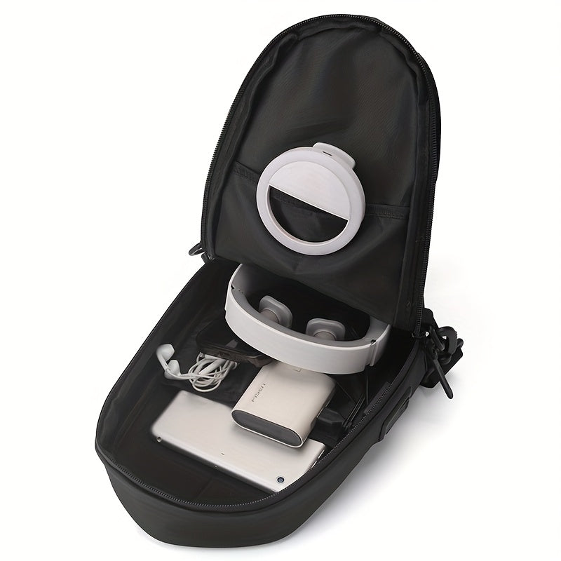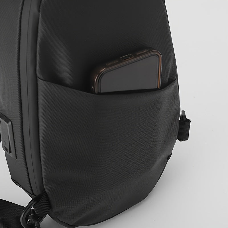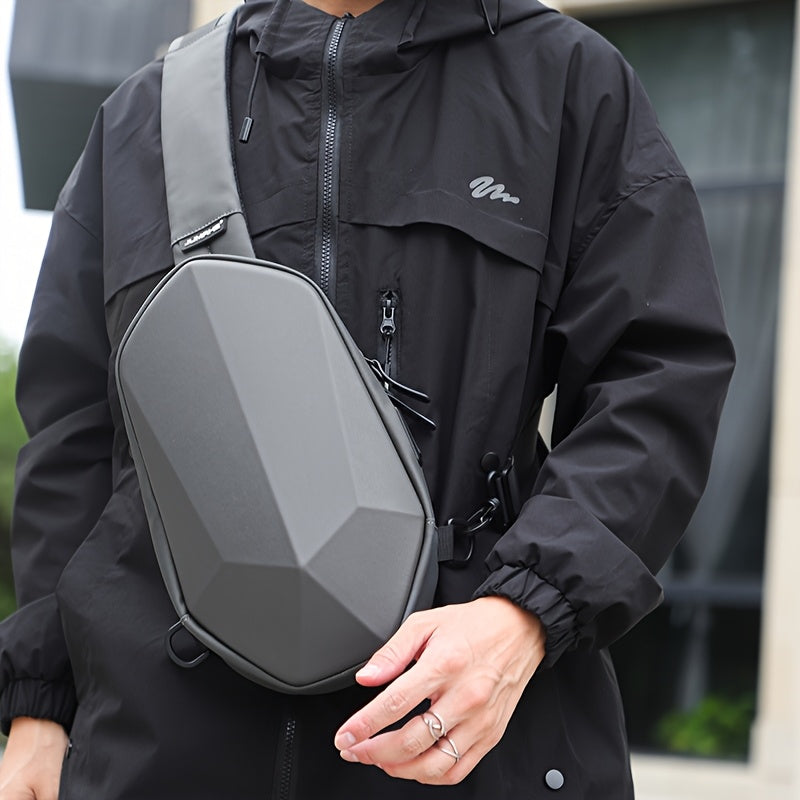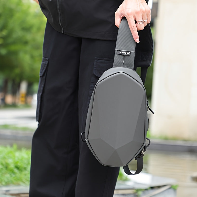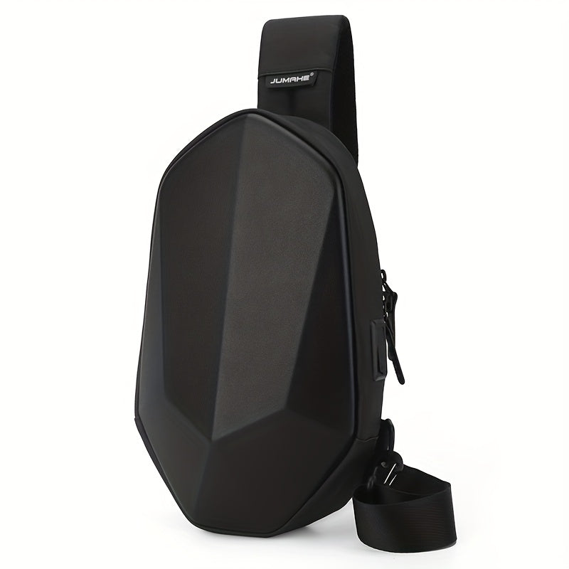 [Stylish Crossbody Bag] Lightweight Hard Shell Men's Crossbody Bag - USB Charging Port, 9.7" iPad, Black, Multiple Compartments, Adjustable Strap - Stylish Hexagonal Design, Casual Daypack for Hiking, Walking, Biking & Travel