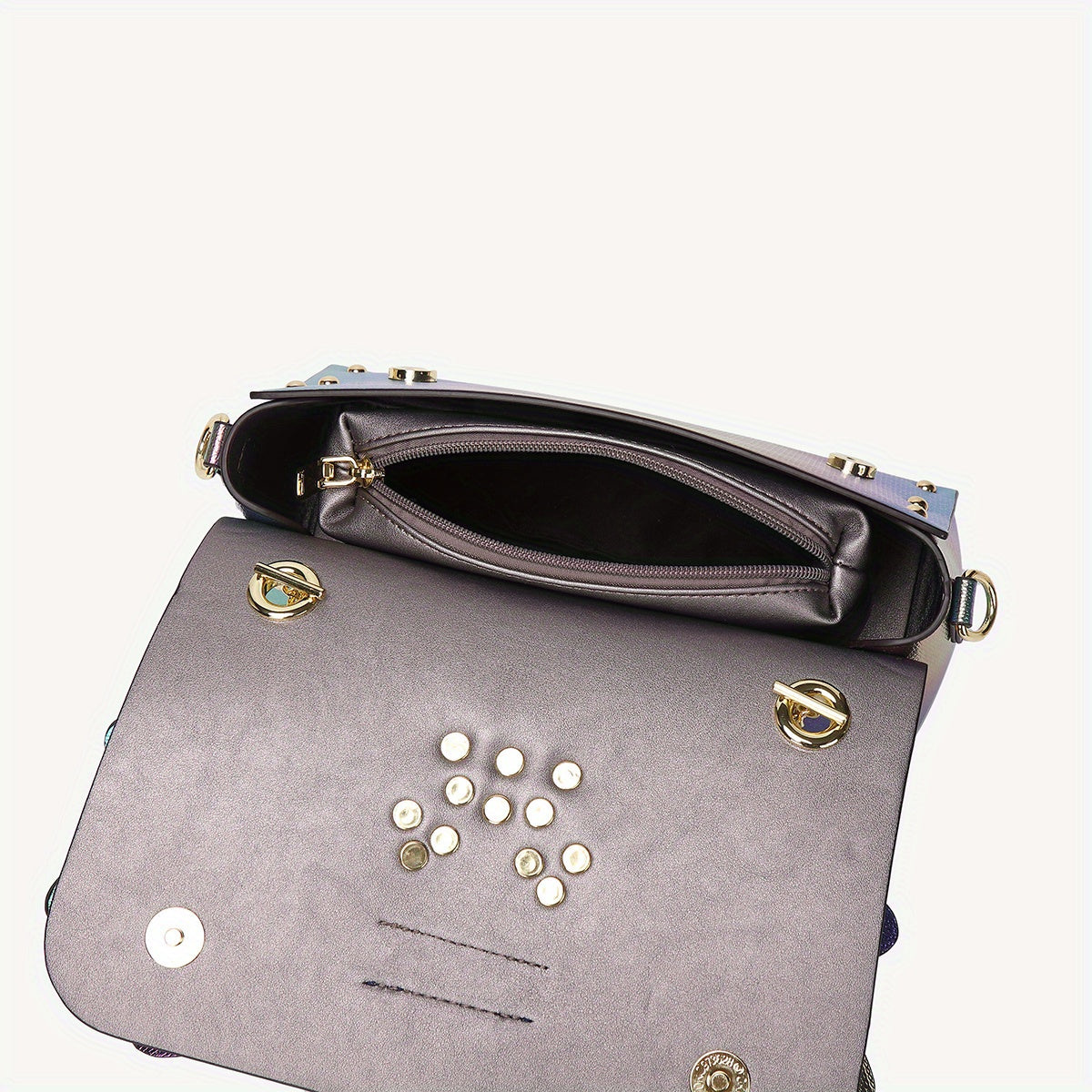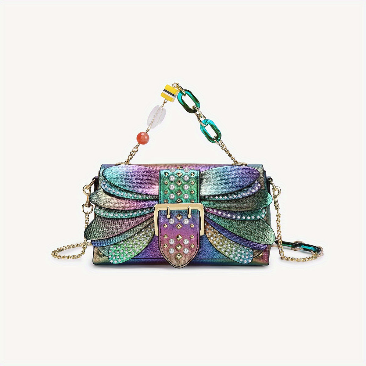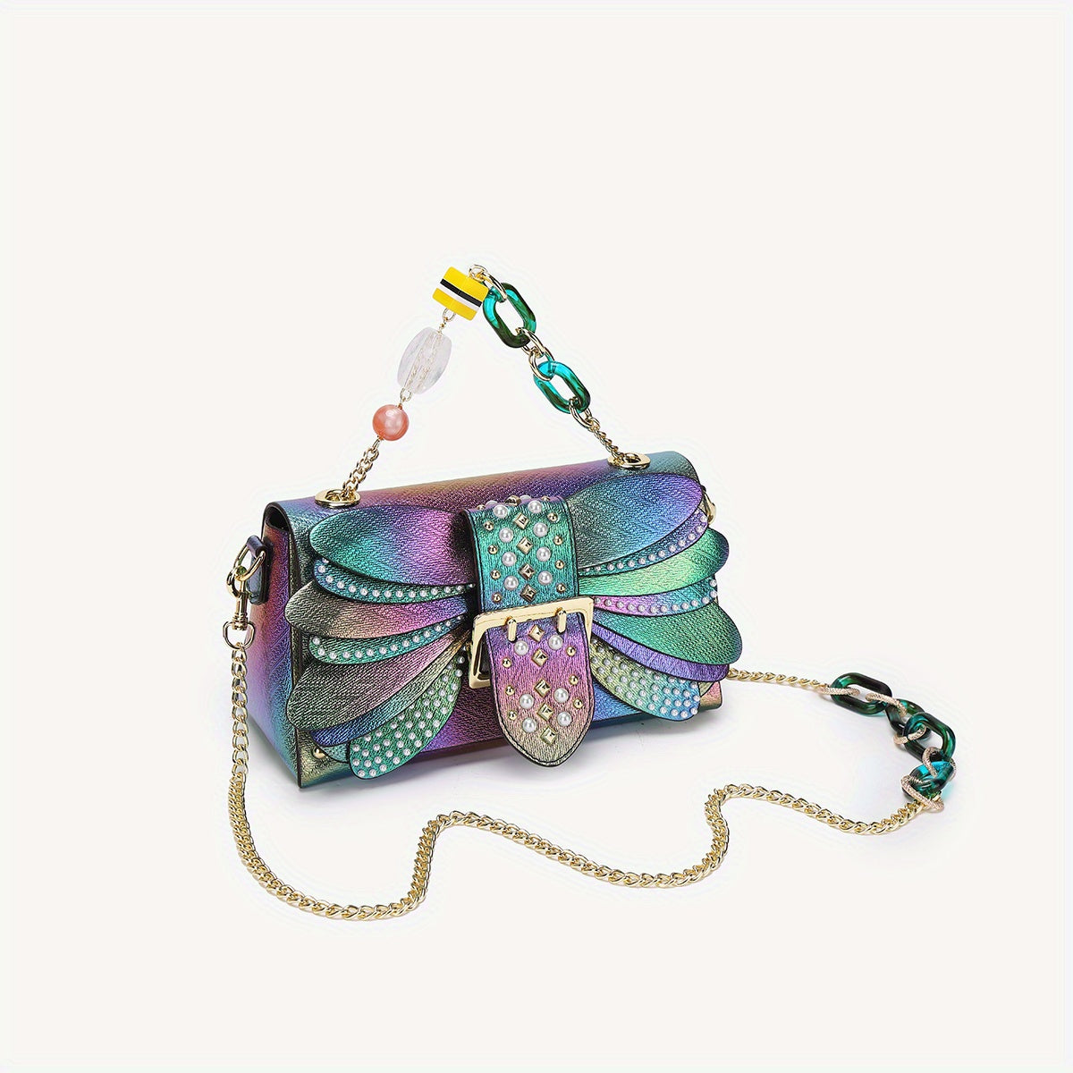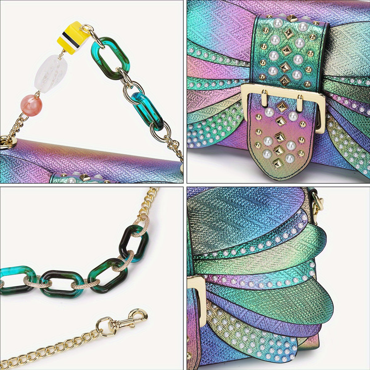 Stylish Women's Crossbody Bag with Beaded Rivet Wings, Magnetic Closure, Removable Strap, Polyester Lined PU Shoulder Purse - Gradient Evening Bag