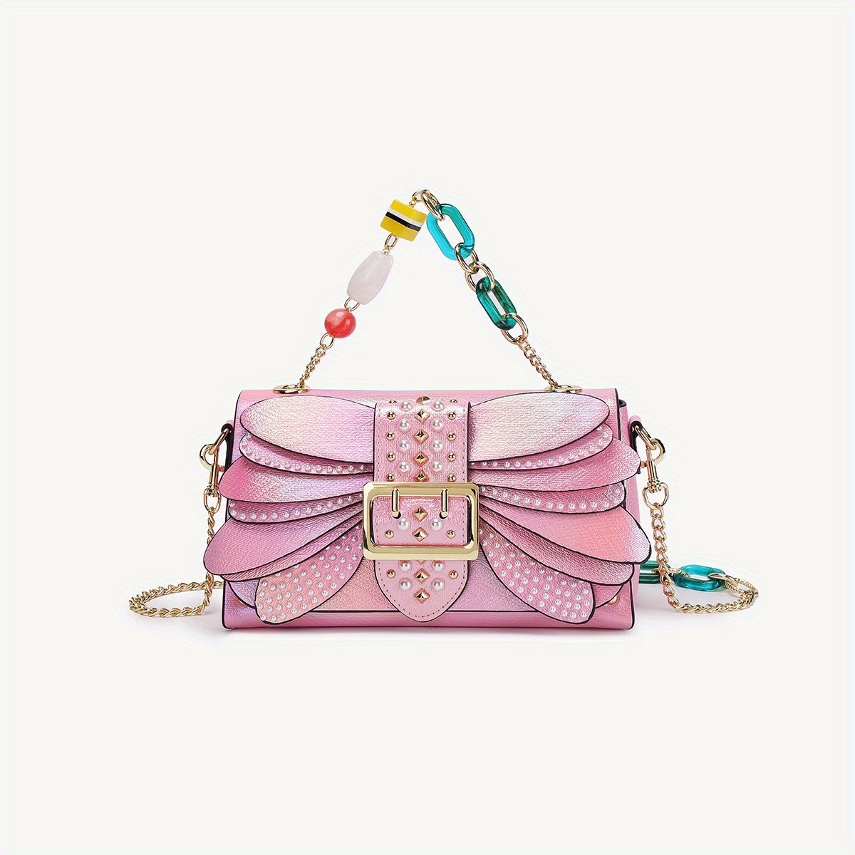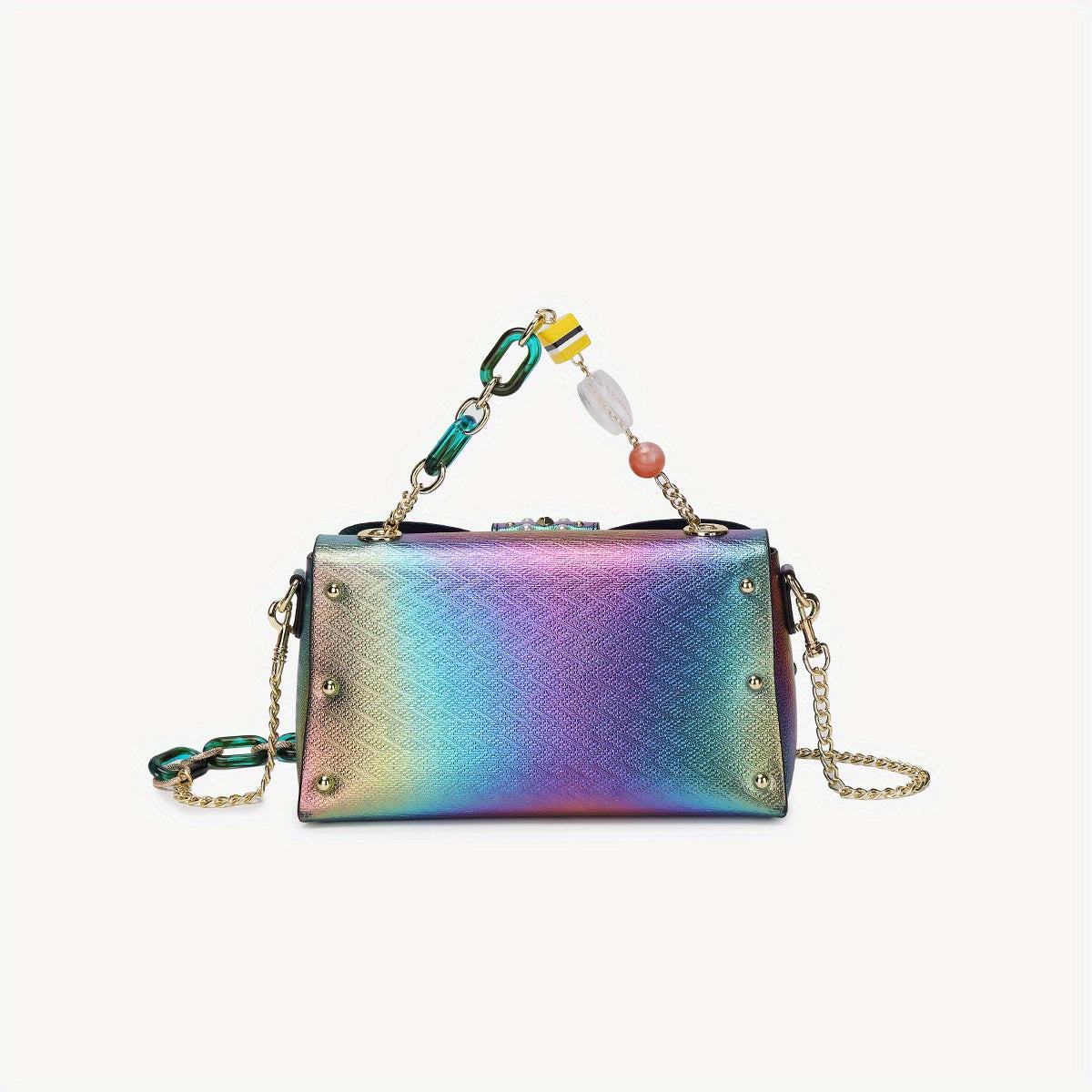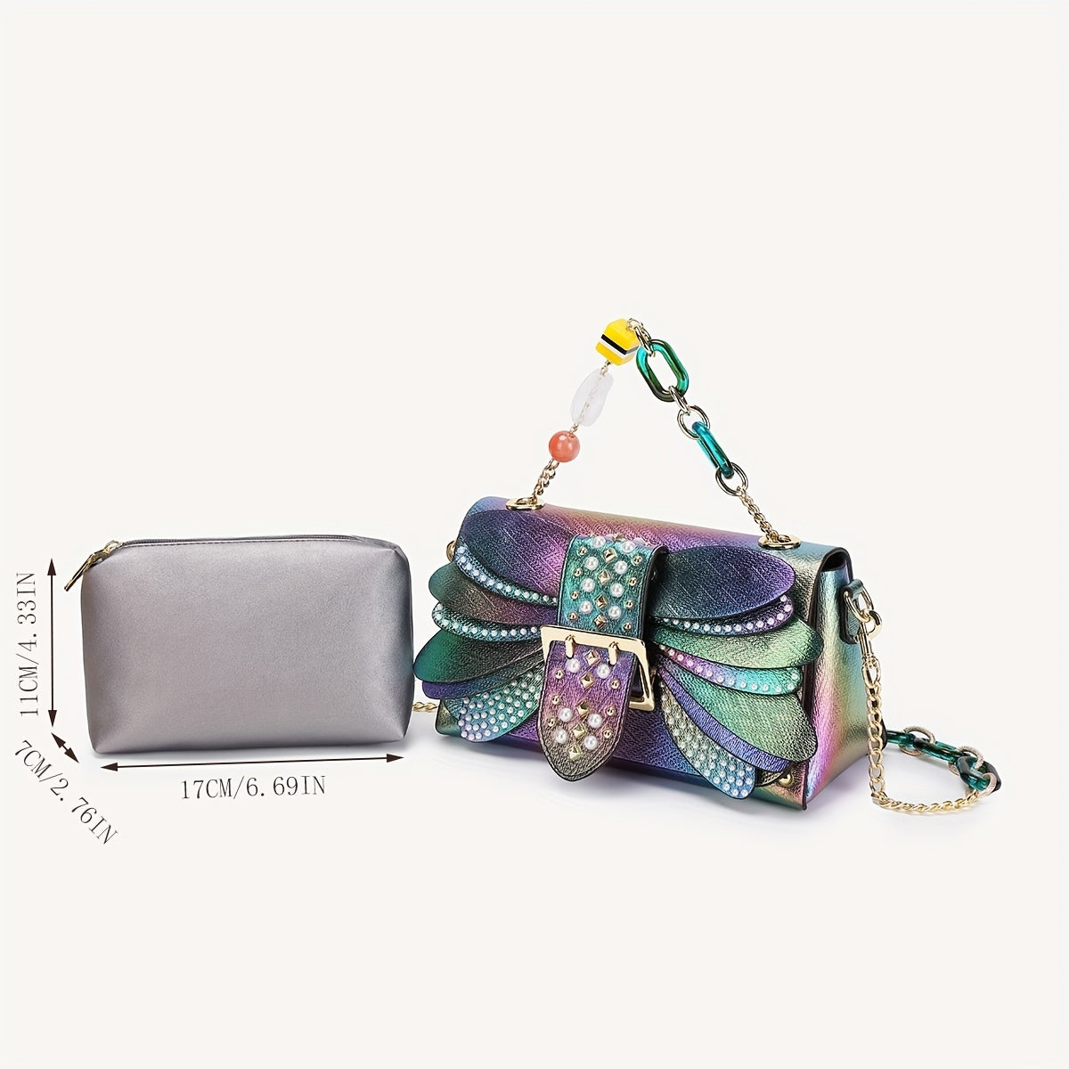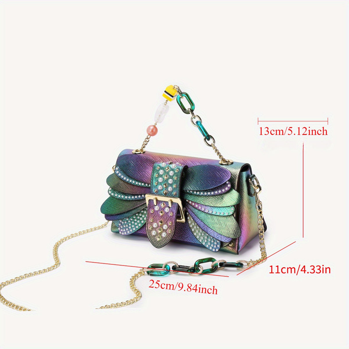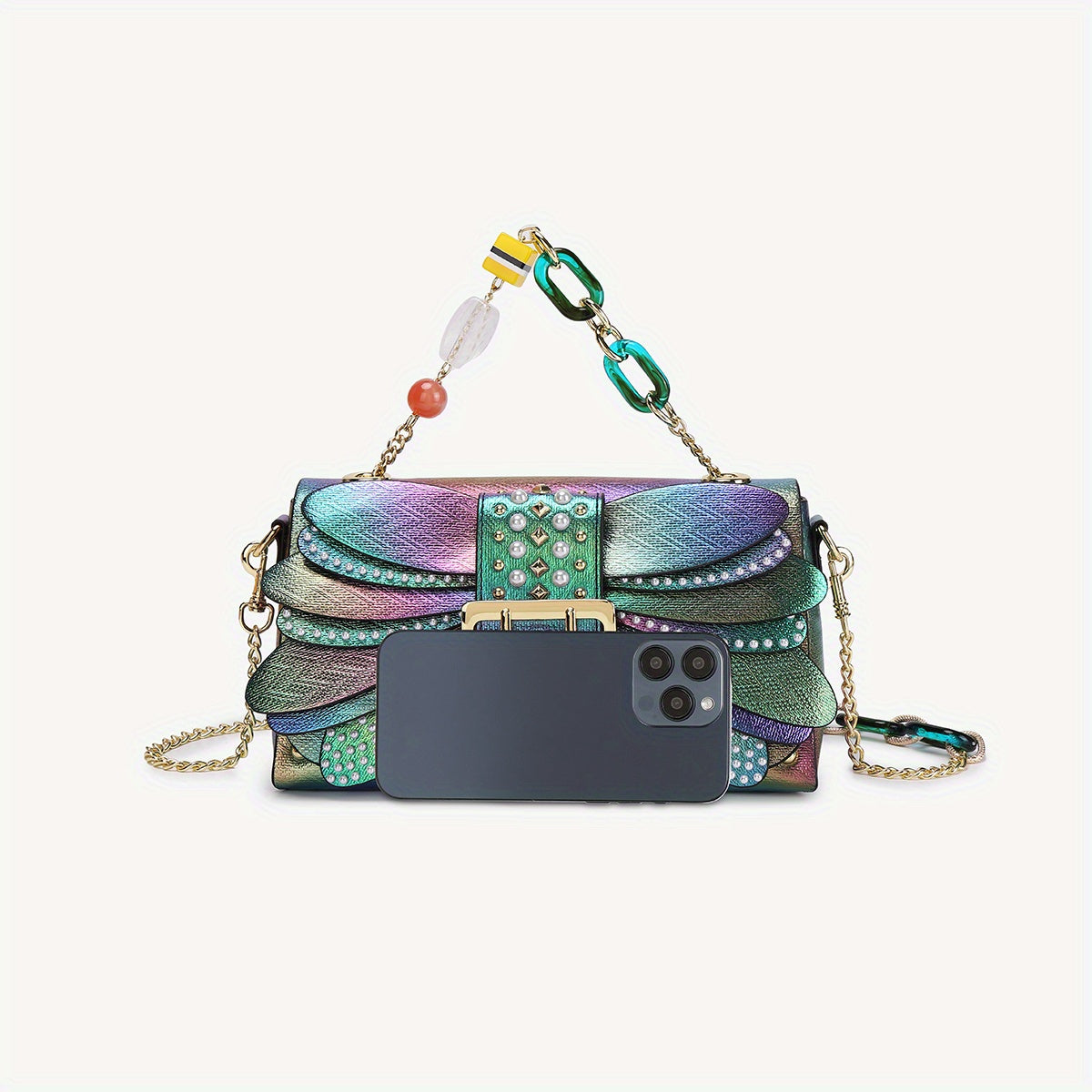Stylish Women's Crossbody Bag with Beaded Rivet Wings, Magnetic Closure, Removable Strap, Polyester Lined PU Shoulder Purse - Gradient Evening Bag