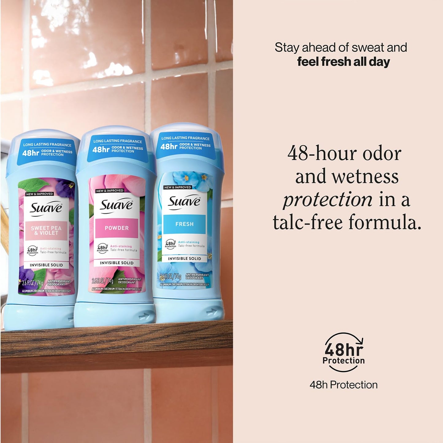 48-HOUR PROTECTION: Discover the power of a Suave Antiperspirant Deodorant, invisible on skin and clothes, for real life, with long-lasting odor and sweat protection.