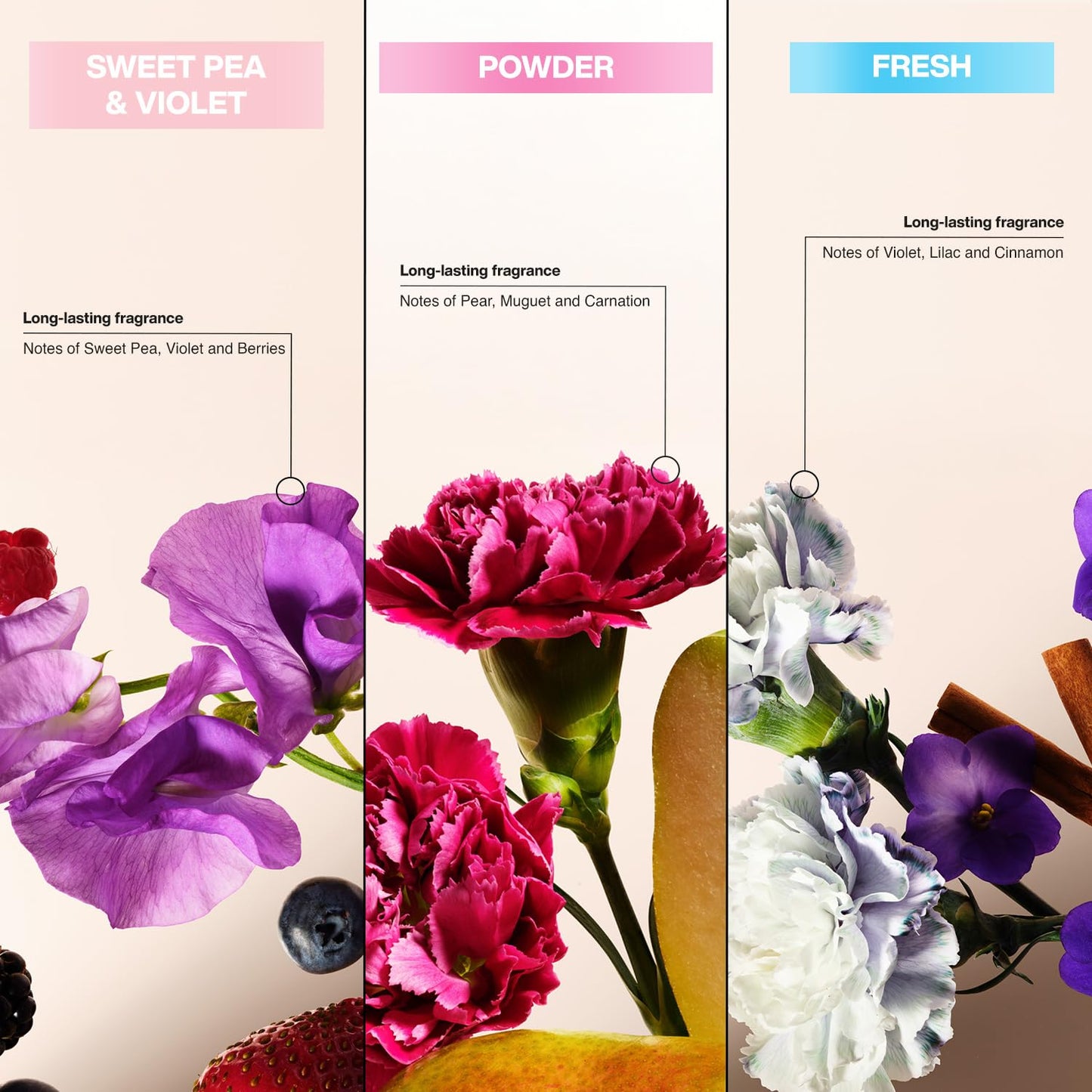 SUAVE DEODORANT VARIETY PACK: Each deodorant stick offers a refreshing escape. All in one bundle, enjoy the fresh, uplifting scents of Powder, Fresh, and Sweet Pea & Violet.