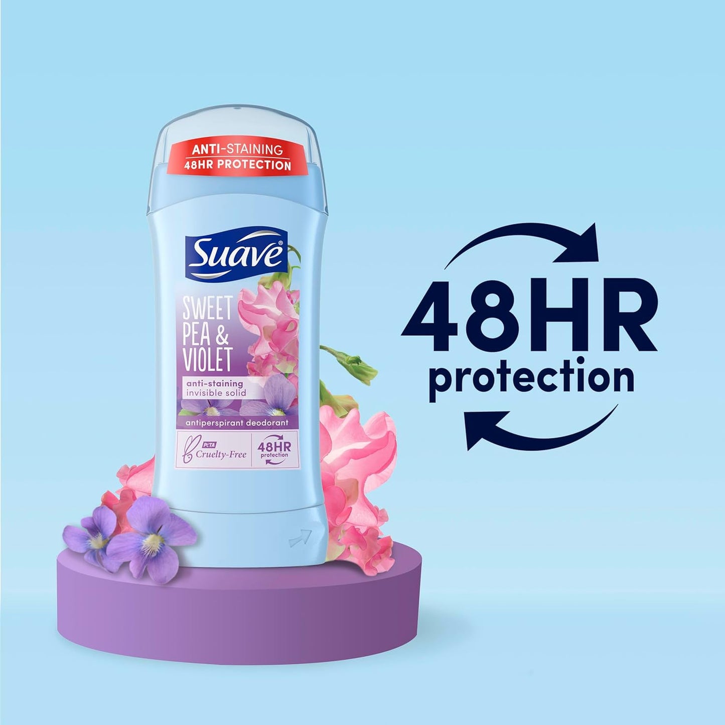 EVERYDAY DEODORANT STICK: Feel confident all day long with the Suave antiperspirant deodorant sticks. Sweet Pea & Violet and Wild Cherry Blossom each leave a vibrant, floral scent.