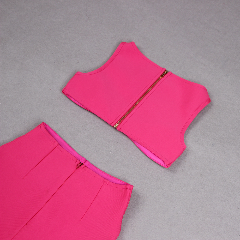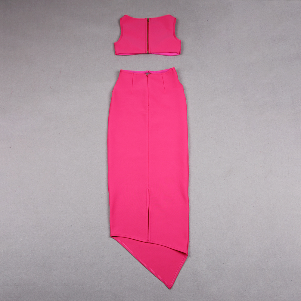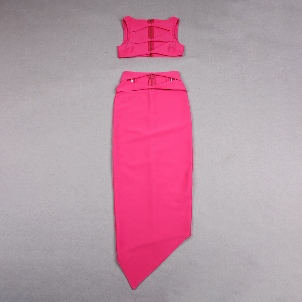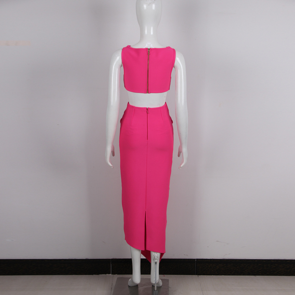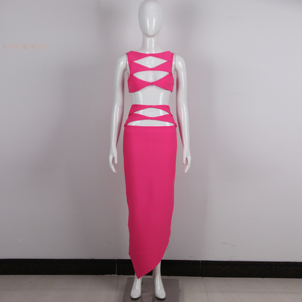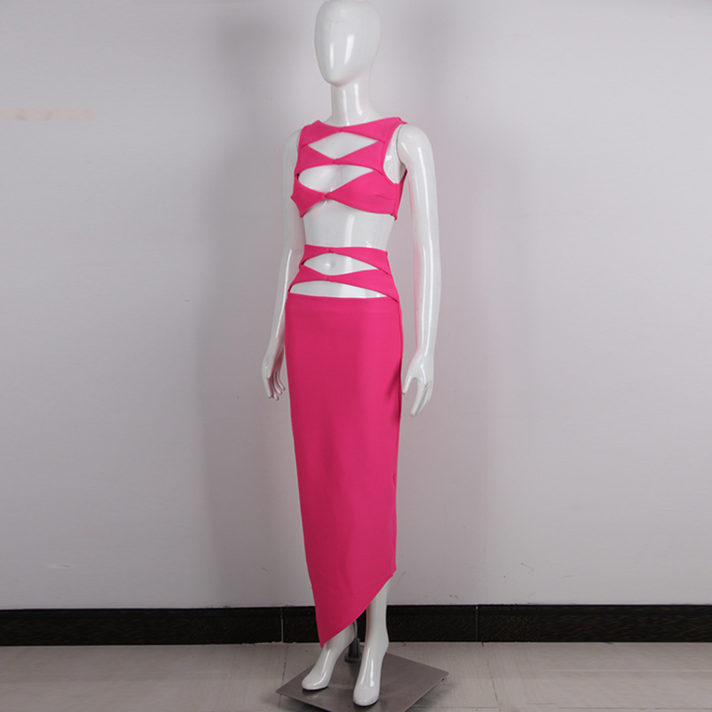 Summer Autumn Women Clothes Sexy Cutout Tight High Waist Sheath Bandage Dress Two Piece Set