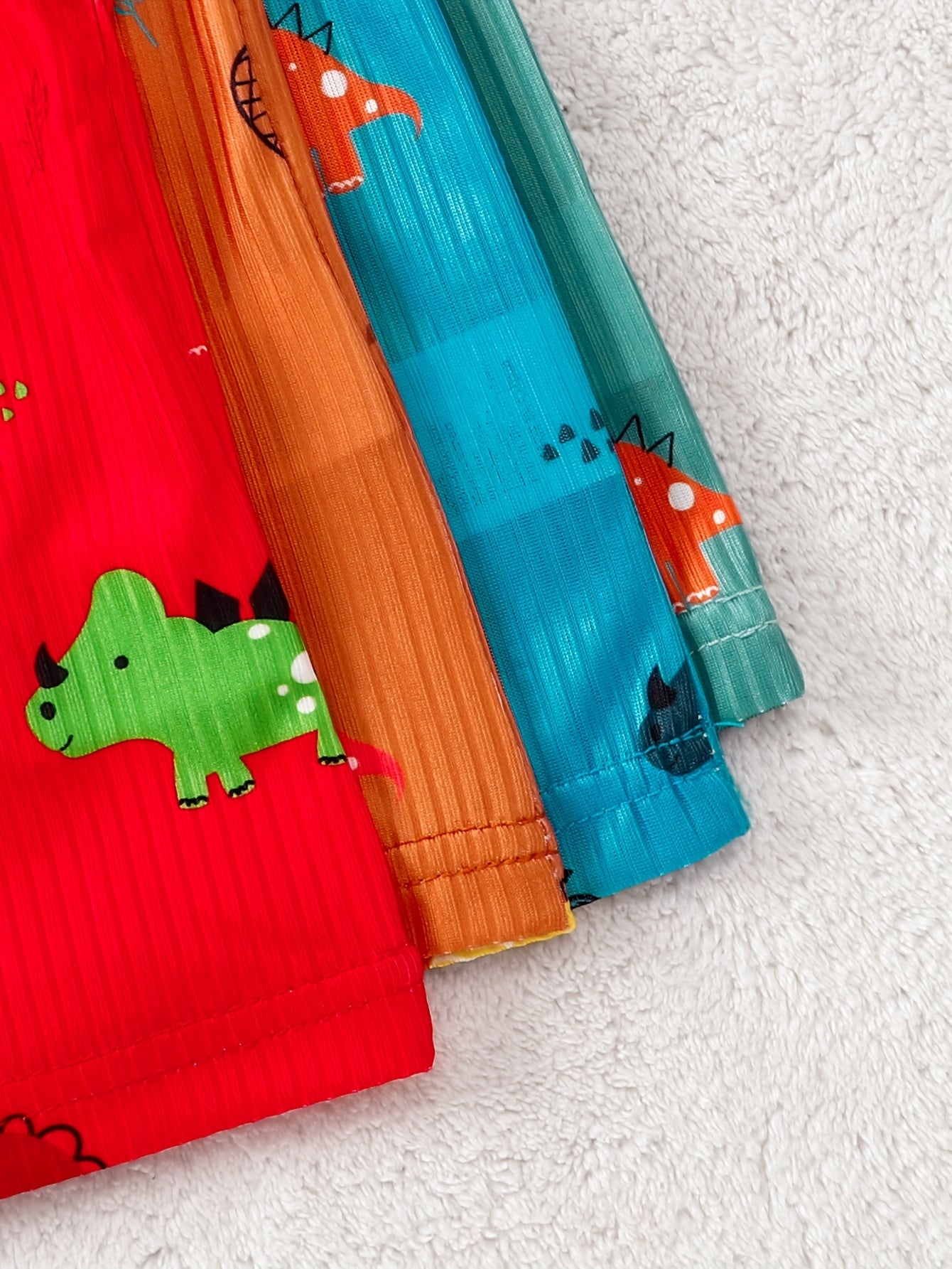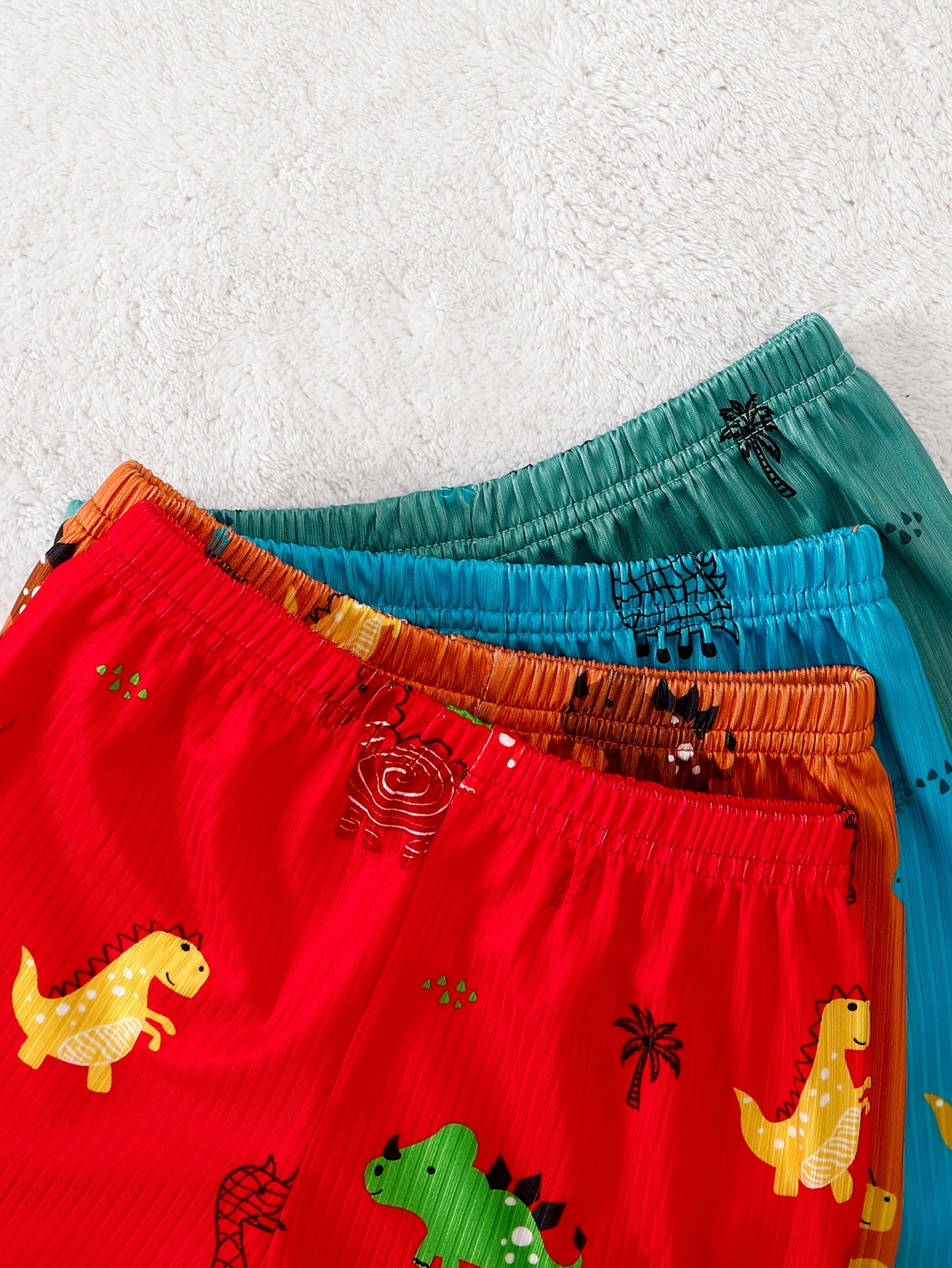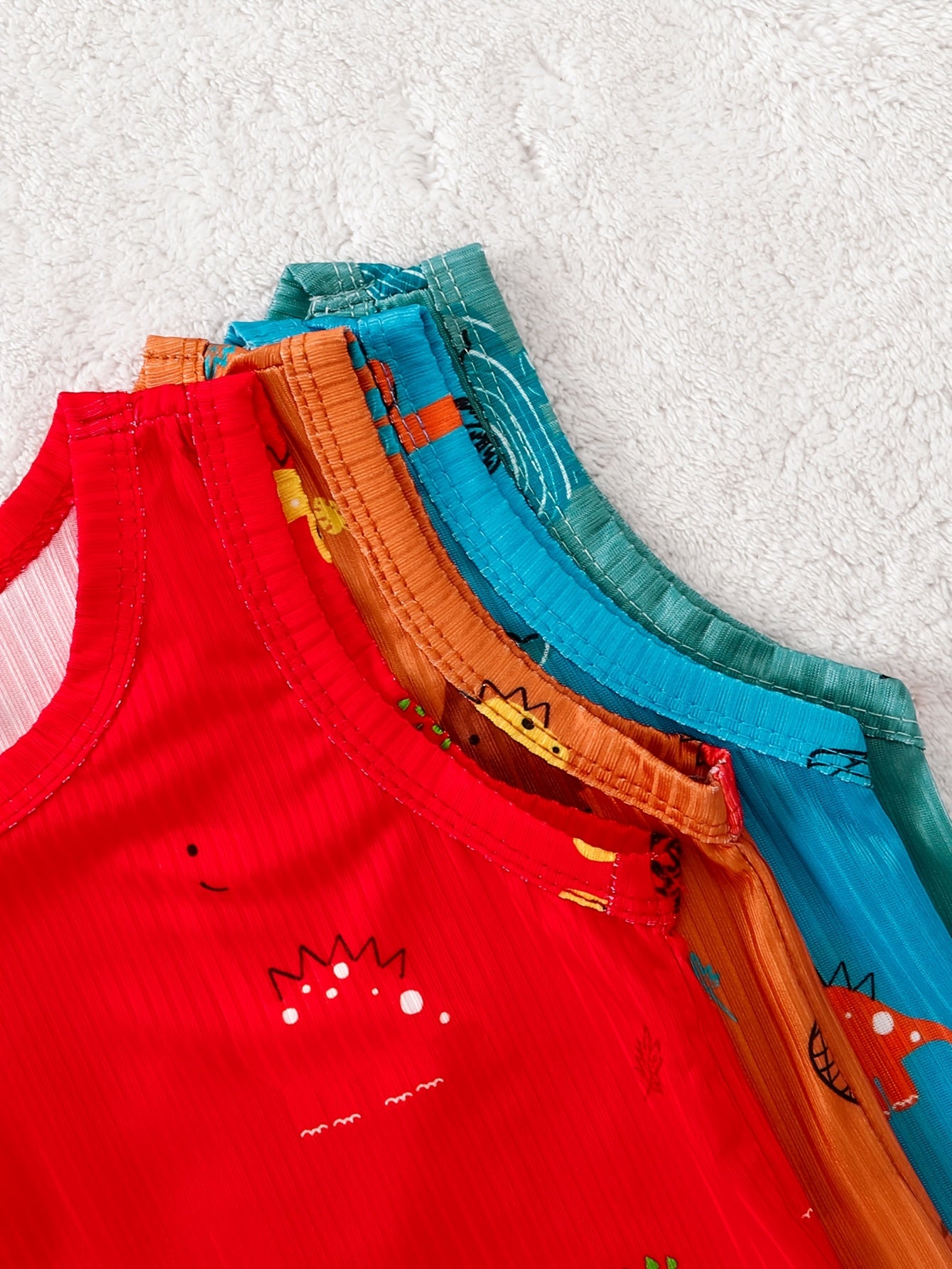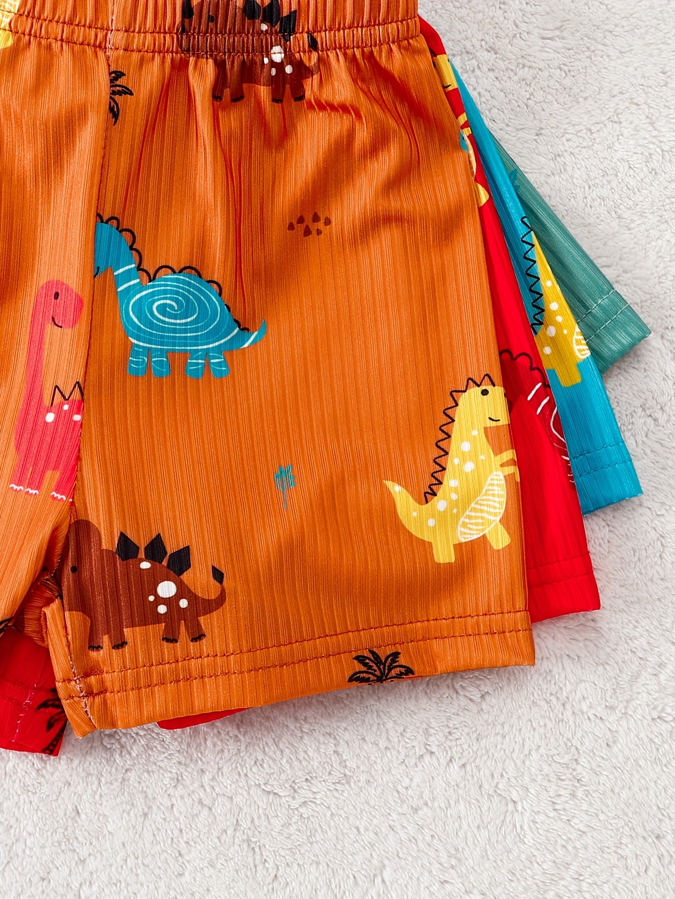 Summer Boys' Dinosaur Print Comfortable Ribbed Vest and Casual Shorts Set, Perfect for Outdoor Activities, Perfect for Outdoor