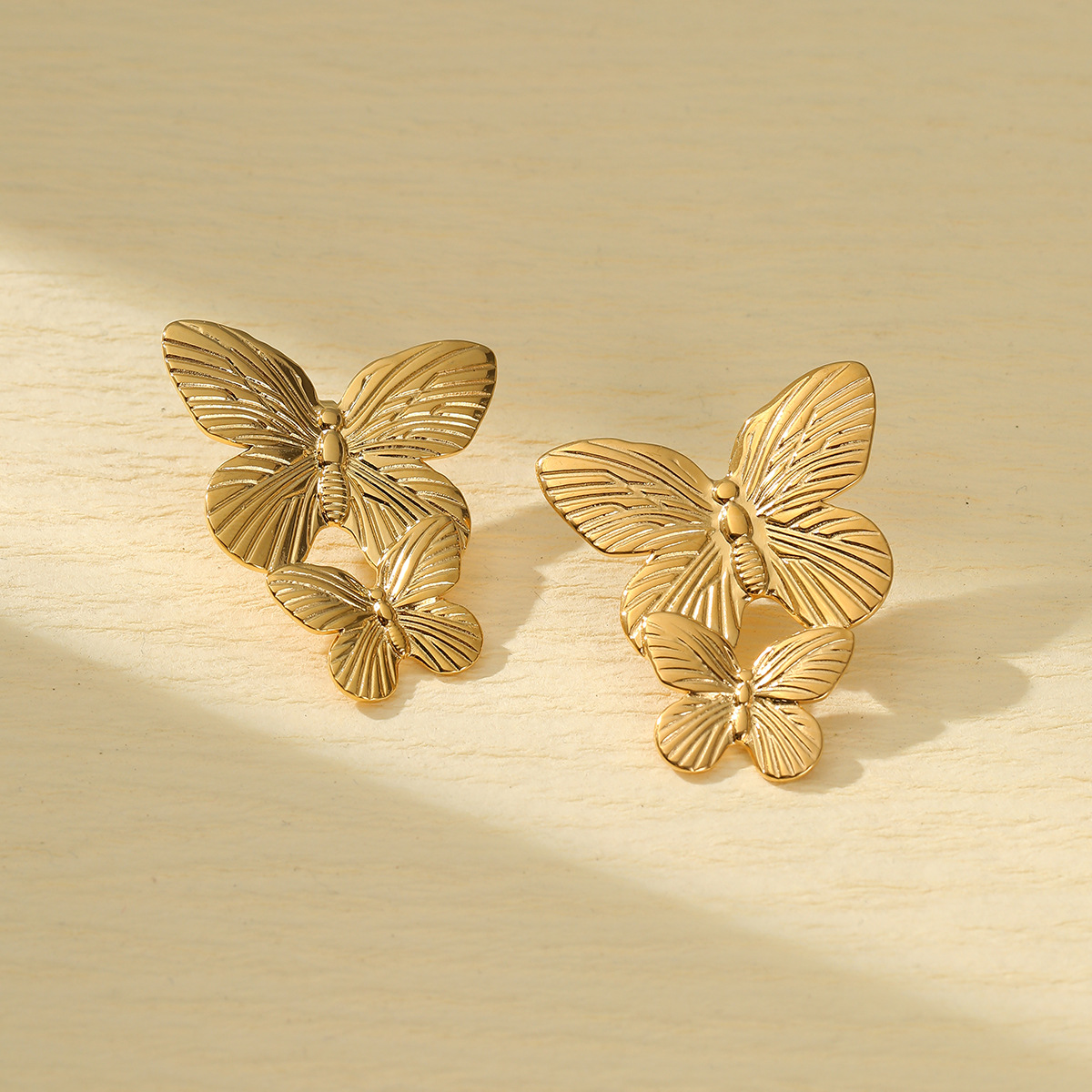 Summer Butterfly Titanium Steel Earrings for Women Arrival Light Luxury All Match Non Fading Floral Earrings for Women