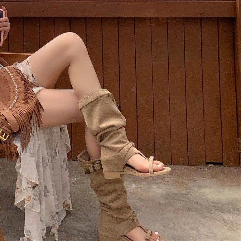 Summer cool boots Women's new style exposed toe mid length tube cool boots thick heel fashion cool boots low heel