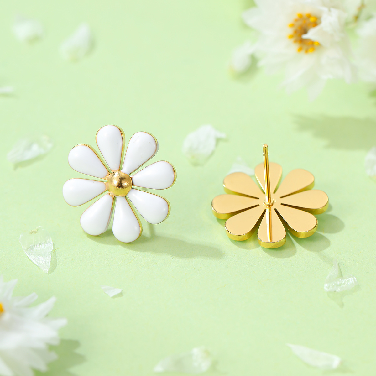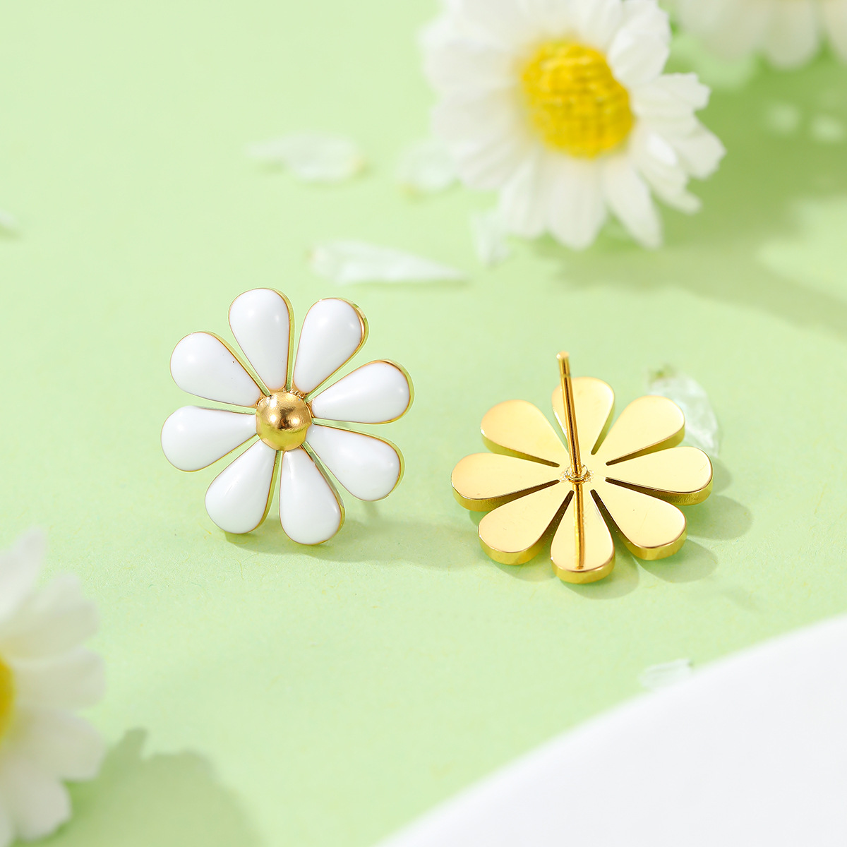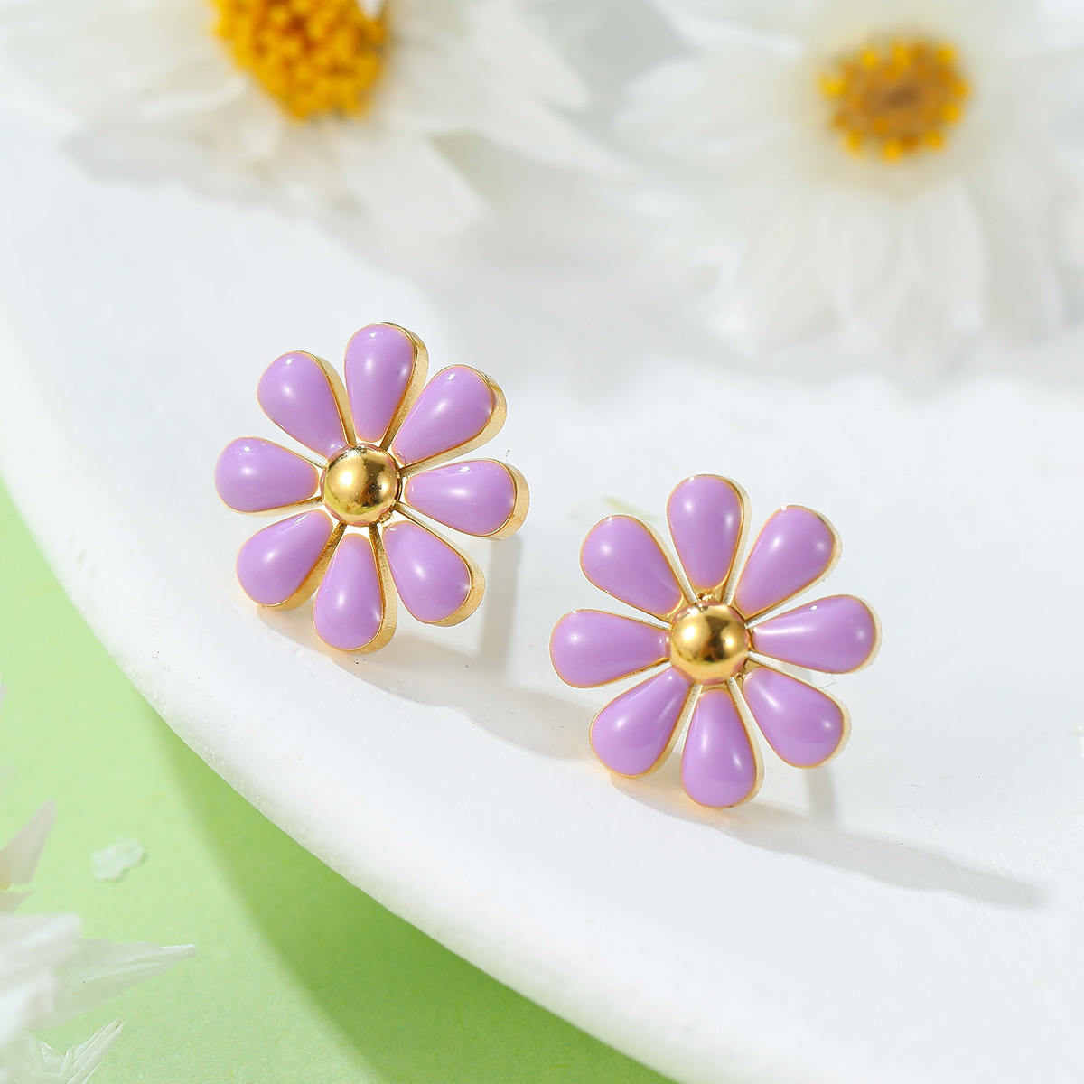 Summer Fresh Little Daisy Drop Oil Titanium Steel Earrings Women Stainless Steel Studs Accessories
