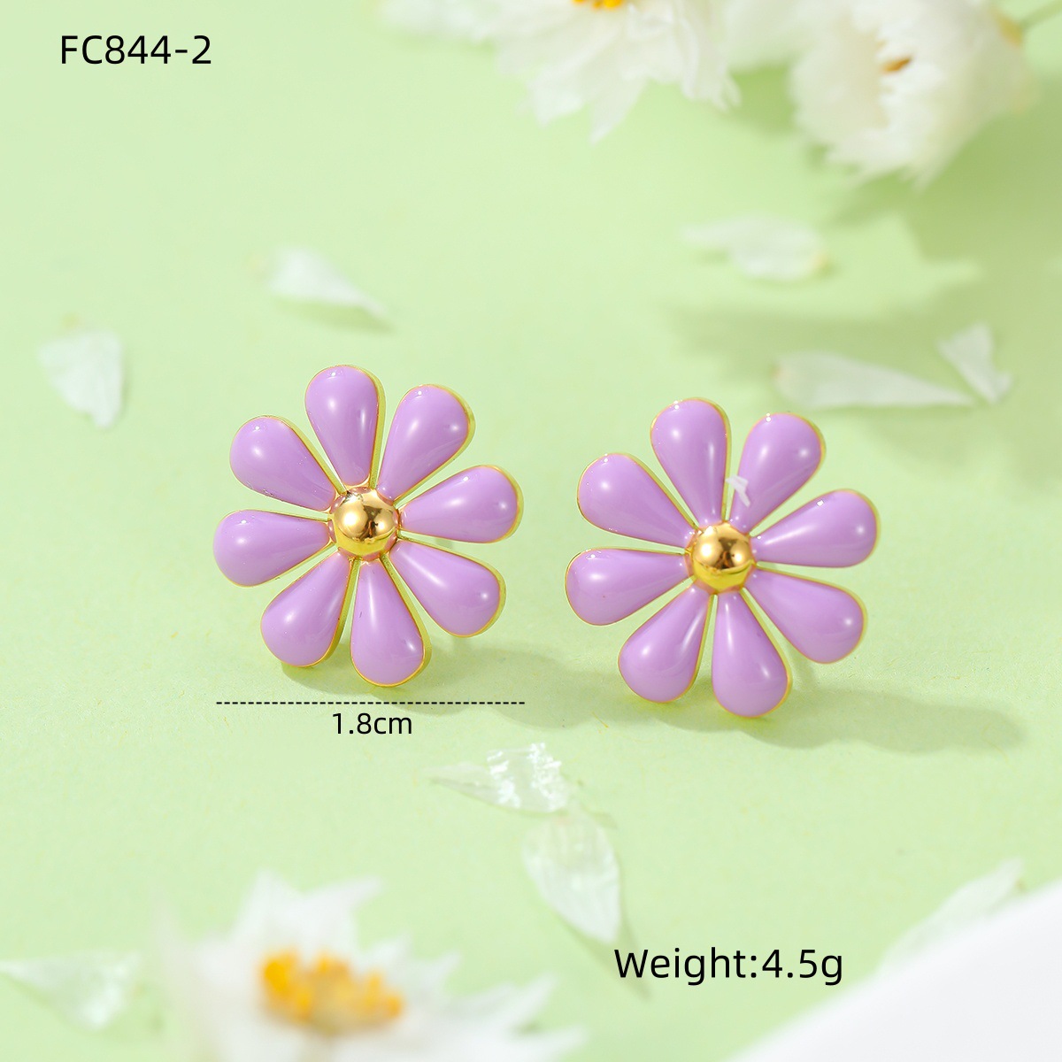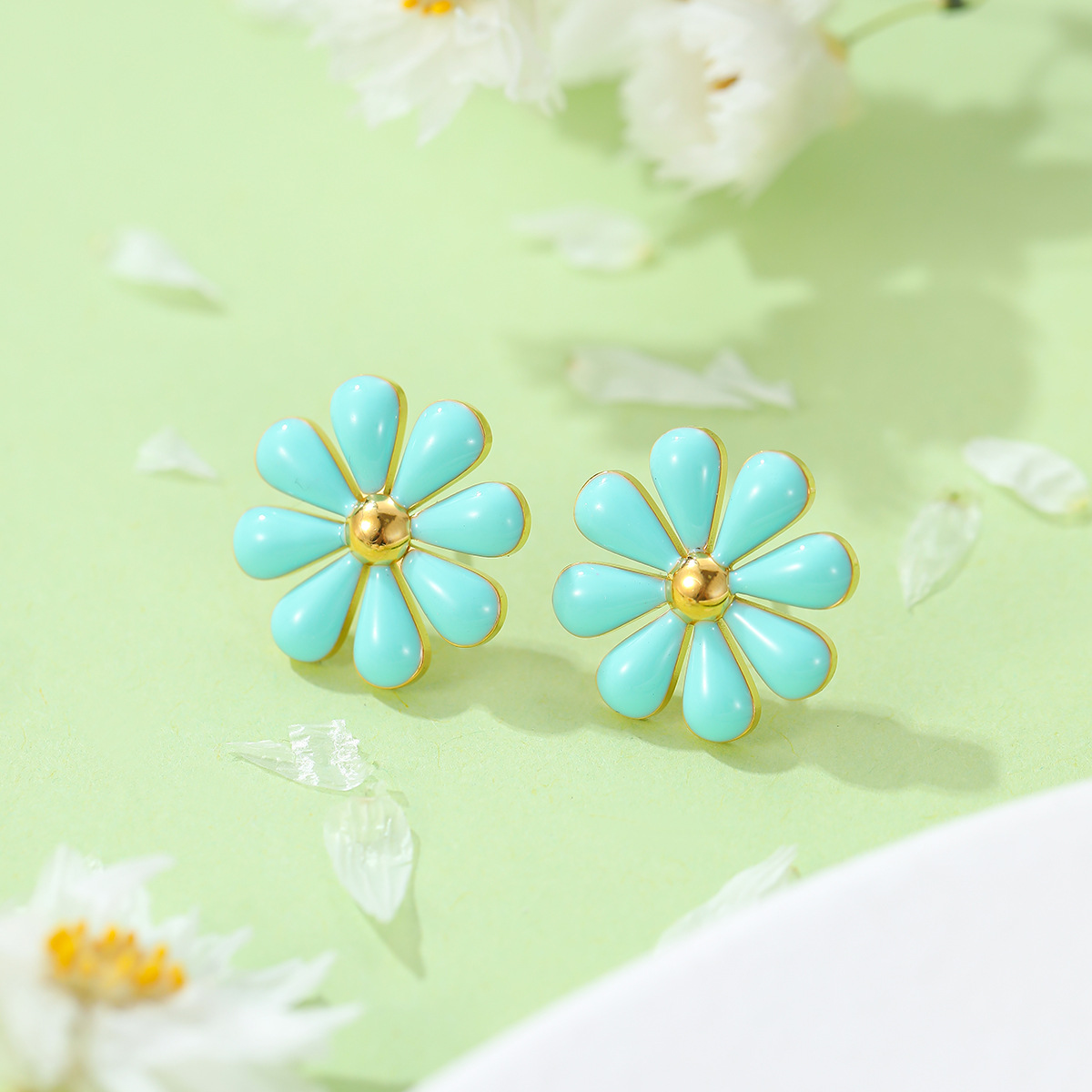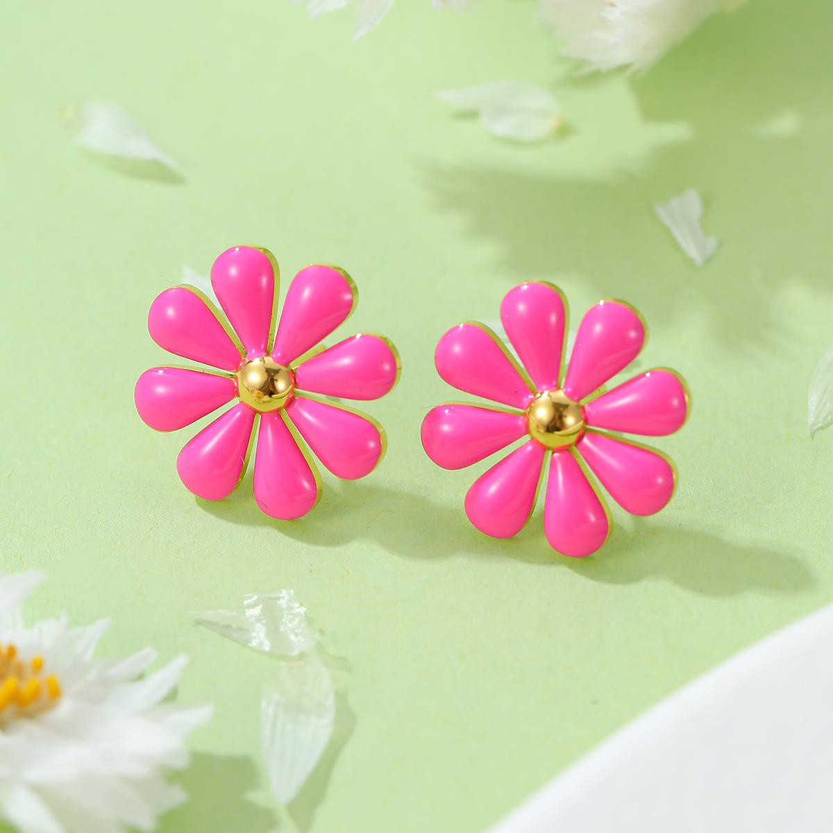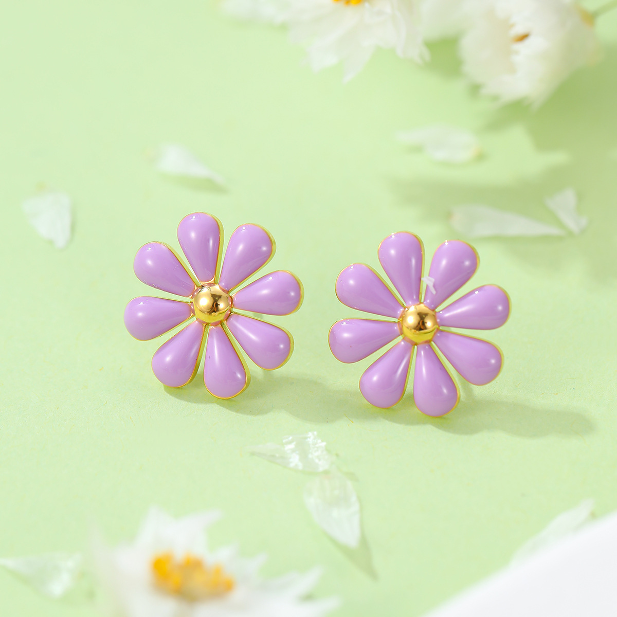 Summer Fresh Little Daisy Drop Oil Titanium Steel Earrings Women Stainless Steel Studs Accessories