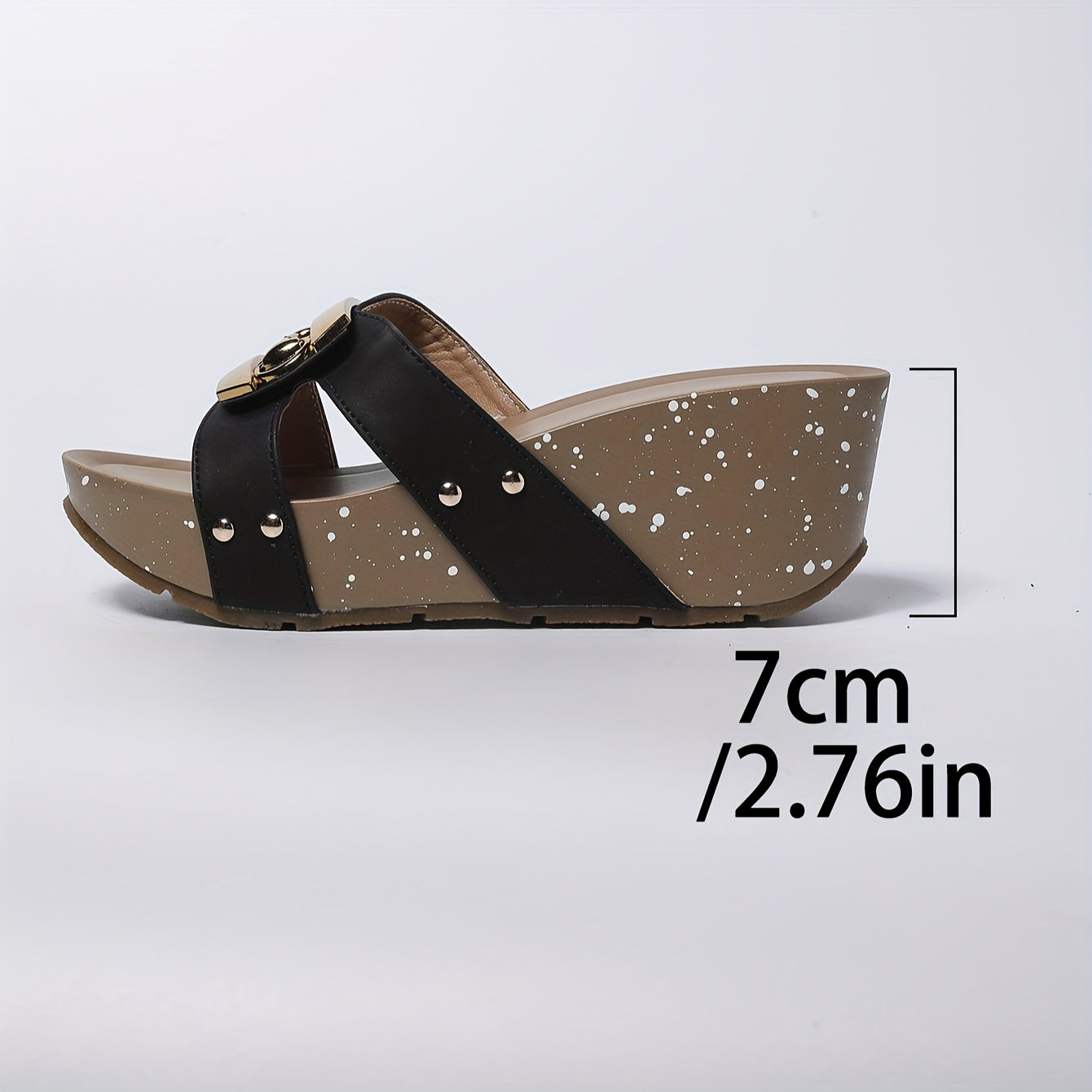 [Summer Sandals] High Heel Women's Summer Platform Sandals | Decorative Buckle Strap, Thick Cushioned TPR Sole, Breathable Faux Cover, Casual Comfort, Durable Construction, Stylish Footwear