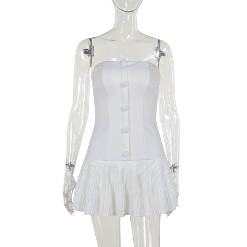 Summer Sexy Sexy Slim Tube Top Pleated Hem Dress Women