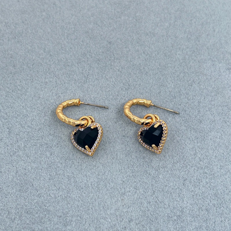 Summer Sweet Loving Heart Micro Inlaid Zircon All Match Earrings Chain Clavicle Chain Women