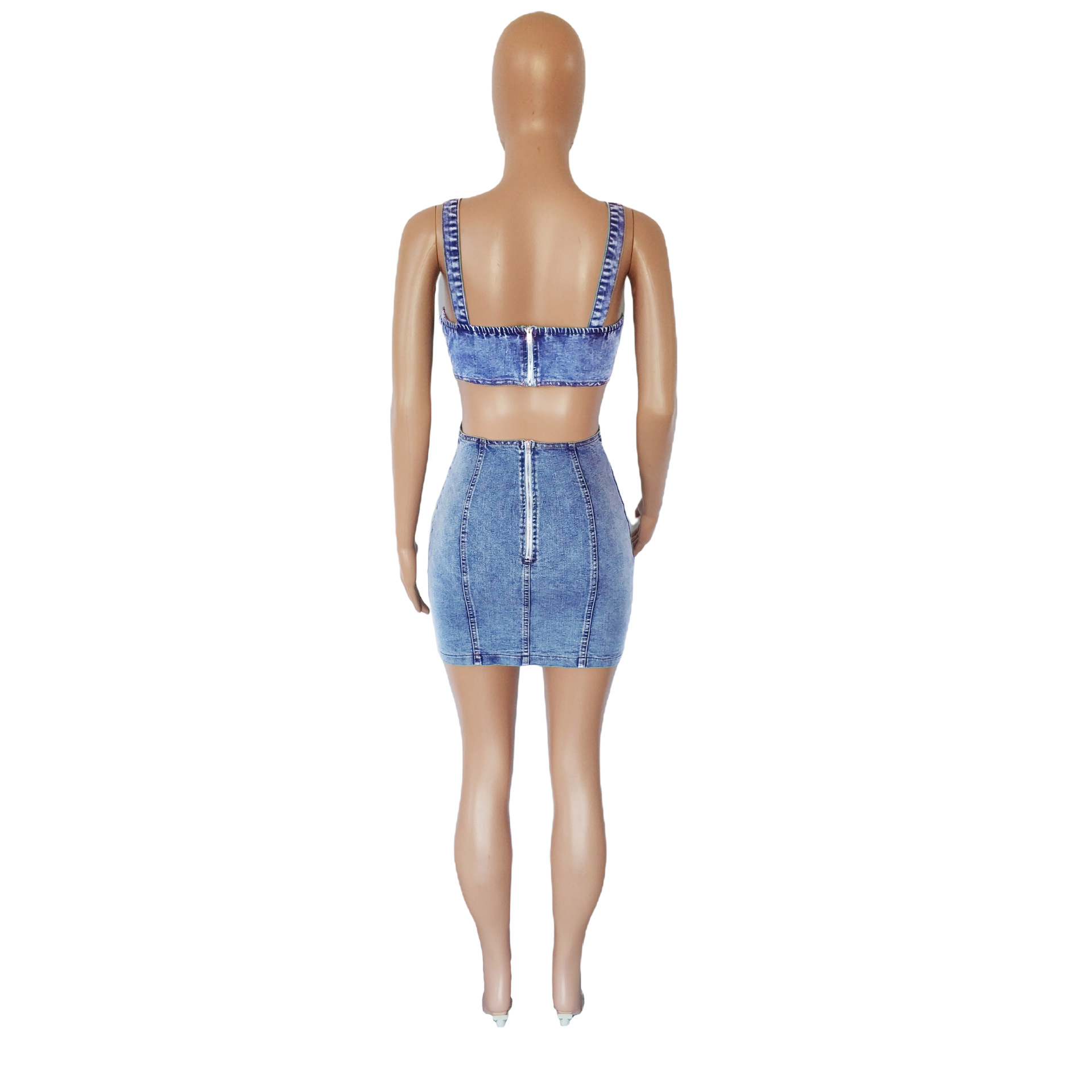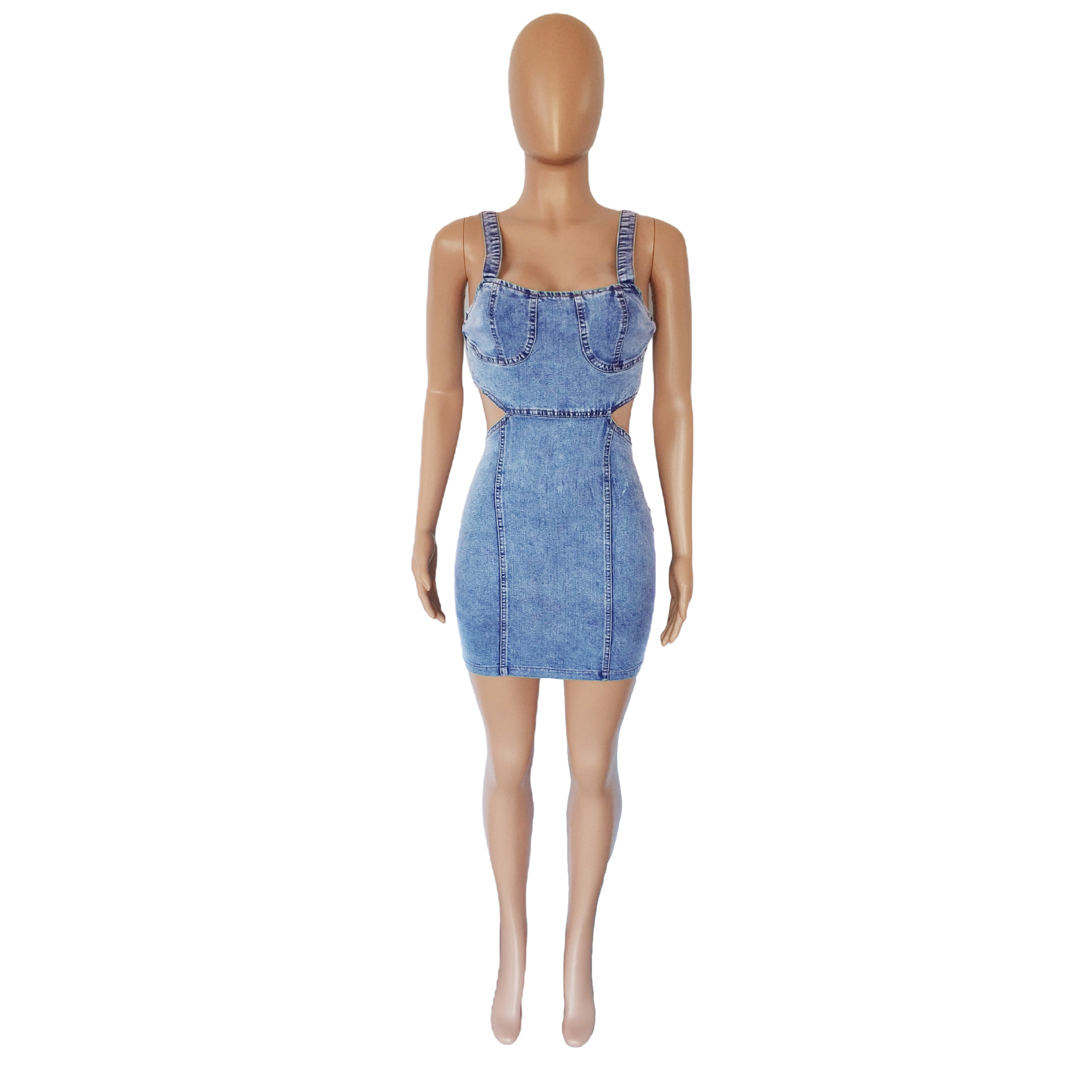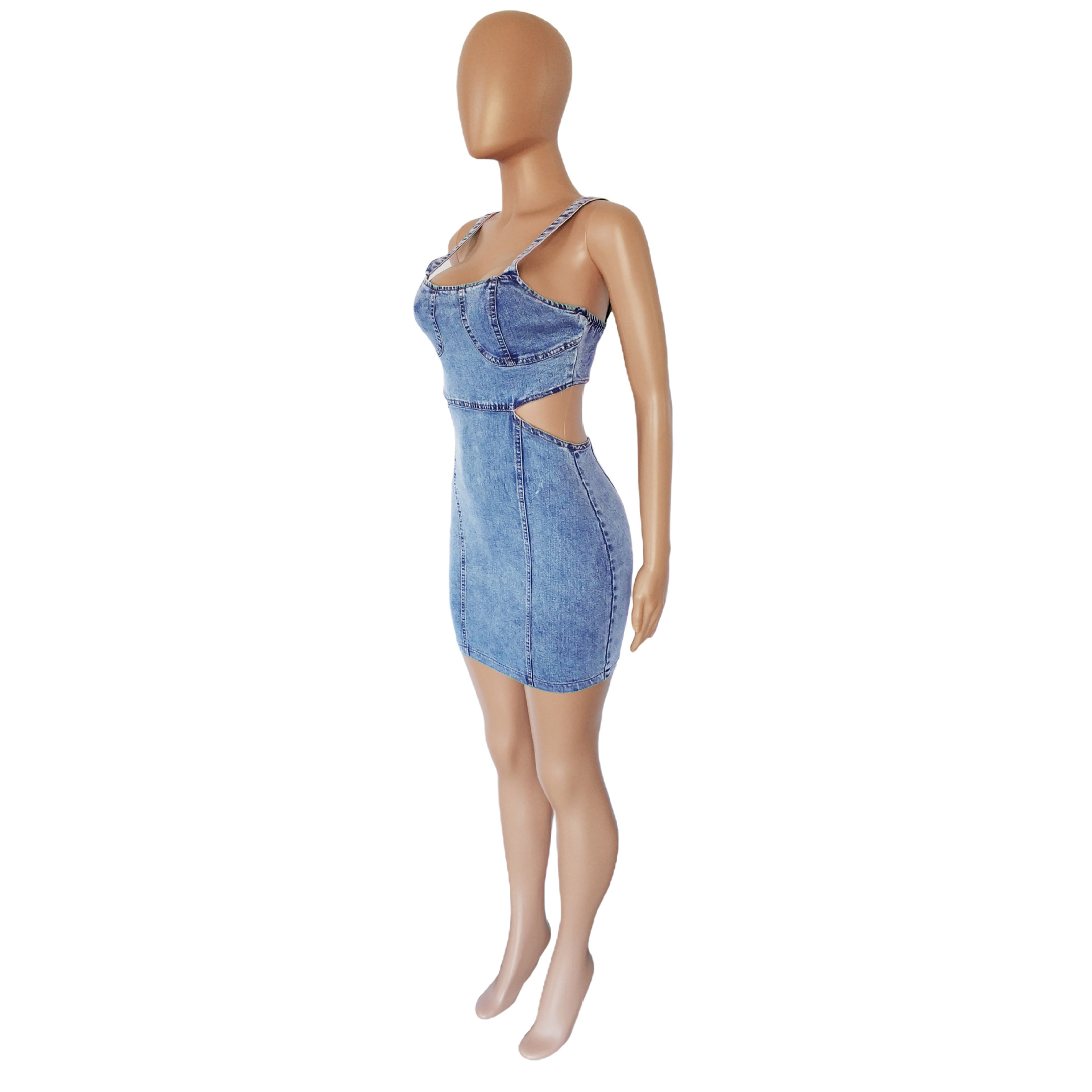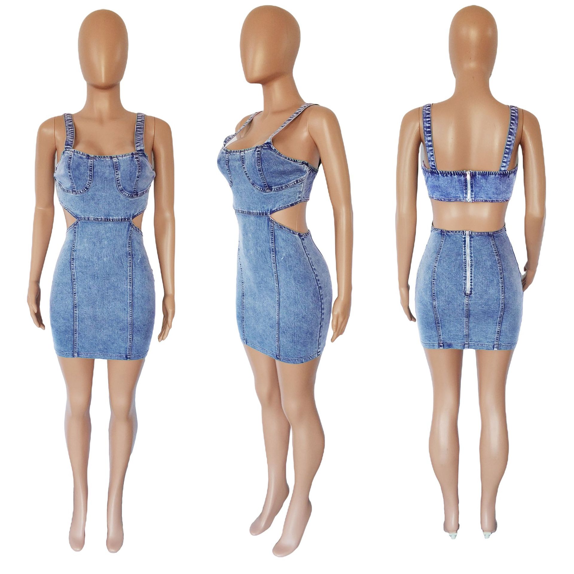 Summer Women Clothing Sexy Denim Sling Backless Dress Denim Dress