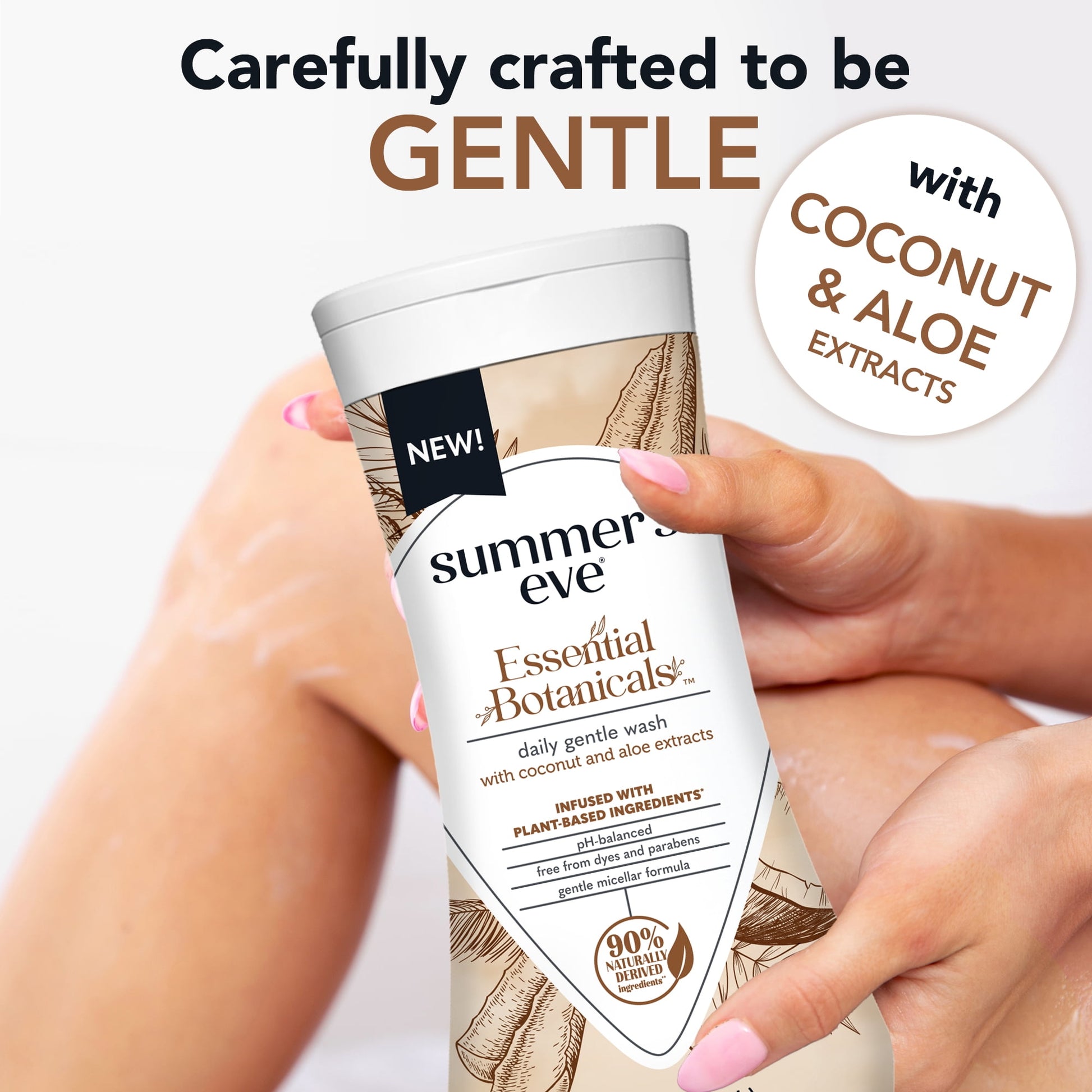 - Contains 1 bottle of Summer's Eve Essential Botanicals Gentle Coconut Aloe Wash, 12 fl oz
