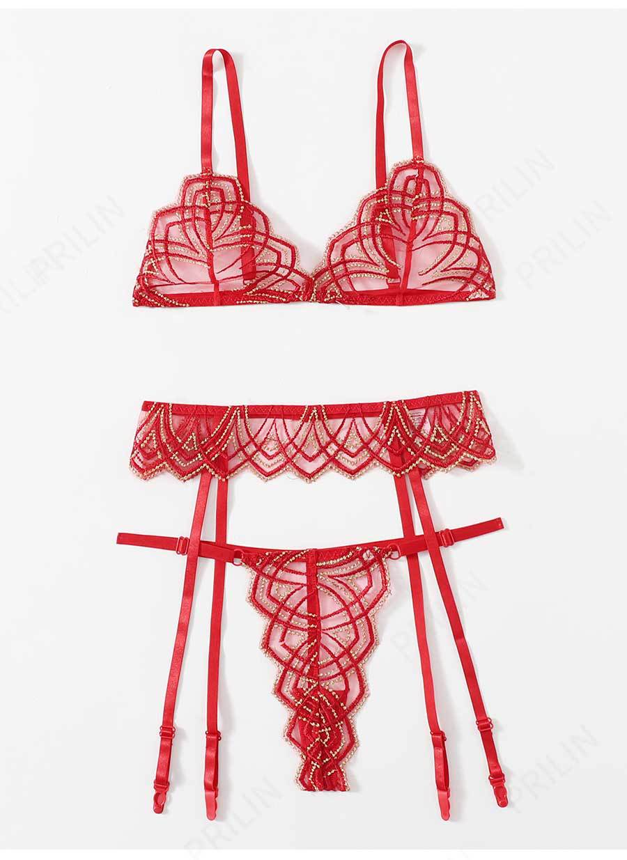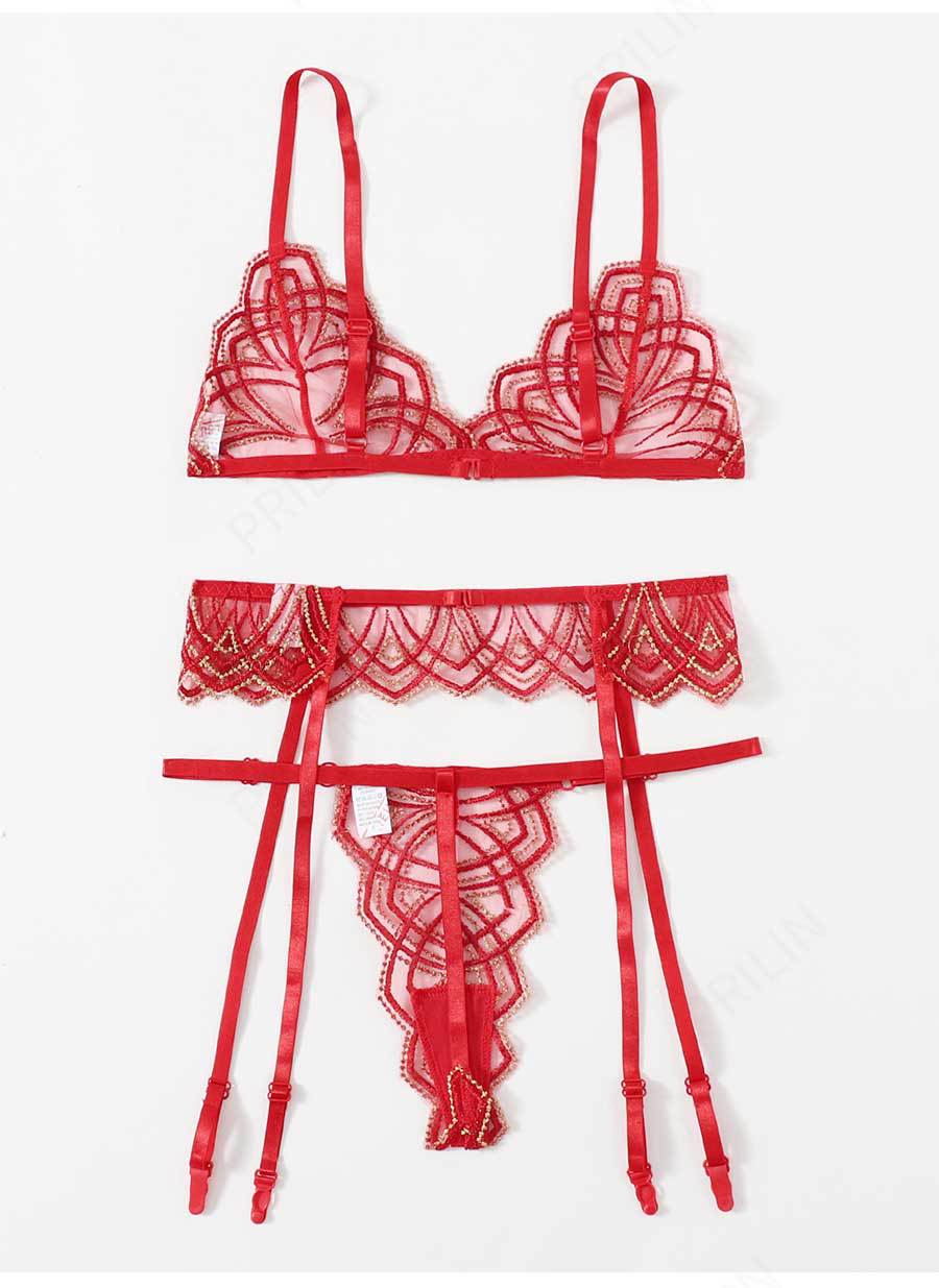 Supply September New Sexy Fashion Lace Transparent Three-Piece Set Sexy Suit