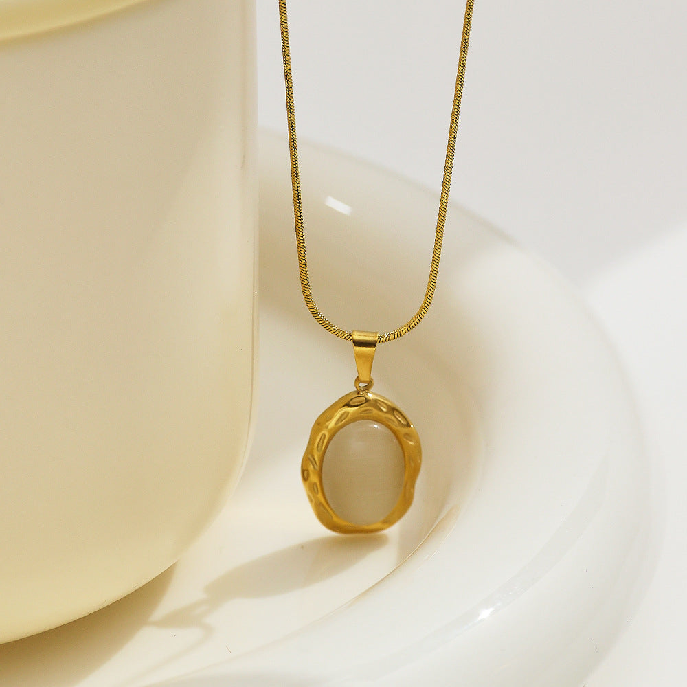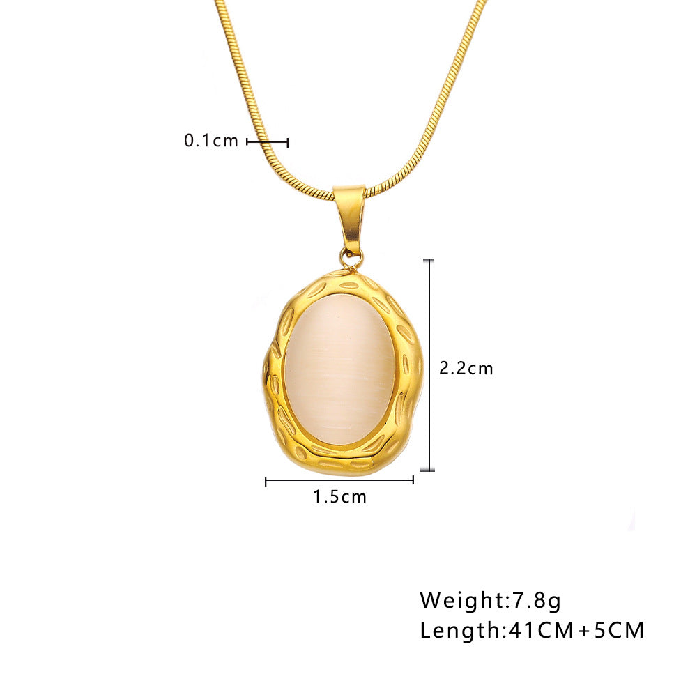 Sweater Chain High Grade Clavicle Chain Retro Cymophanite Oval Embellished Titanium Steel Necklace Accessories