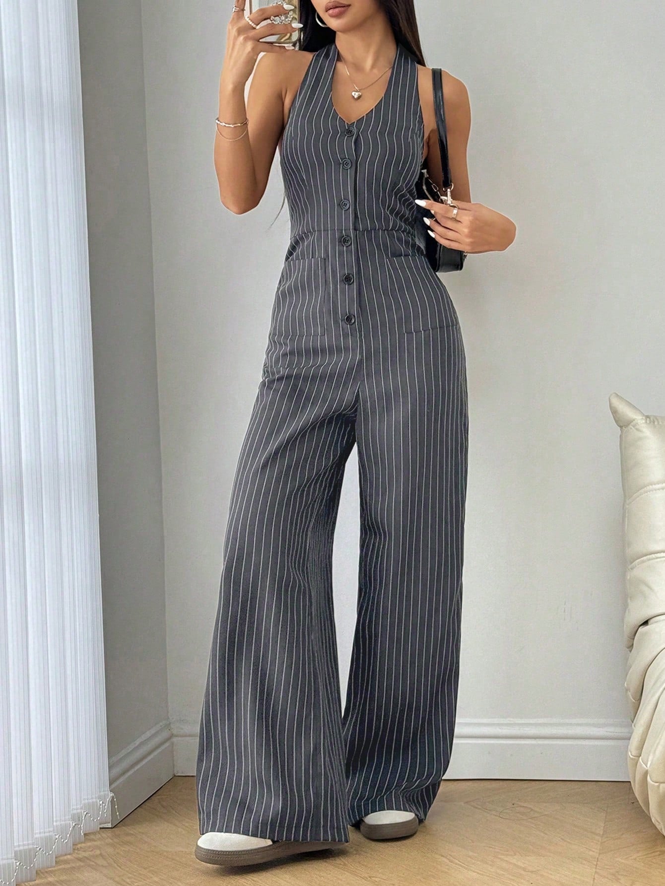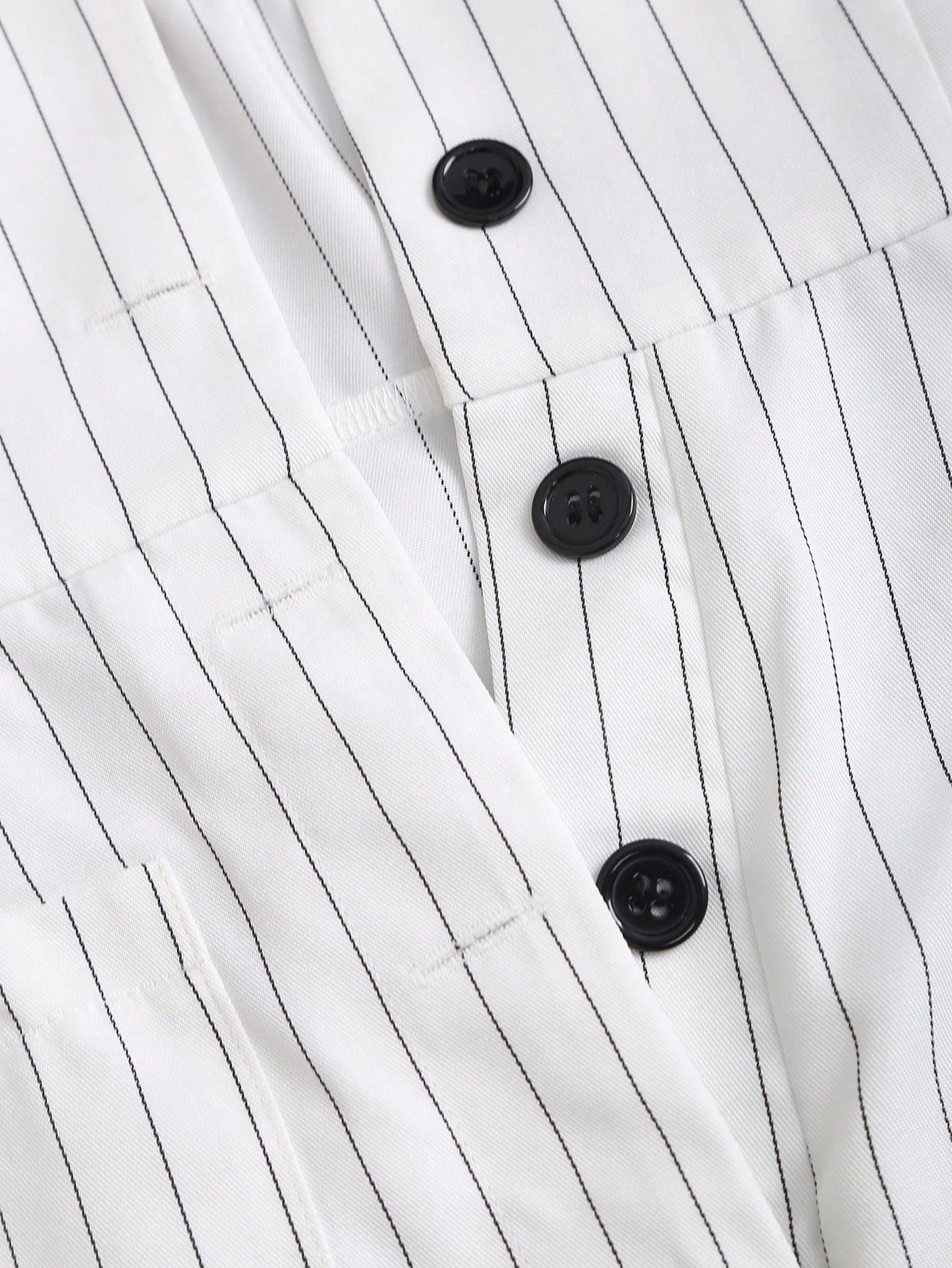 Sweetra Striped Casual Romper, Minimalist & Fashionable, Suitable For Summer