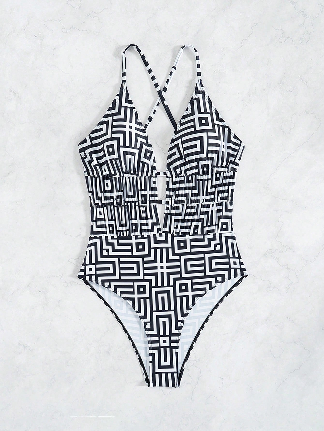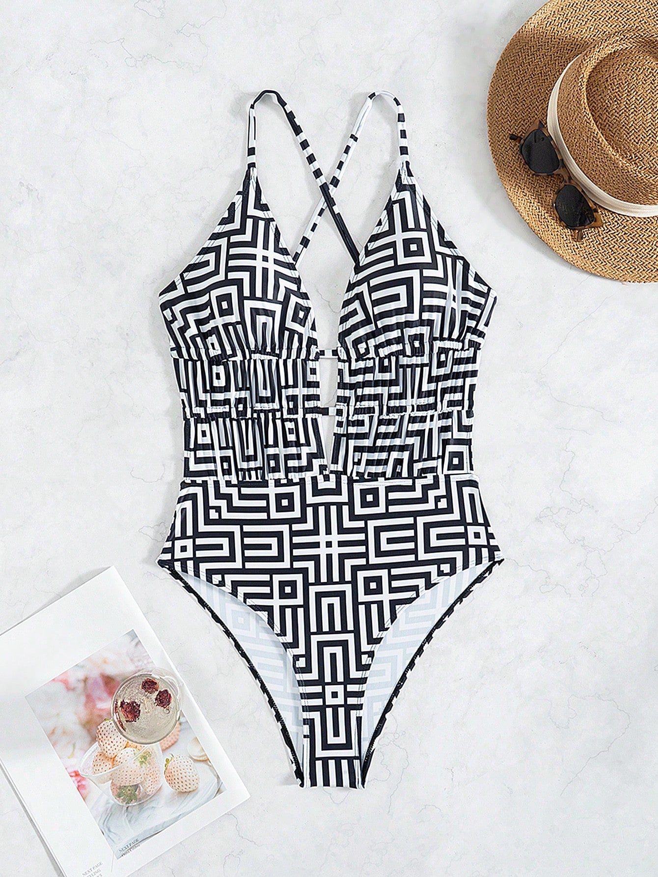 Swim Chiccia 1 Pc Women's Random Printed Minimalist Fashion Beachwear Jumpsuit Summer