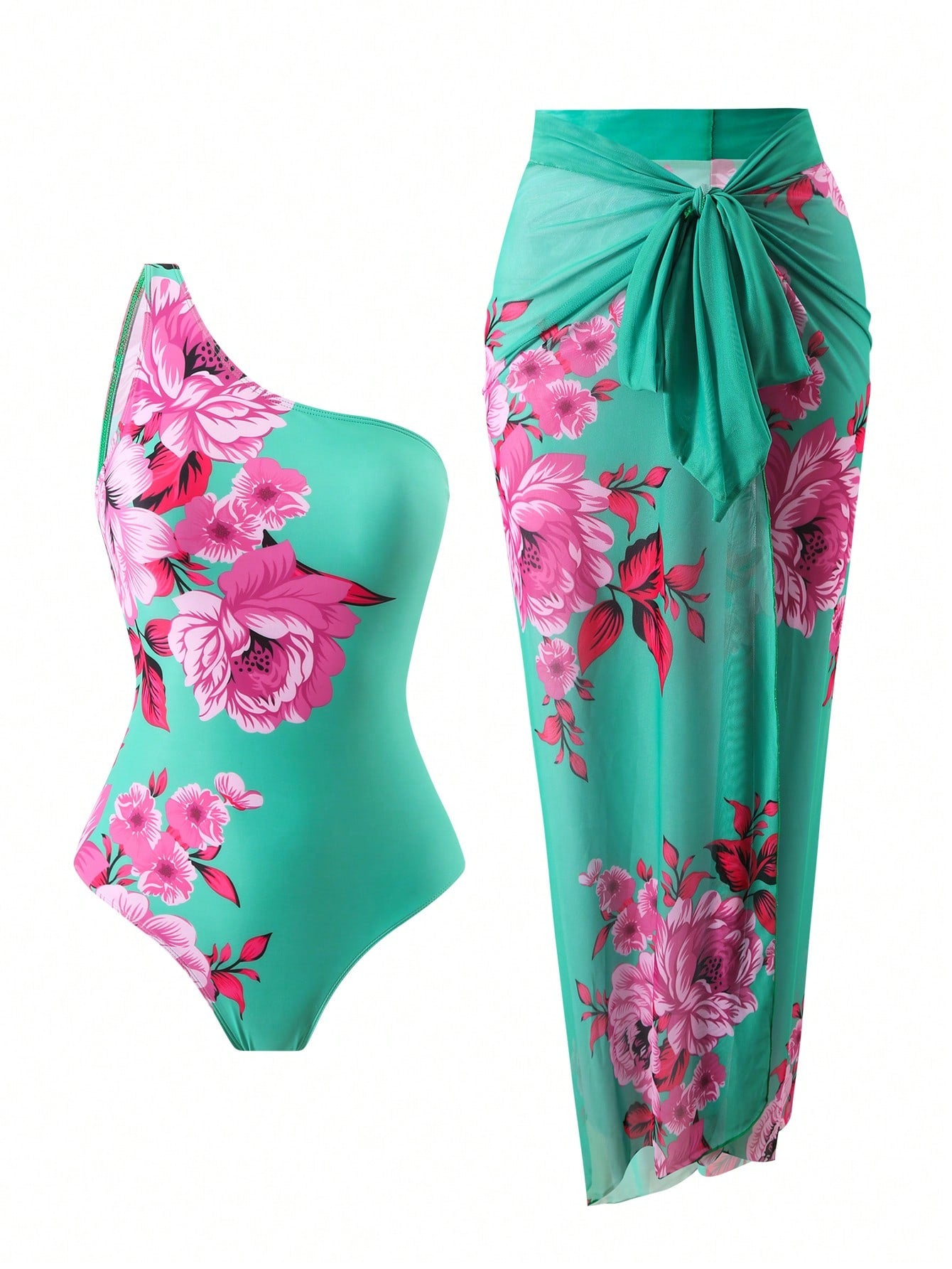 Swim Oasis Women's Simple One-Piece Swimsuit & Cover Up Skirt Daily Flower Print Summer