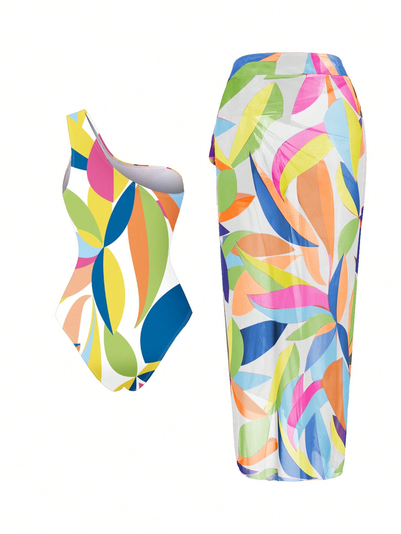 Swim Oasis Women's Sleeveless Printed Casual Bodysuit And Skirt Bottoms Swimsuit Summer