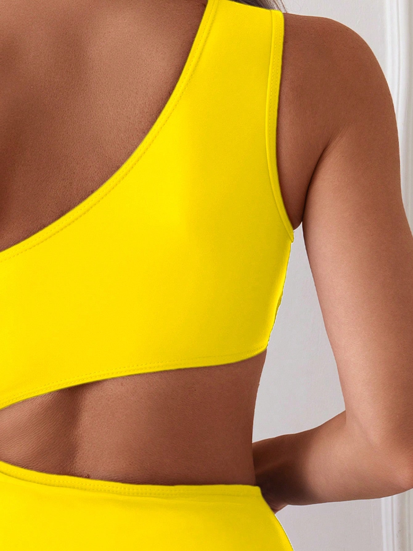 Swim Summer 1pc Women Solid Color Asymmetric Neck Sleeveless Slim Fit Casual Bodysuit
