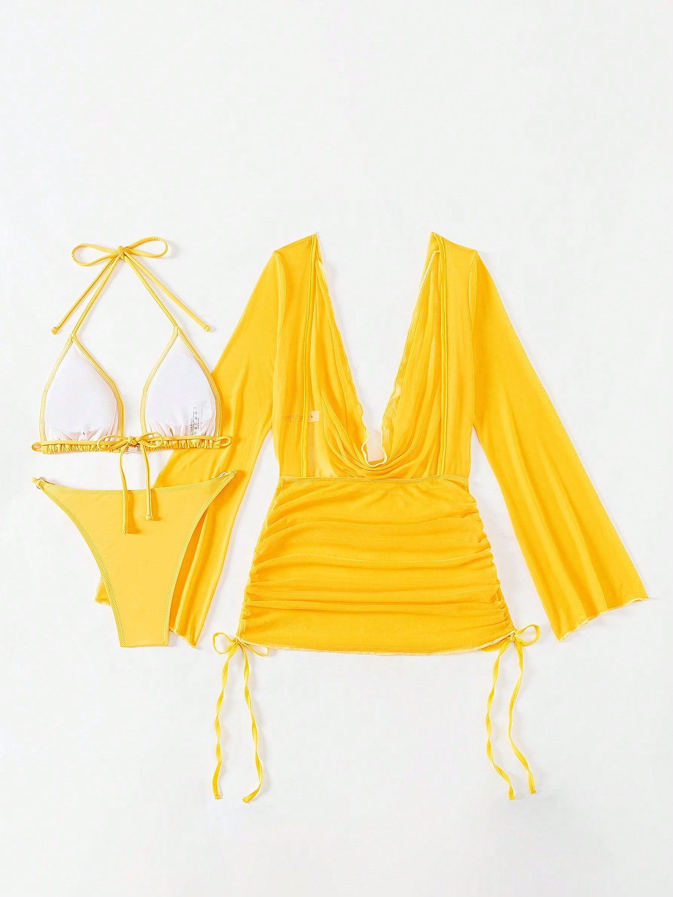 Swim Summer Beach Women's Vacation Solid Color Halter Strap Sexy Bikini Set With Cover Up Dress
