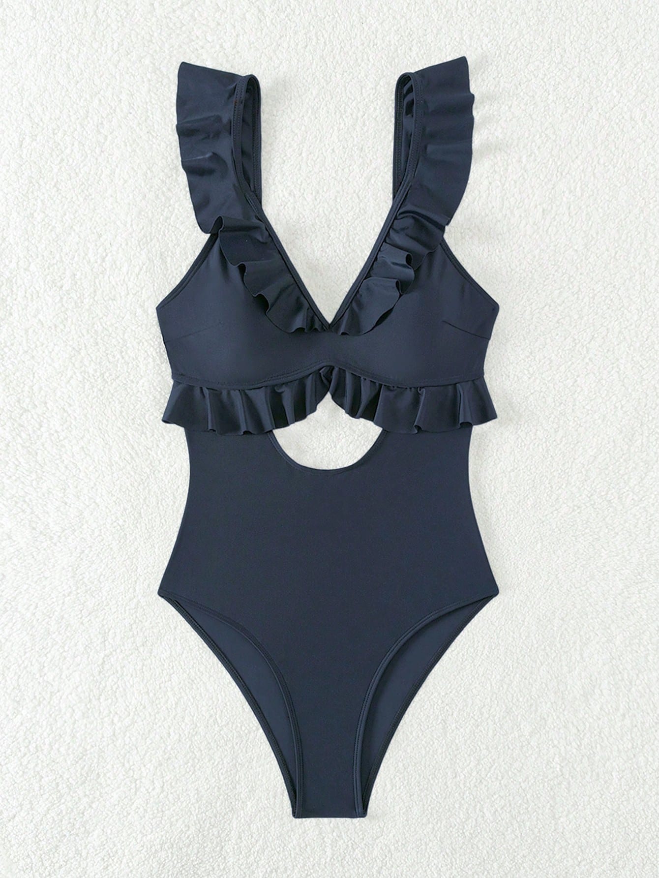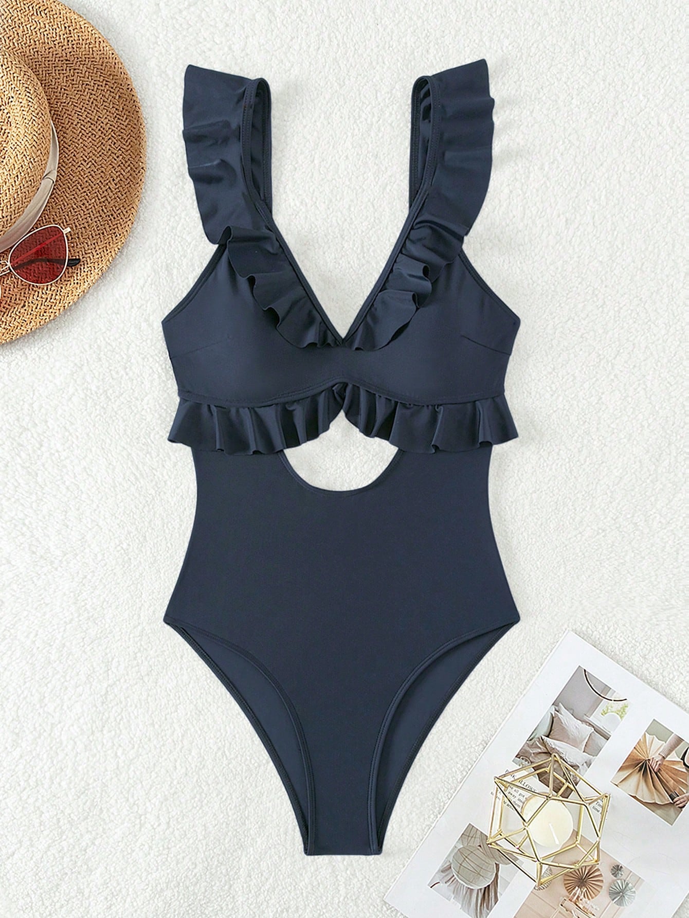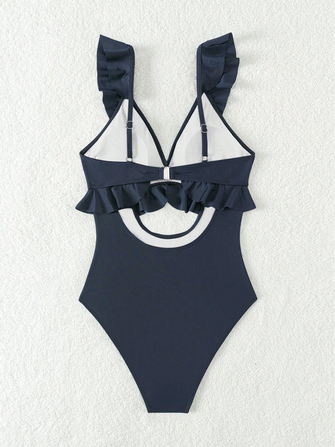 Swim Women Solid Color Sleeveless Hollow Out Fitted Jumpsuit