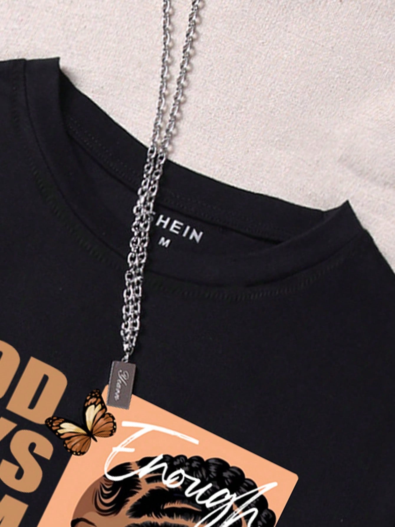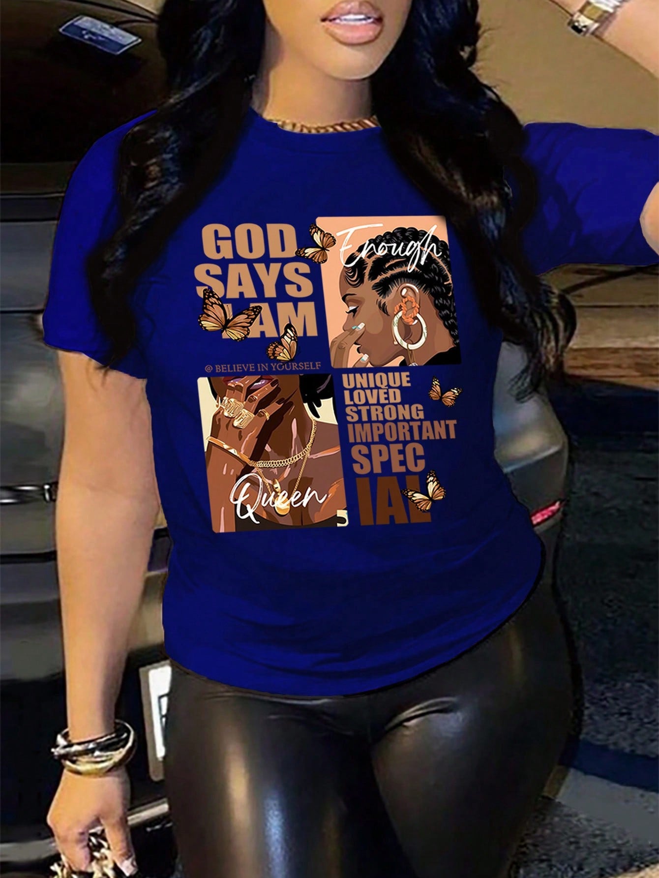 SWomen's Short Sleeve T-Shirt Printed With Portrait And Slogan GOD SAYS I AM ENOUGH UNIQUE LOVED STRONG IMPORTANT SPECIAL QUEEN BELIEVE IN YOURSELF Graphic Tees Women Tops